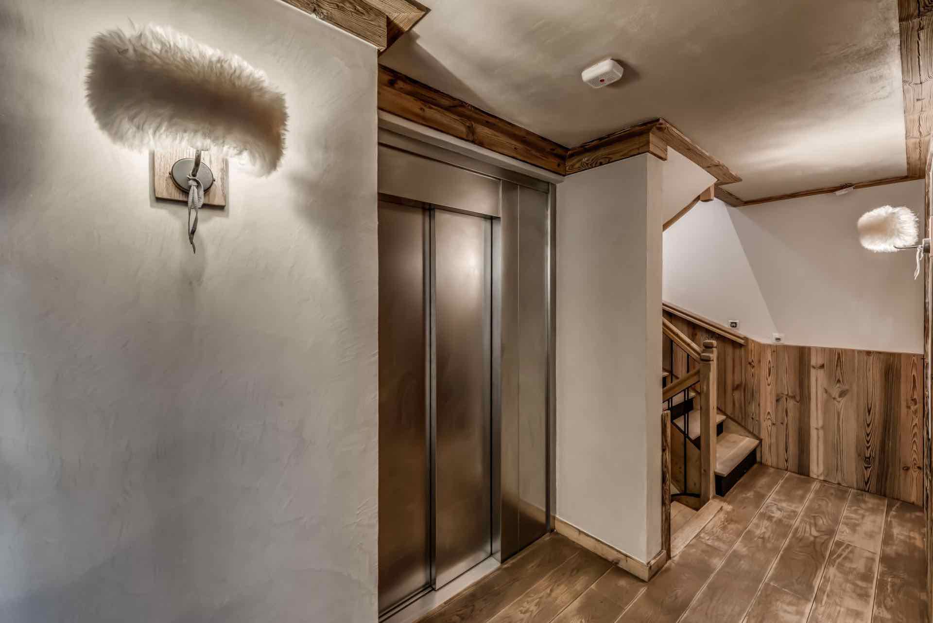 Convenience is ensured with an internal elevator connecting all four floors, a ski room with drying cabinets and storage, and two private parking spaces.