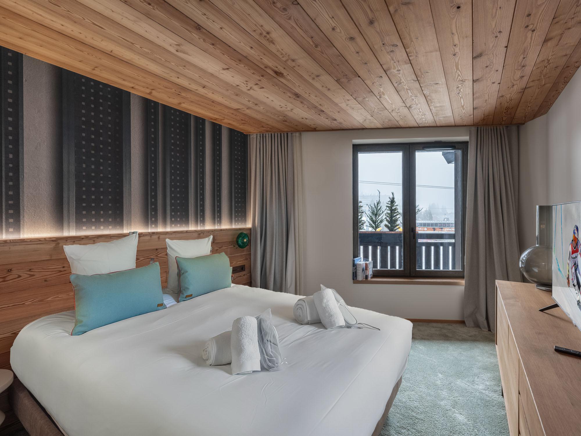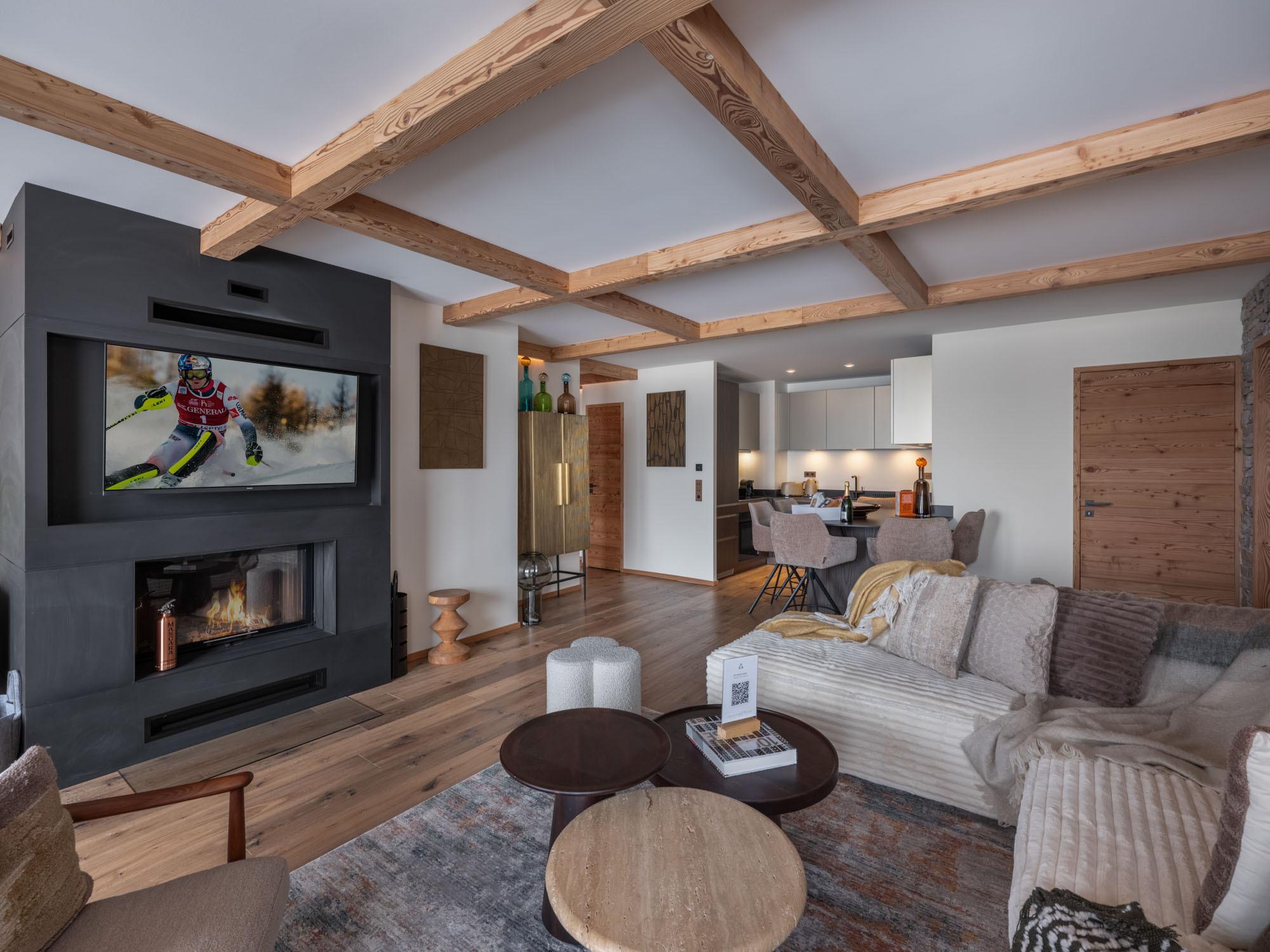 After a day on the slopes, unwind in the residence’s wellness area, where you can enjoy the indoor pool, massage room, gym, and cosy lounge.