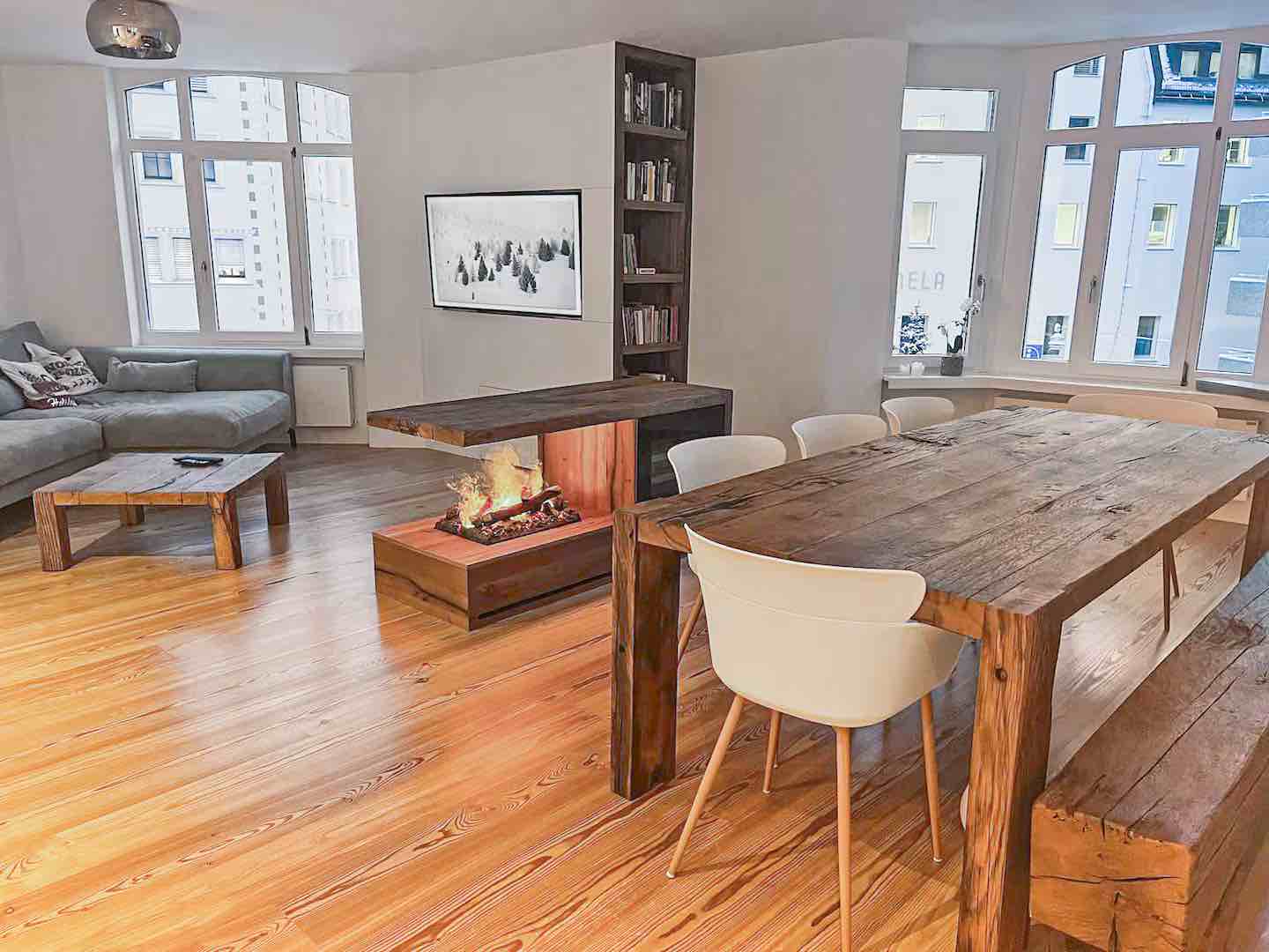 The apartment is conveniently located in the heart of St. Moritz village, offering elegance, practicality, and comfort. Everything you need is within walking distance, including the Corviglia ski lifts, shops, restaurants, and a bus stop.