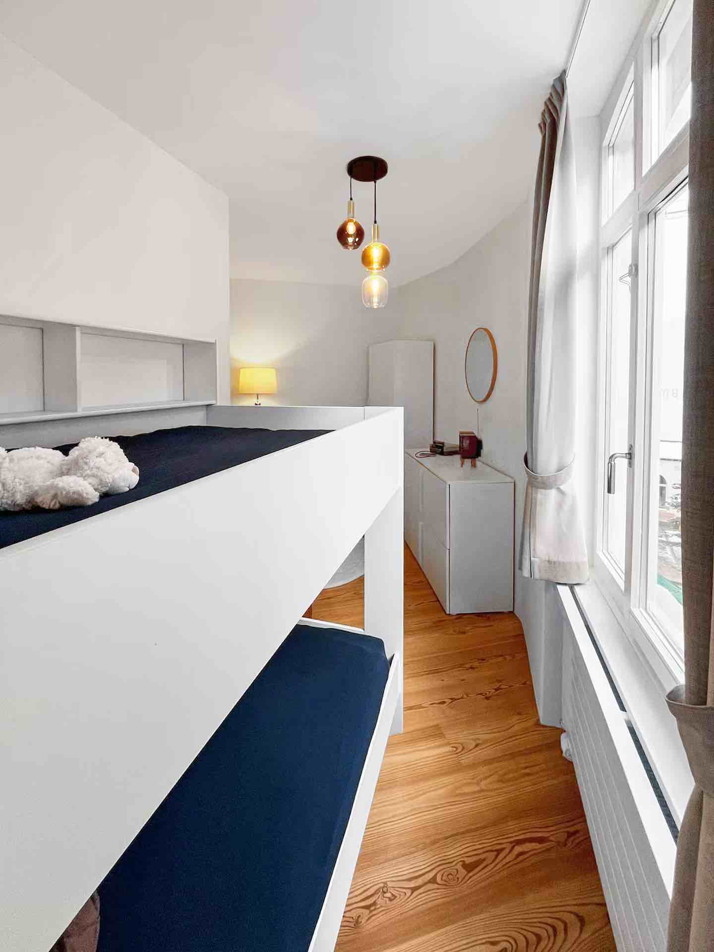 It is situated on the third floor of the building and is easily accessible via an elevator. The apartment features an inviting entrance and a laundry area. The living space includes an electric fireplace, creating a cozy atmosphere. The master bedroom comes with an en-suite bathroom and a shower. There is also a bedroom equipped with a bunk bed and its own en-suite bathroom with a shower. Additionally, a double bedroom is available, featuring an en-suite bathroom with a bathtub.
