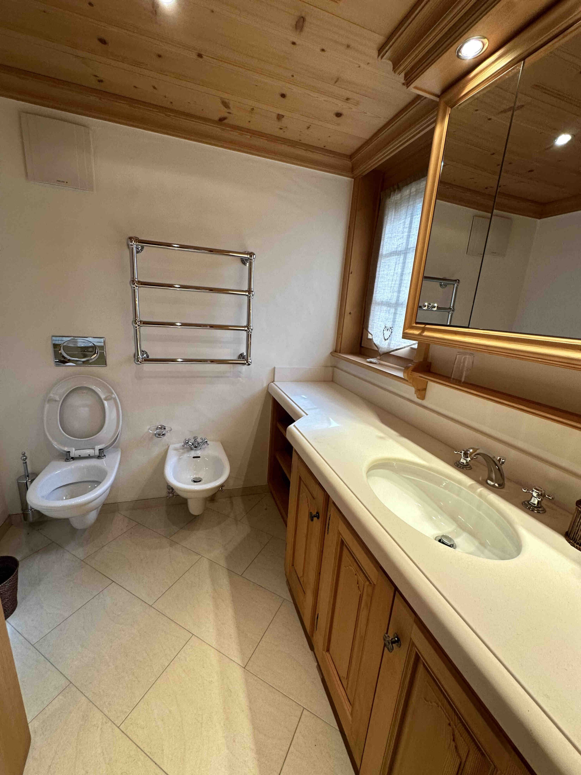 Thoughtfully designed to balance sophistication and comfort, the spacious interior offers a serene atmosphere inspired by the natural beauty and timeless charm of the Swiss Alps. The residence features three beautifully appointed en-suite bedrooms, including one with a king-size bed and two with queen-size beds, each with its own private bathroom. All en-suite bathrooms are fitted with premium fixtures, rain showers, plush towels, and luxury toiletries, complemented by an additional guest bathroom for added convenience. The flat comfortably accommodates up to six guests.
