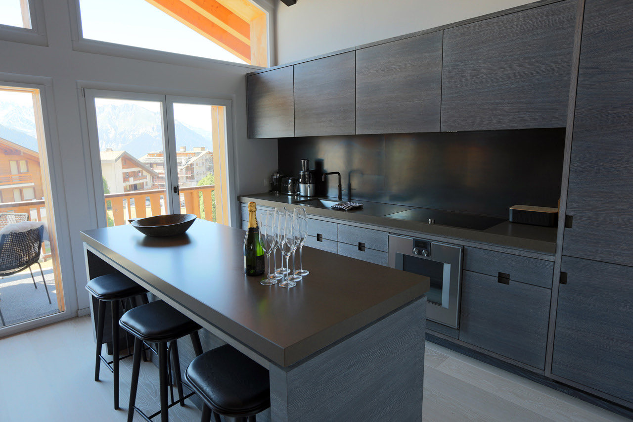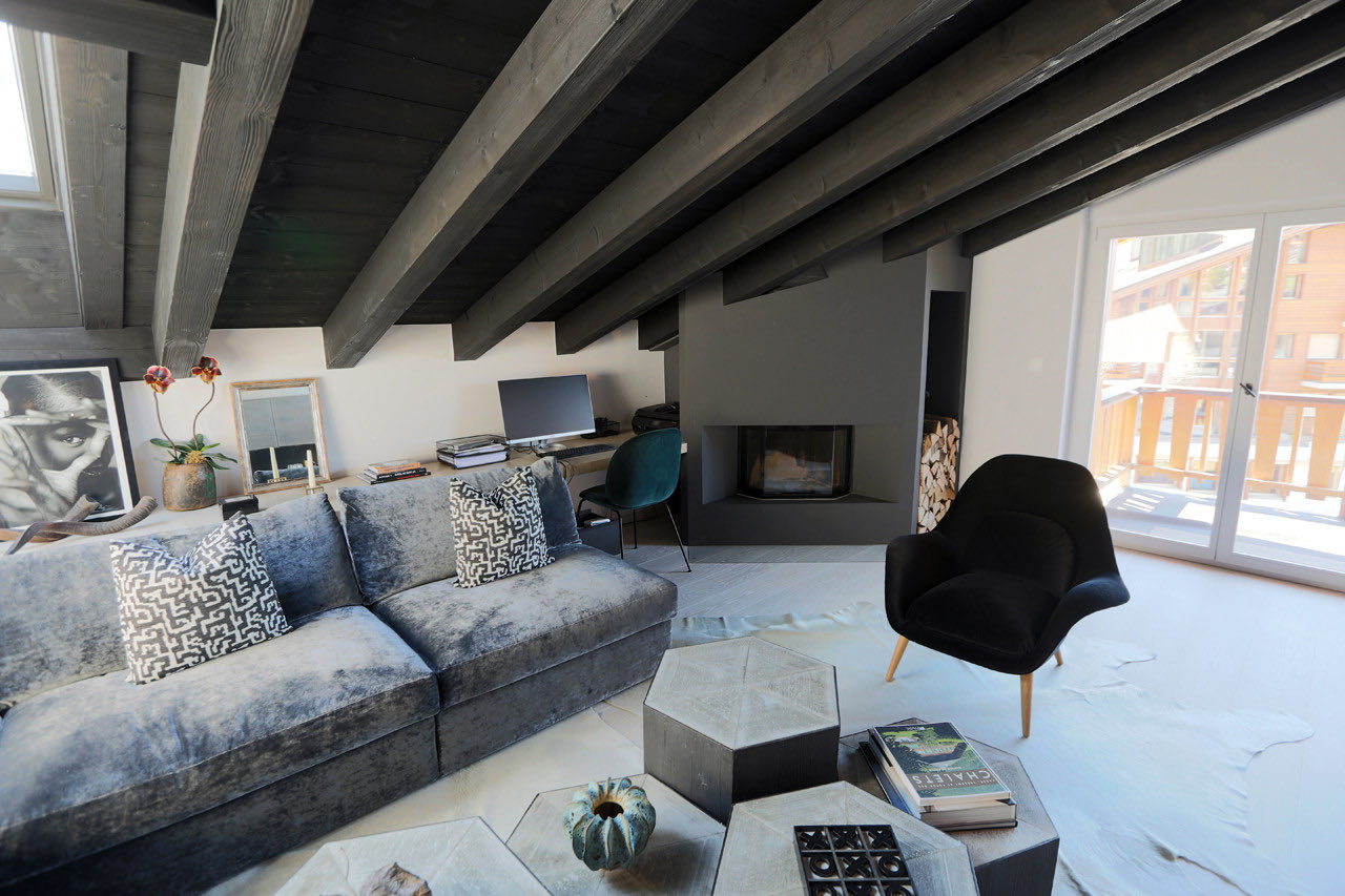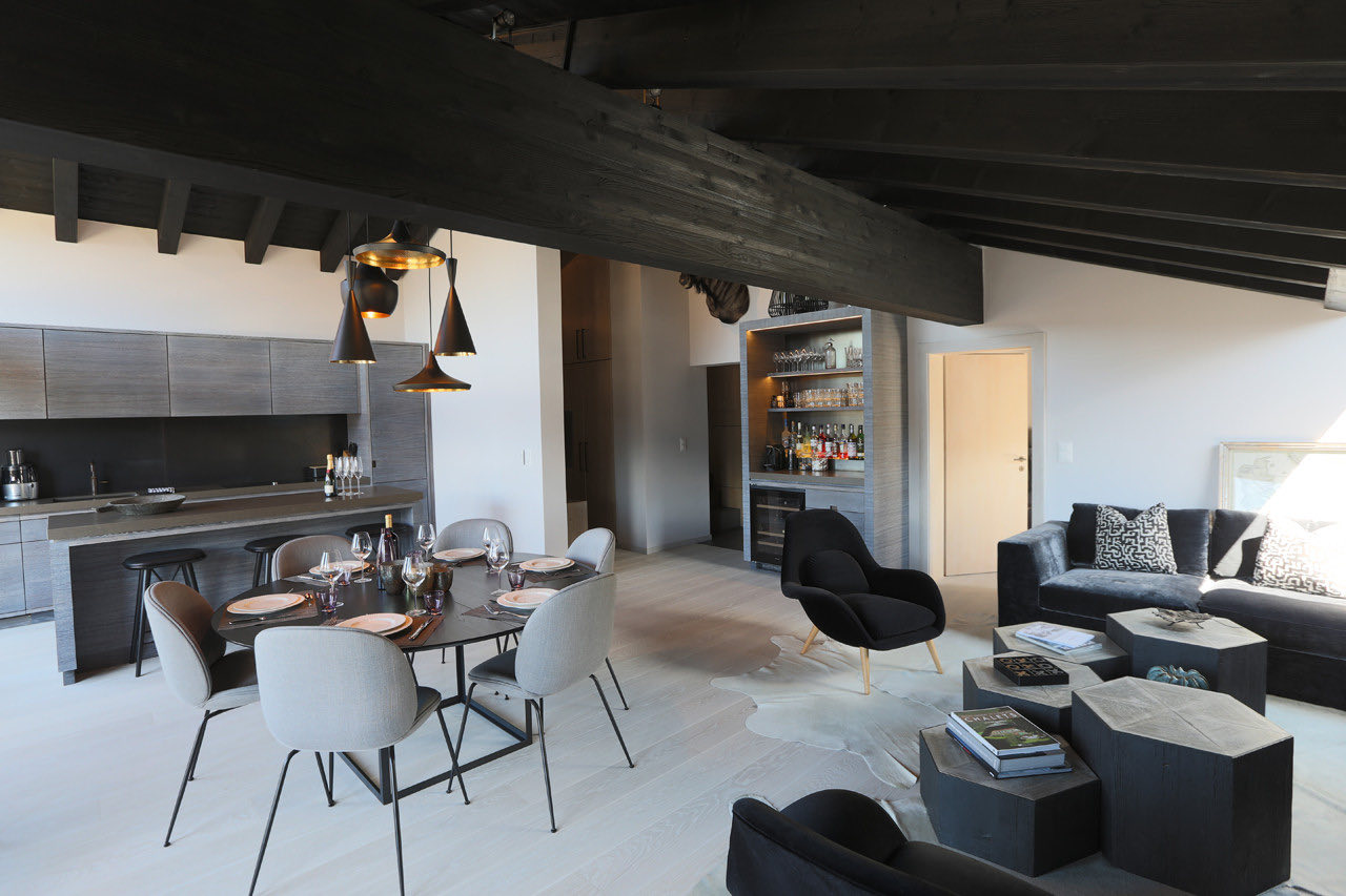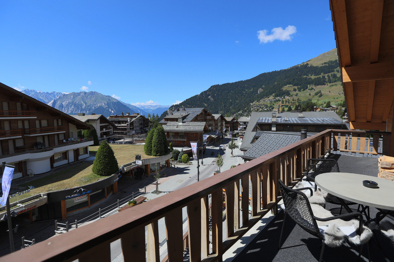Apartment Plein is a modern and elegantly designed apartment, ideally located in the very center of Verbier. Fully renovated with a stylish, contemporary touch, it offers a bright and spacious open-plan living and dining area with a welcoming fireplace. The adjoining kitchen is fully equipped with all the essentials, while floor-to-ceiling windows lead out to a sun-drenched south-facing balcony.