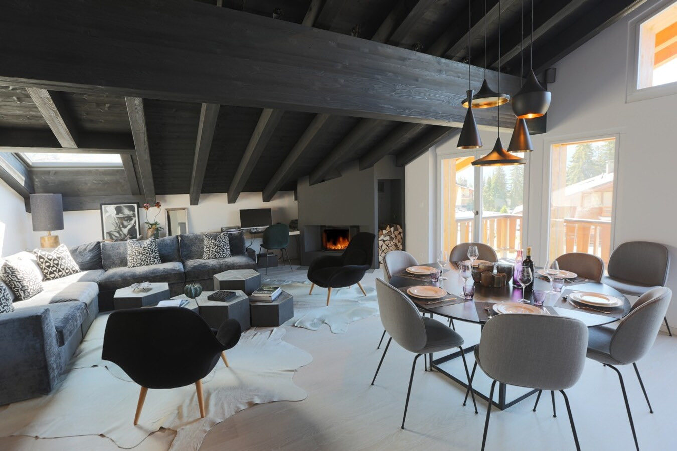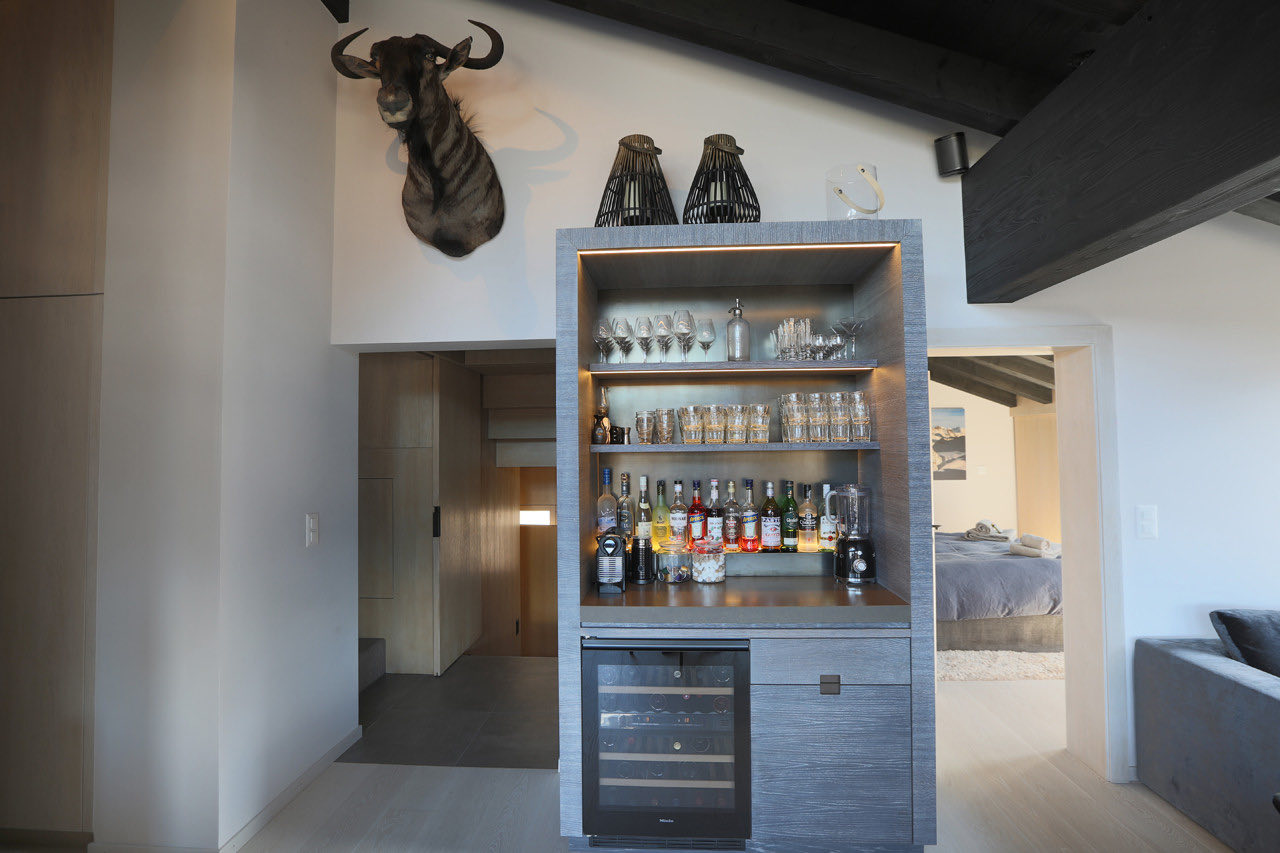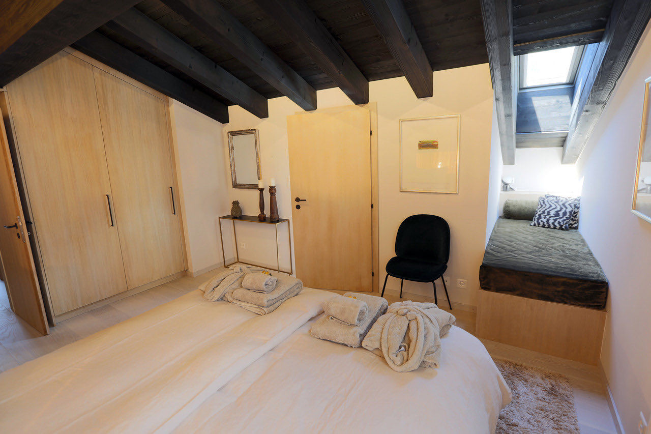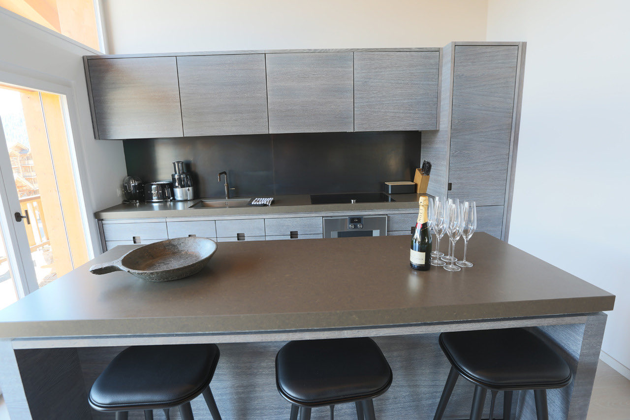 Apartment Plein is a modern and elegantly designed apartment, ideally located in the very center of Verbier. Fully renovated with a stylish, contemporary touch, it offers a bright and spacious open-plan living and dining area with a welcoming fireplace. The adjoining kitchen is fully equipped with all the essentials, while floor-to-ceiling windows lead out to a sun-drenched south-facing balcony.