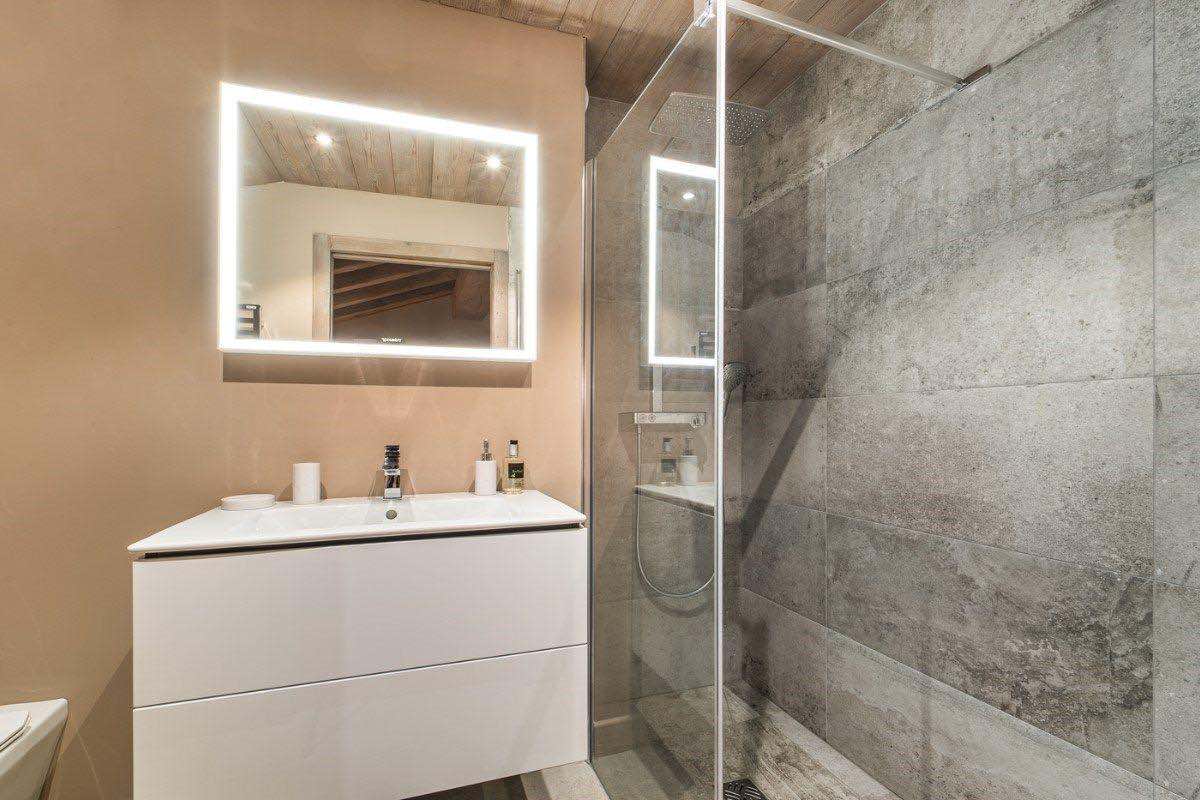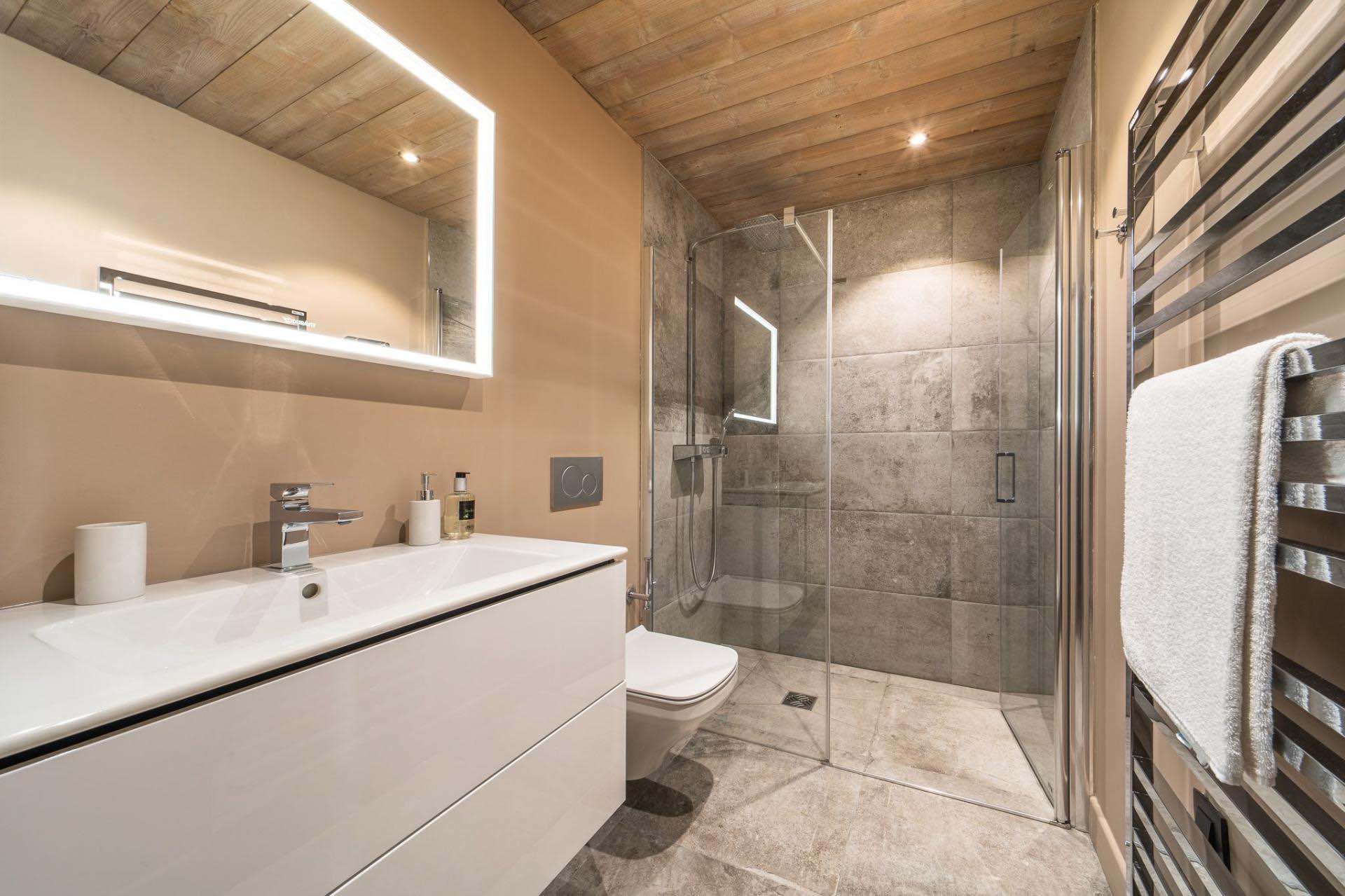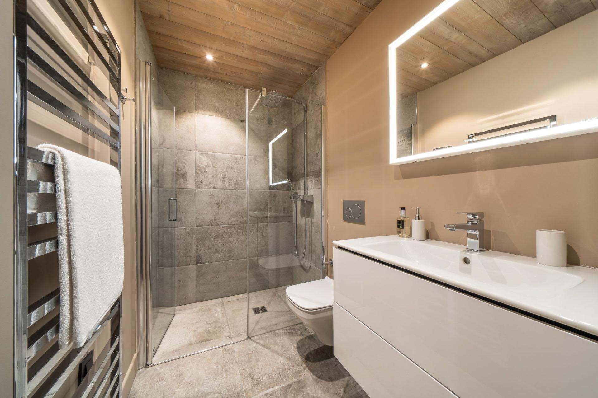 Each of the three spacious double bedrooms has direct access to a balcony, inviting guests to enjoy the serene alpine setting morning and night. With rustic wooden cladding, soaring ceilings, and soft, colourful accents, the rooms offer a tranquil haven. All bedrooms are en-suite and can be configured as twin beds to suit your group’s needs.
