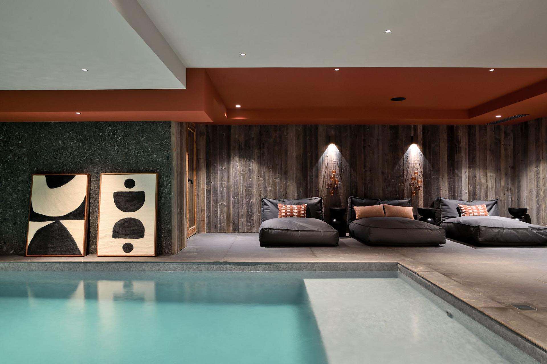 The chalet’s standout feature is its impressive wellness area, designed for complete relaxation. Recline by the indoor pool, rejuvenate in the sauna, or indulge in a private massage in the dedicated treatment room. Step outside to the Nordic bath and unwind beneath the crisp alpine sky, or, if you prefer something more active, maintain your fitness routine in the private gym.