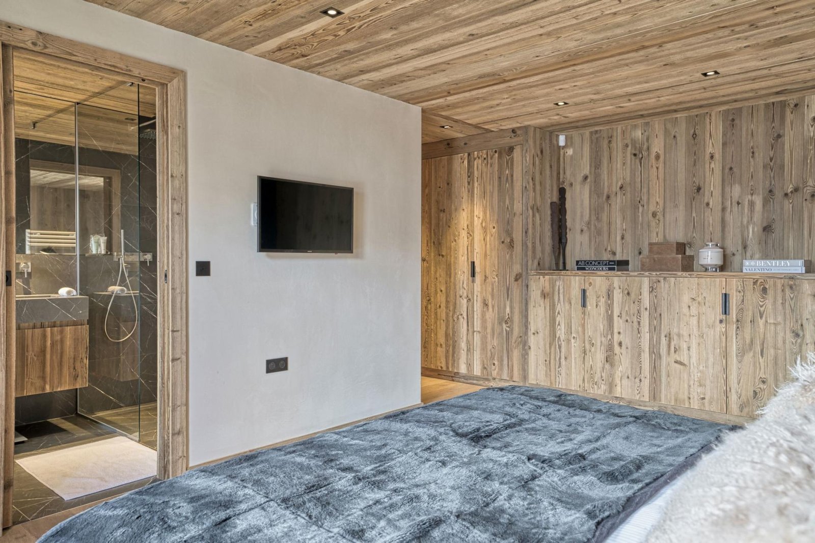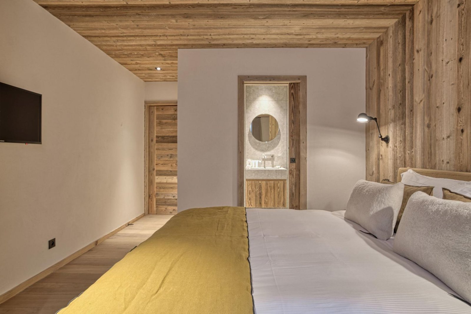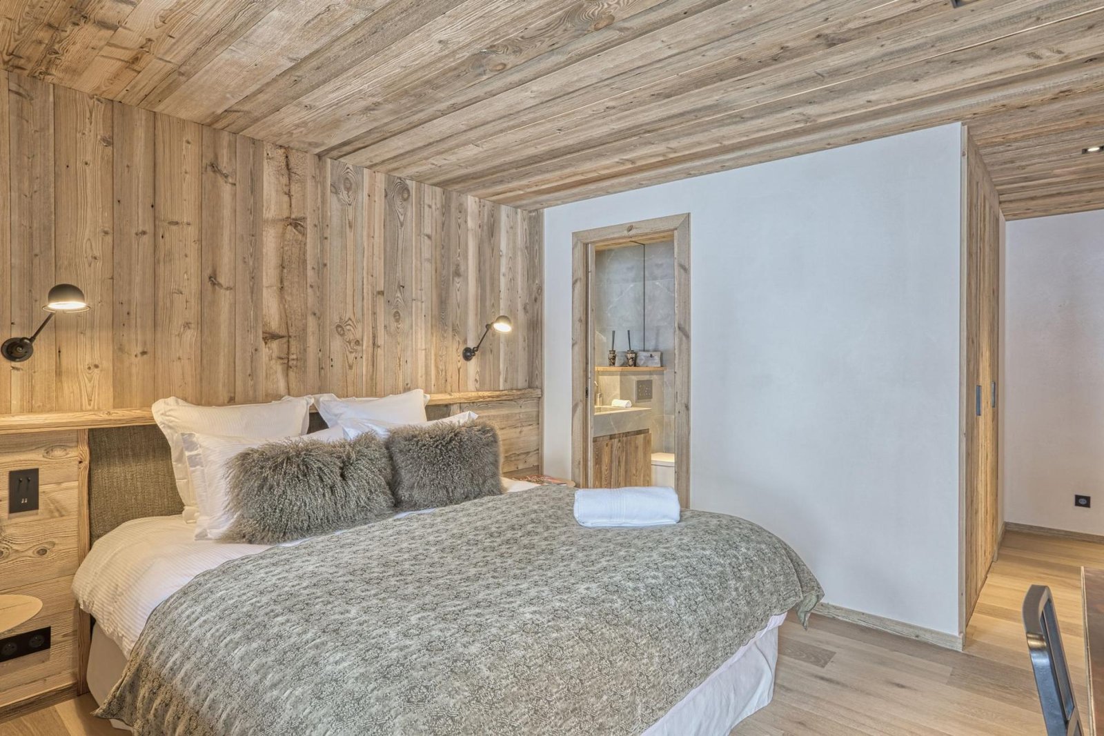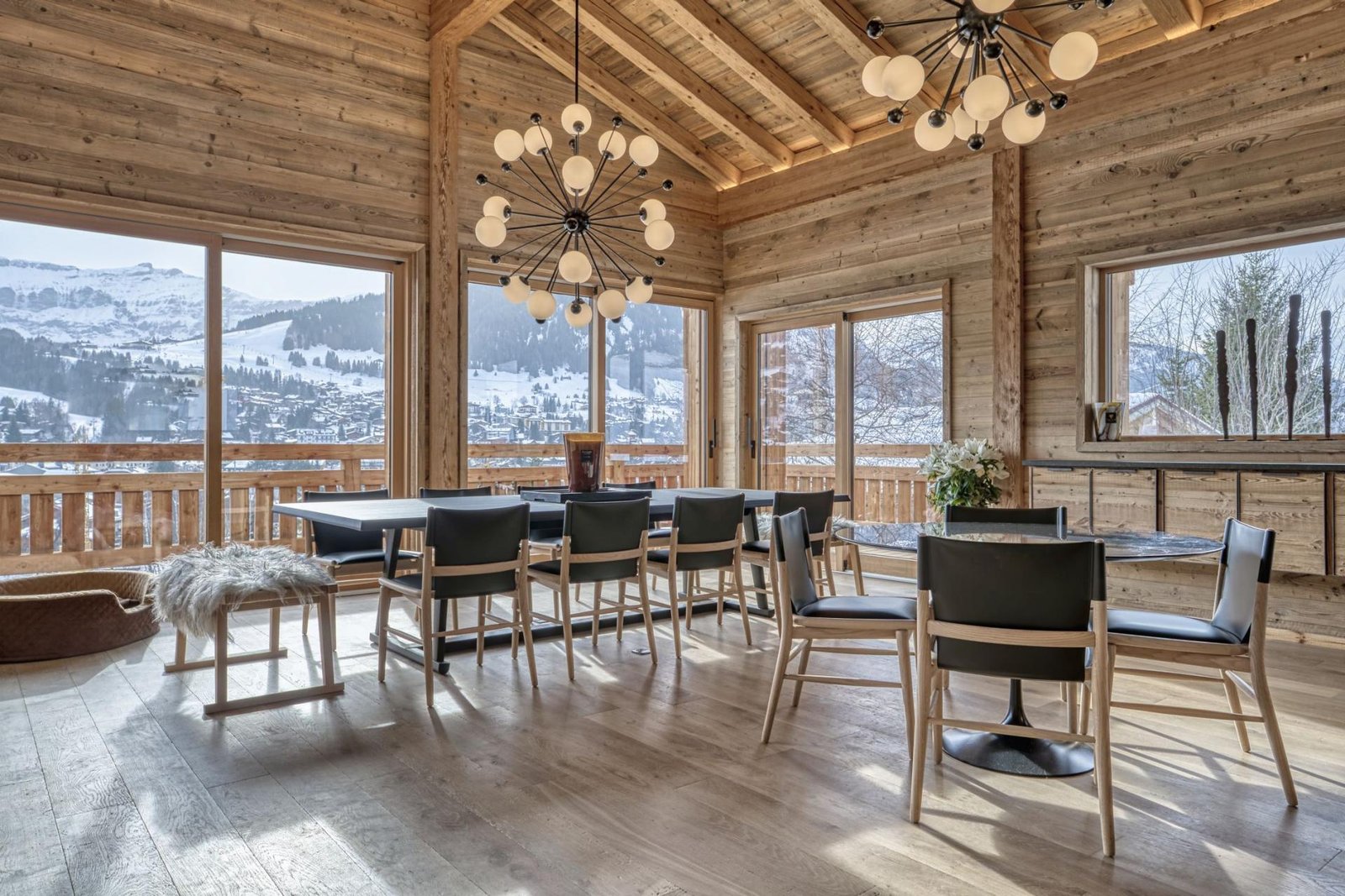 Perched on Le Jaillet, with commanding views of the picturesque Megève village and the Mont d’Arbois, Rochebrune, and Mont Blanc mountains, Chalet 141 offers a truly unique vantage point, all within a leisurely stroll from the village center. This remarkable property boasts six double bedrooms and one bunk room, accommodating a maximum of 16 guests within its sprawling 585-square-meter living space. However, Chalet 141’s allure extends beyond its impressive capacity.