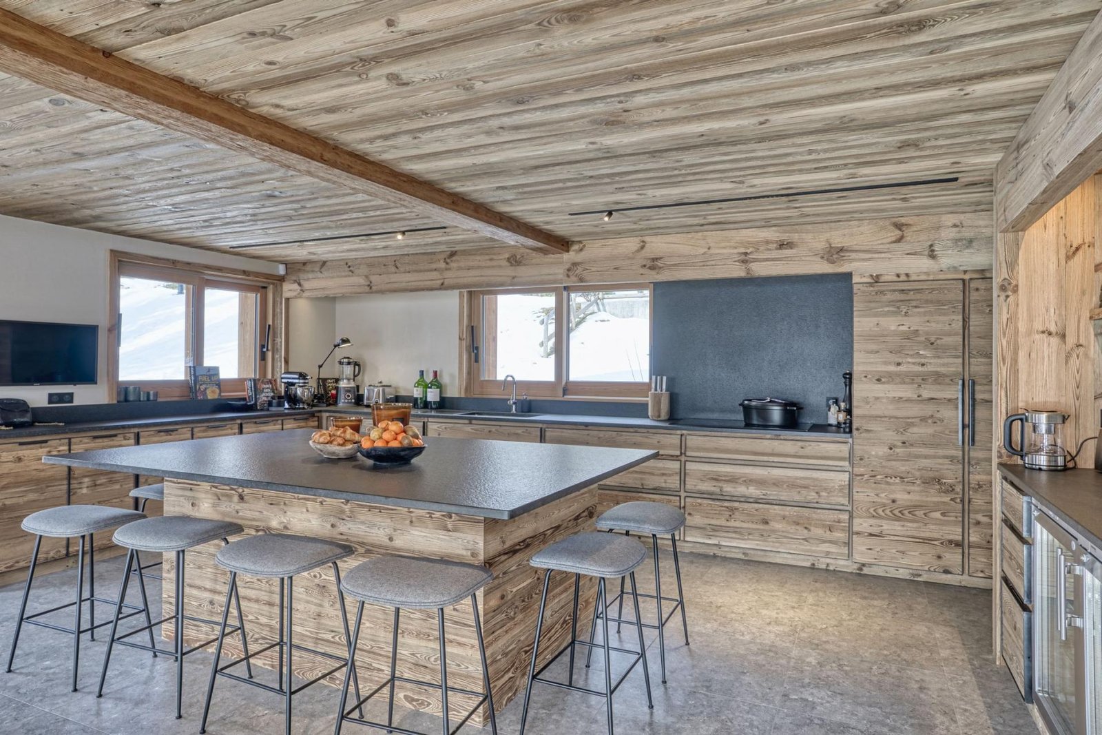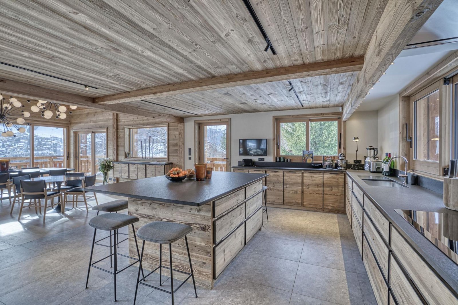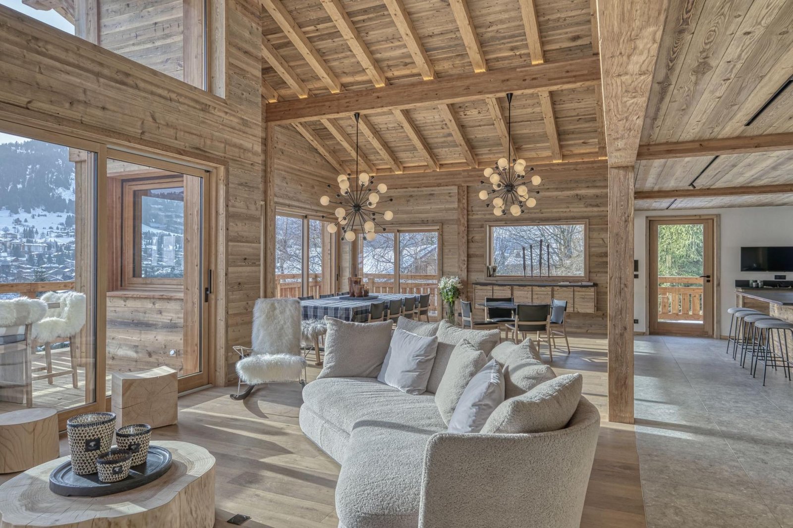 Elegantly adorned, this chalet showcases a tasteful fusion of classic alpine wood and soothing hues, accentuated by expansive bay windows that flood the interior with abundant natural light. Its amenities include a cinema room equipped with a projector, high-end Hifi, and a generous open-plan living area comprising a lounge, a cozy fireplace, a dining room, a well-appointed kitchen, and a convenient storeroom – an ideal setting for socializing with friends and family.