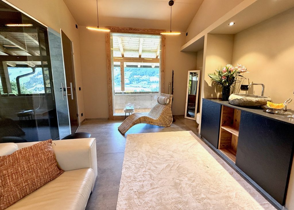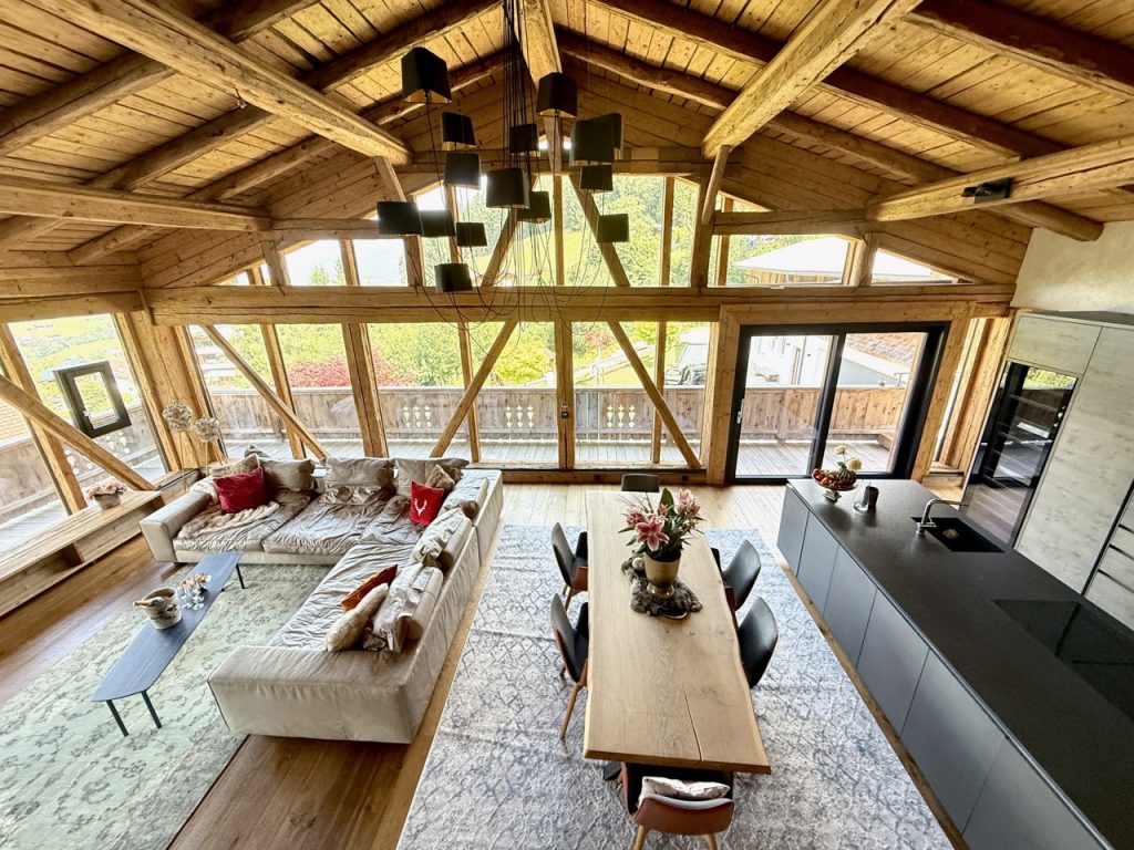 The true centerpiece of the house is the spacious living and dining area on the first floor. Towering glass windows frame spectacular views of the Kitzbühel mountains, and the surrounding terraces invite you to savor the sunset or enjoy a morning coffee in peace. The fully equipped designer kitchen is both a visual showpiece and a technical highlight, offering everything a passionate cook could wish for.