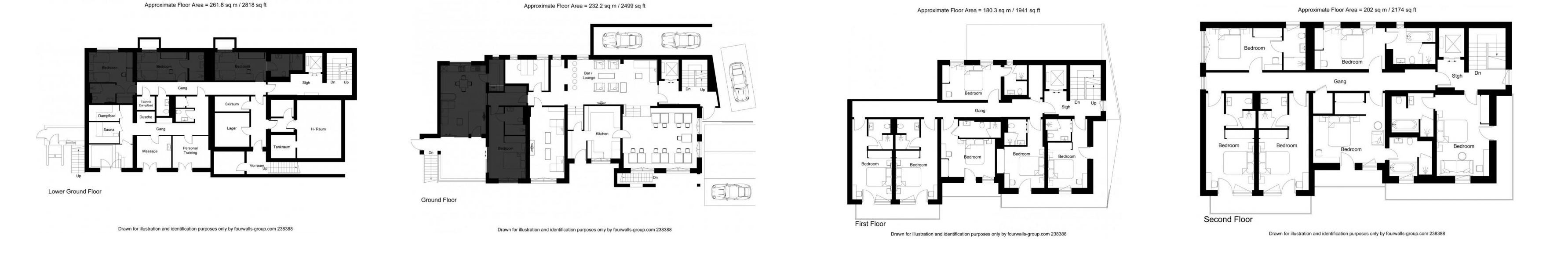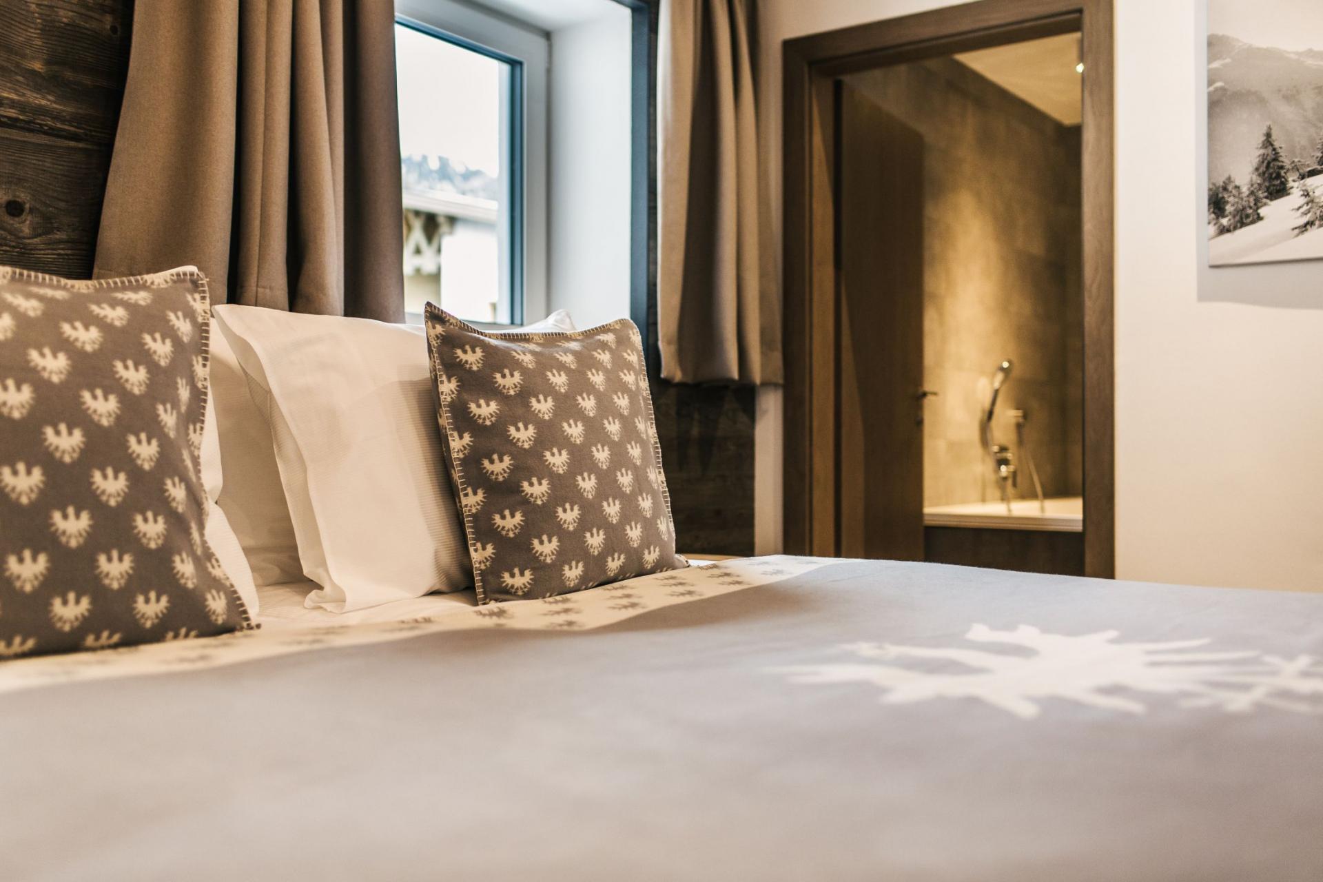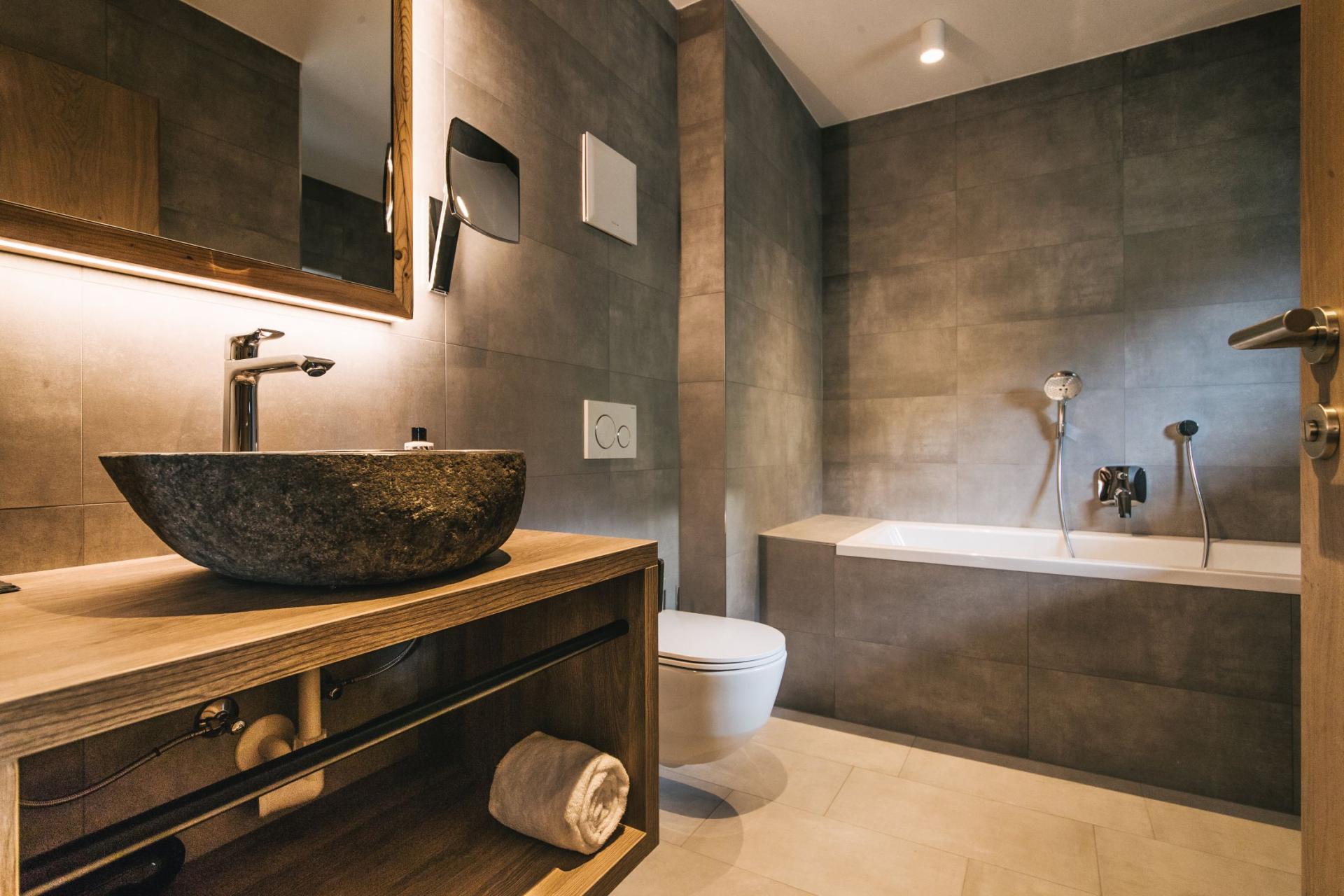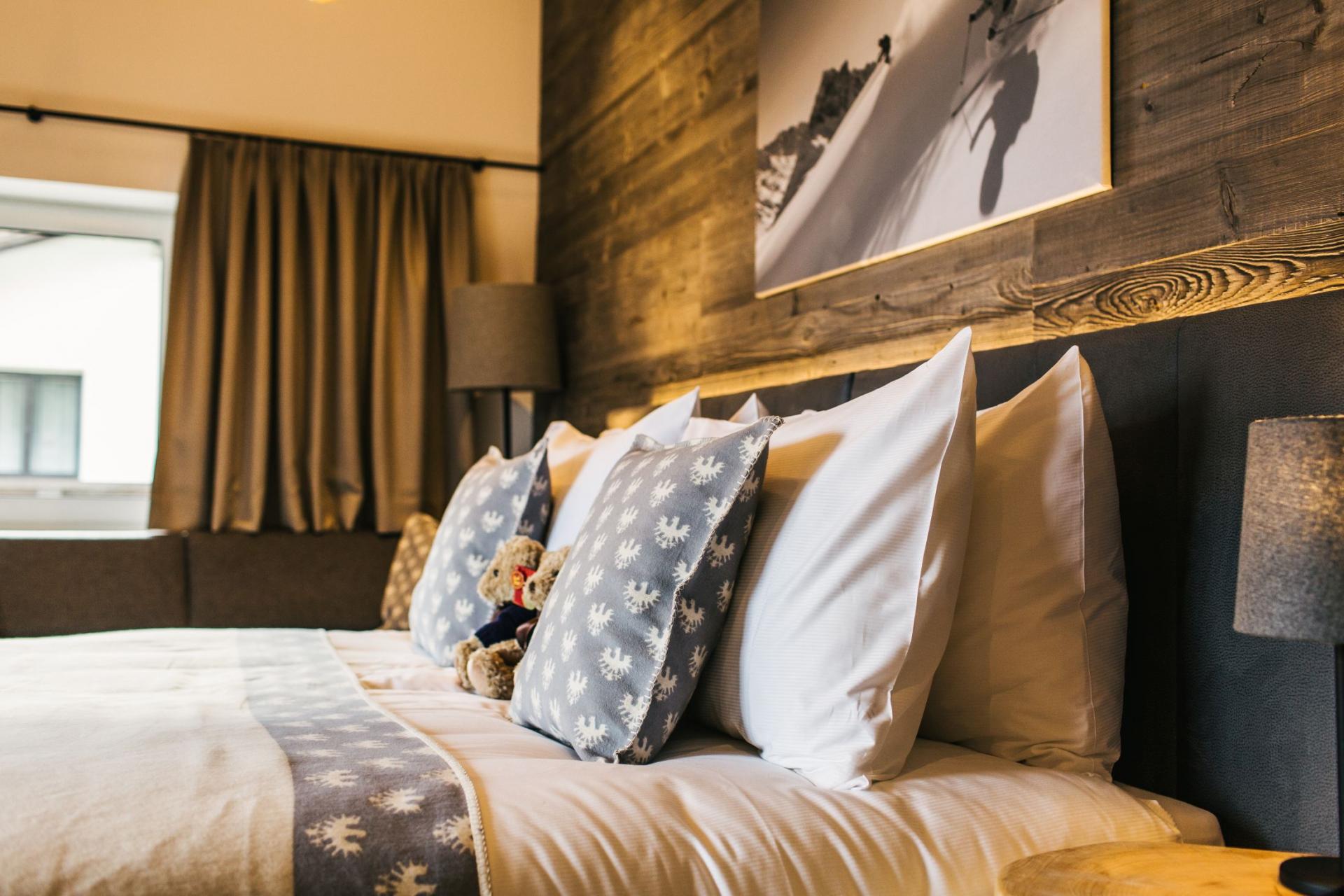 Accommodation spans the top two floors, where twelve double/twin bedrooms welcome up to 24 guests. Dark wood accents and exposed beams lend an authentic Alpine charm, complemented by plush furnishings and contemporary lighting. Over half the rooms open onto private or shared balconies, connecting you with the enchanting snowy landscapes of St Anton. Each bedroom includes its own stylish en-suite bath or shower room.