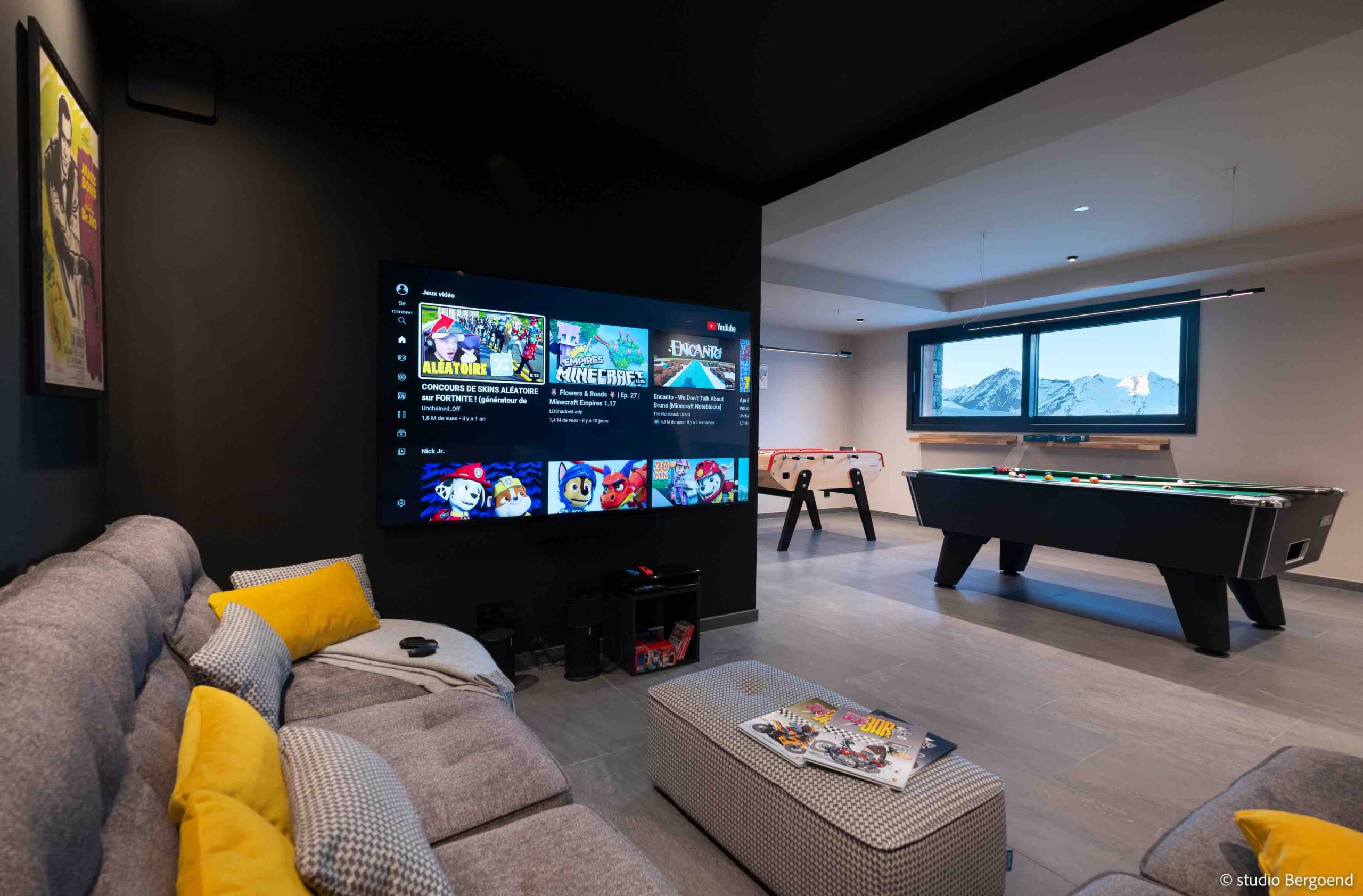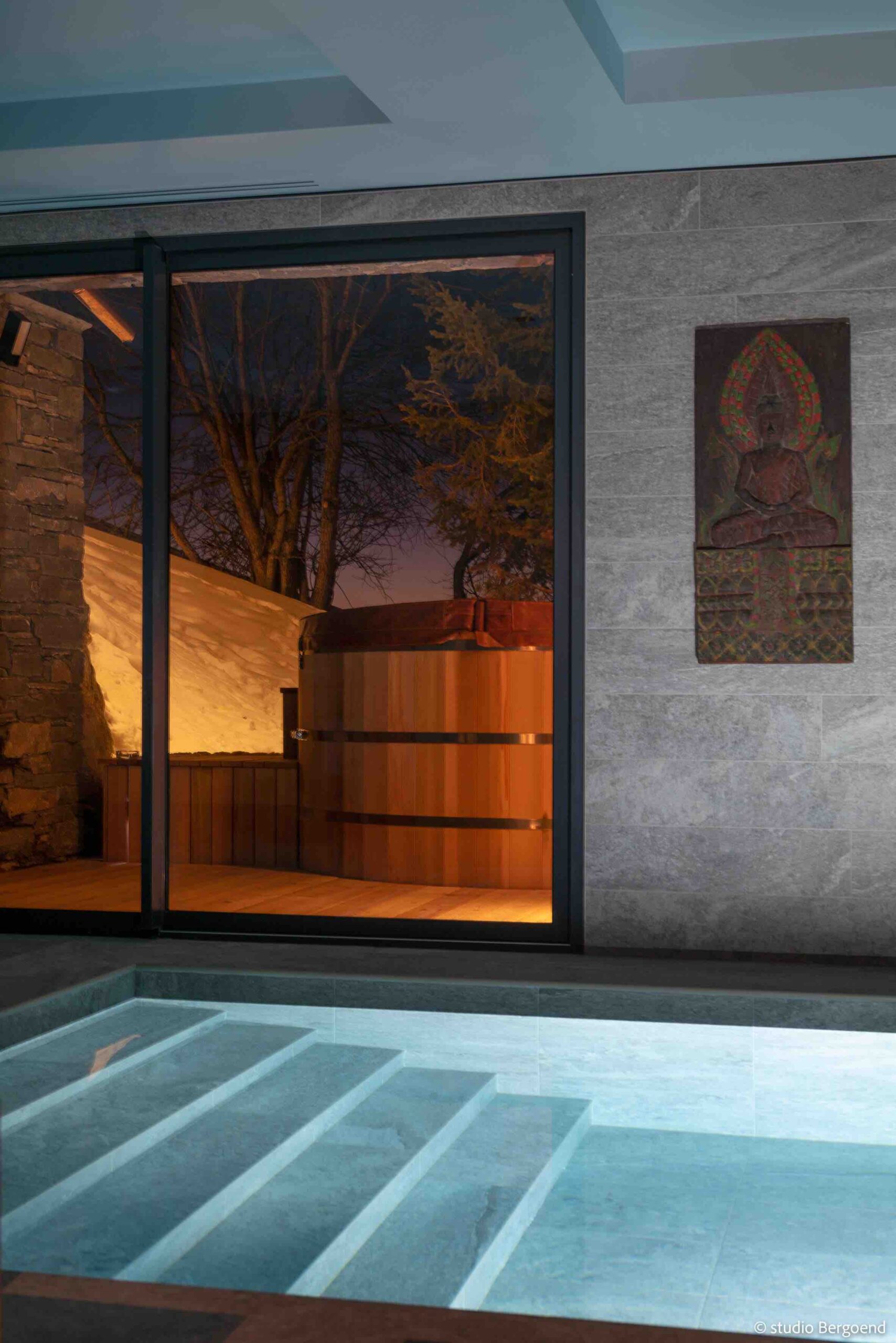 For moments of pure relaxation, Chalet Arc 1836 offers an exceptional wellness area. Guests can unwind in the indoor pool, enjoy the outdoor hot tub with uninterrupted views across the peaks, or retreat to the sauna and steam room to fully switch off. A private cinema room adds another layer of comfort, perfect for cosy evenings in.