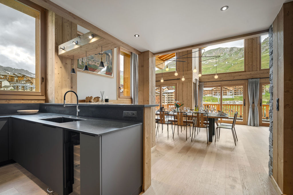 Chalet Artayma is a newly built luxury retreat in Tignes Le Lavachet, set at 2,100m with sweeping views of the pistes. Designed for families and groups, it sleeps up to 15 guests in seven en suite bedrooms, including five twin/doubles, a bunk room, and a family suite with its own lounge and sofa bed.