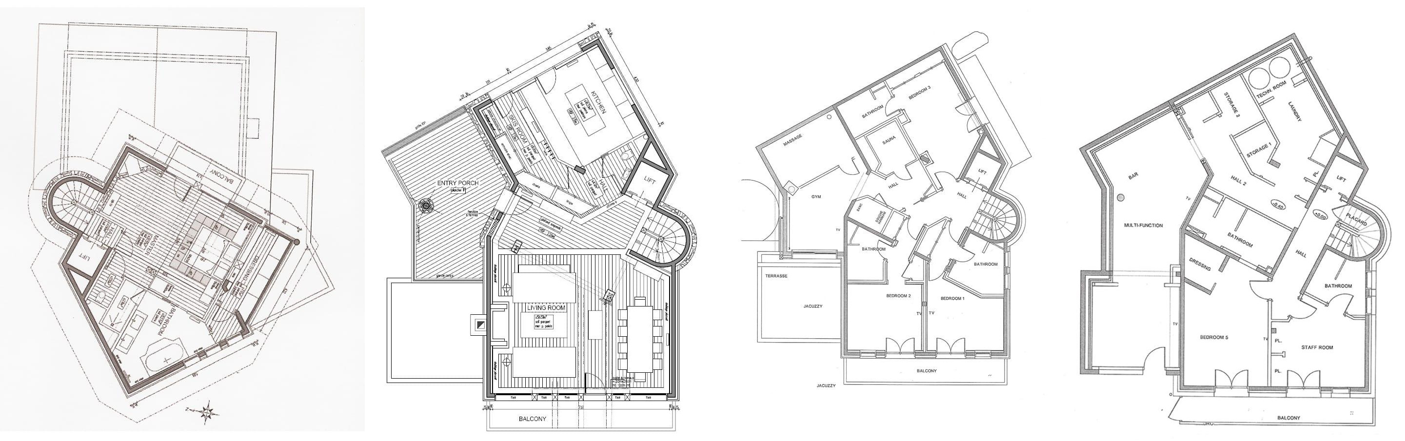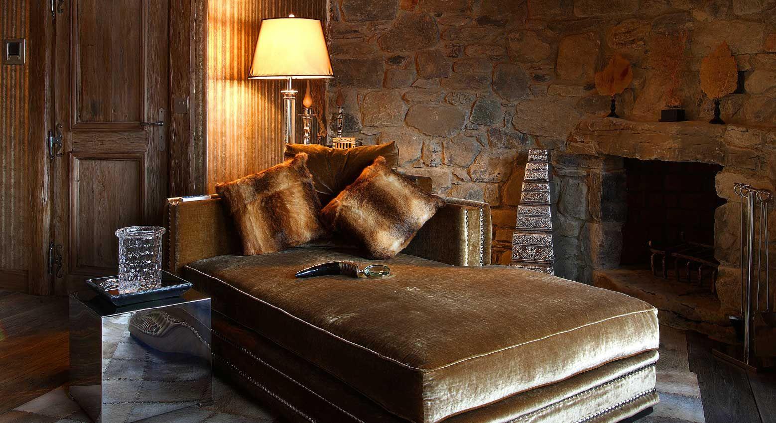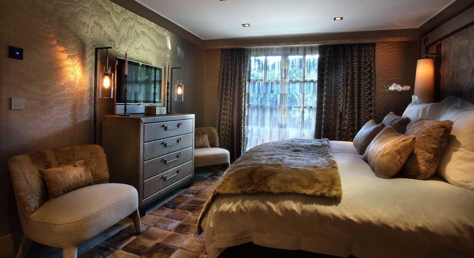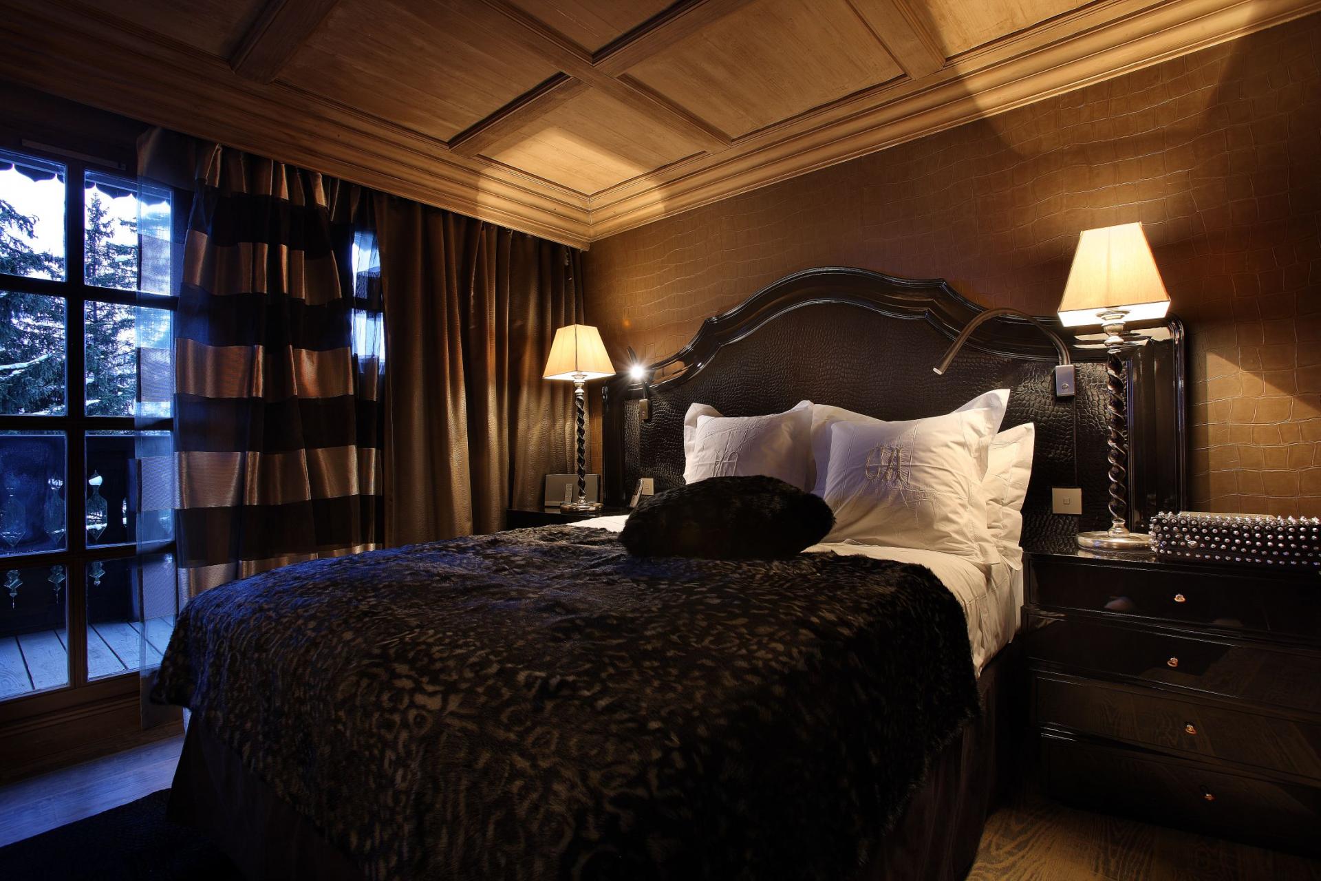 Five double bedrooms accommodate up to 10 guests. The upper level is reserved for an expansive master suite with its own fireplace, while the remaining four rooms can be configured as doubles or twins. Each bedroom combines stately timber accents with sophisticated modern design and features an en-suite bathroom and direct access to a balcony or terrace.