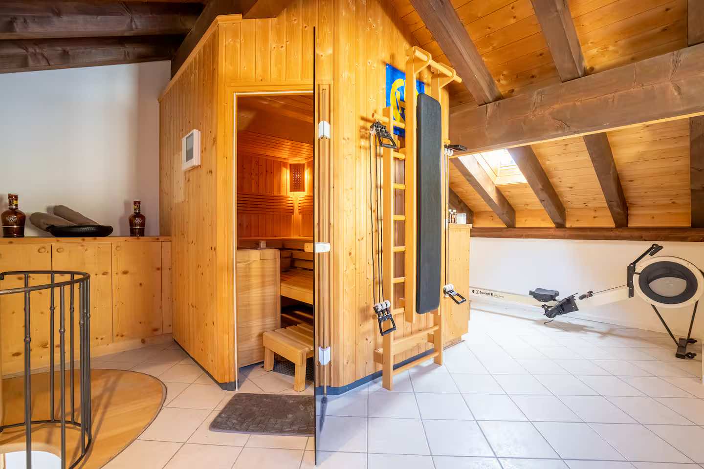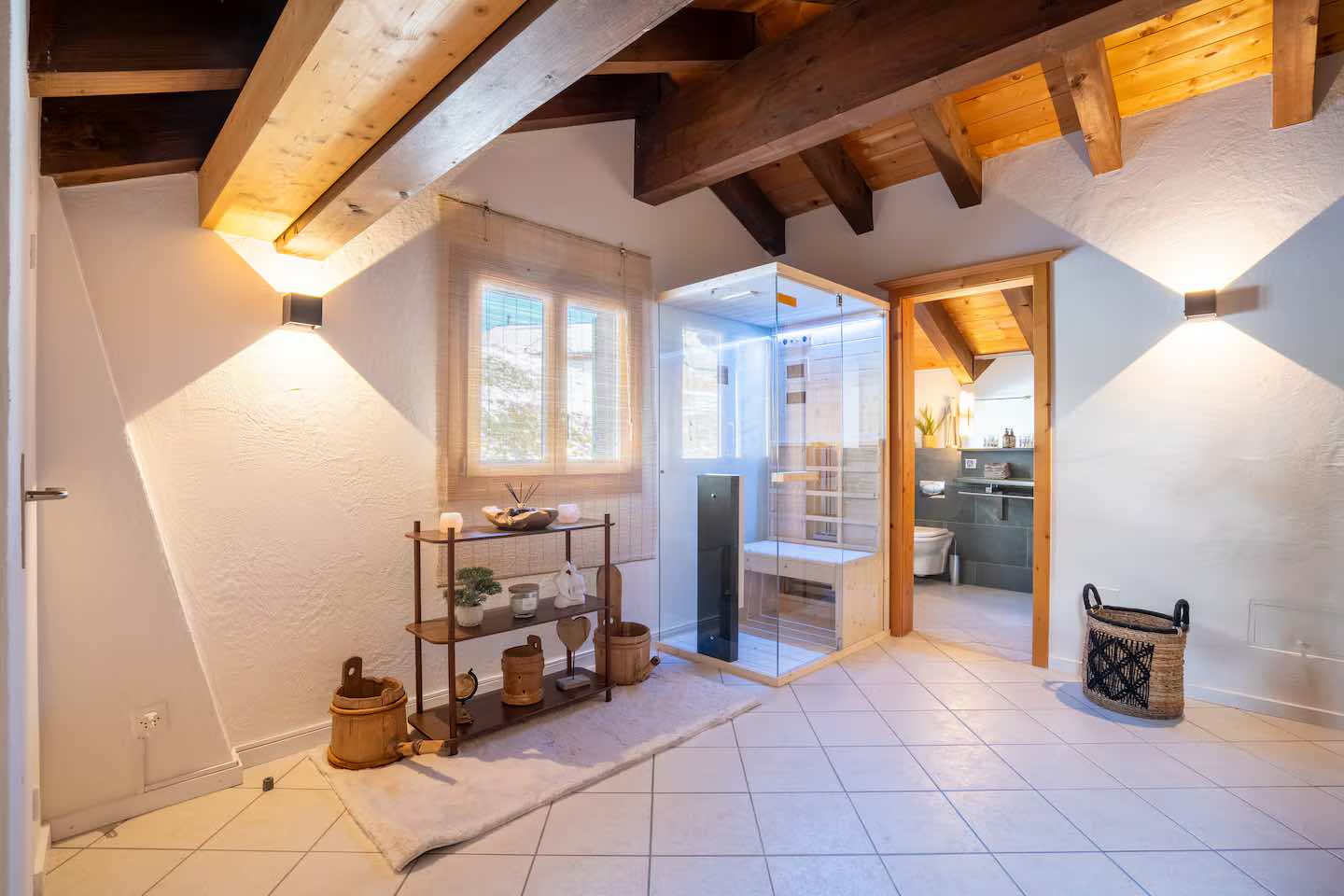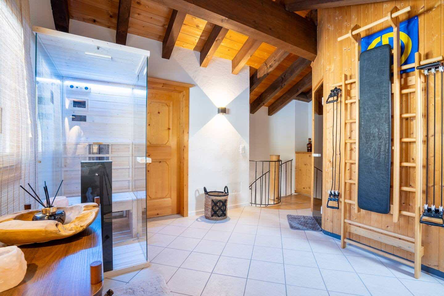 The exclusive wellness area makes relaxation effortless. A whirlpool, sauna, infrared cabin, and quiet lounge provide the perfect escape after a day of skiing, hiking, or exploring the region. For those who prefer a bit more activity, a dedicated game room with foosball and darts is waiting, along with board games, cards, and light weights for casual workouts.