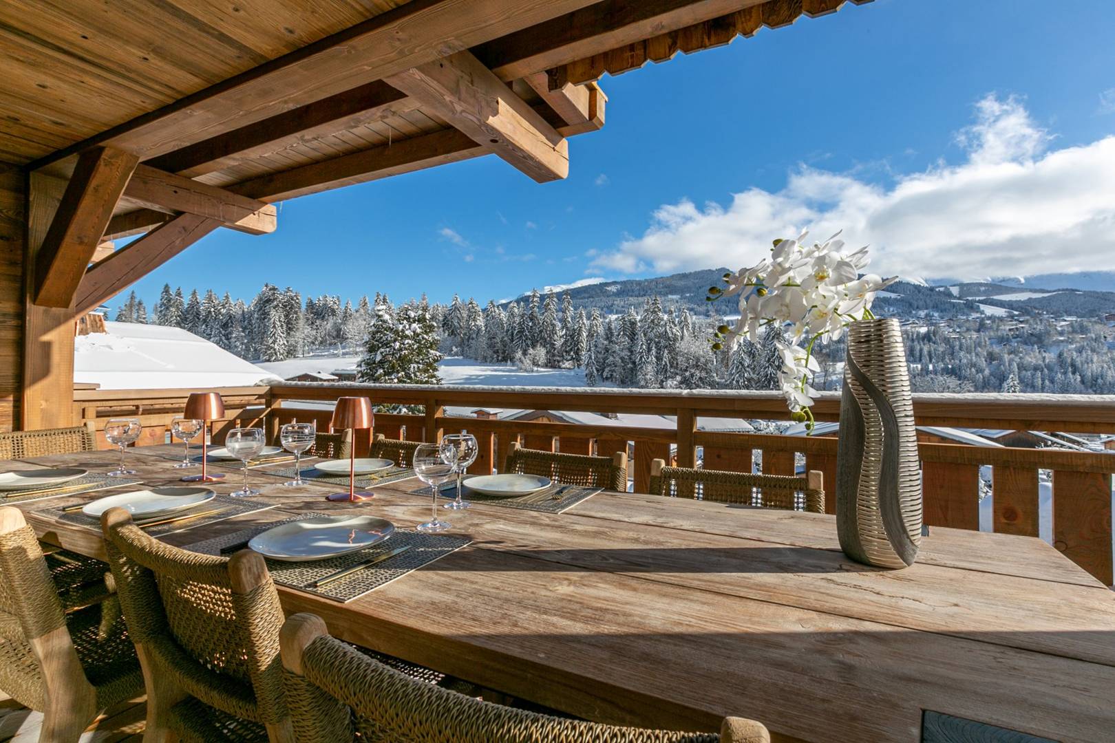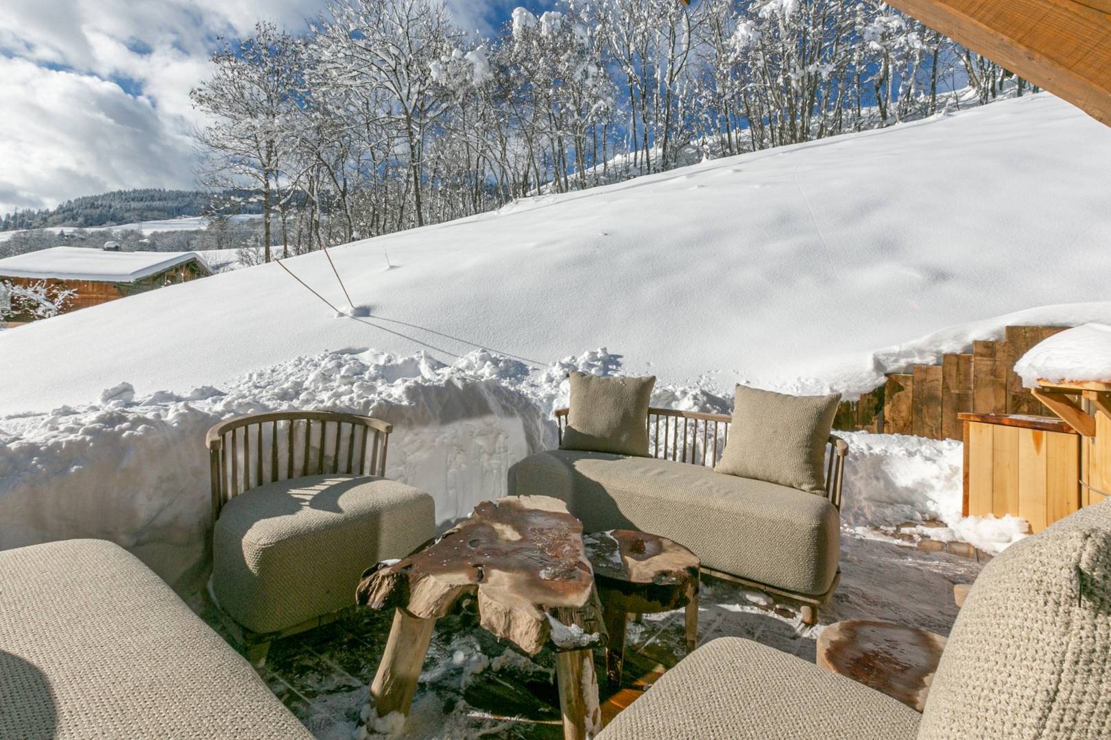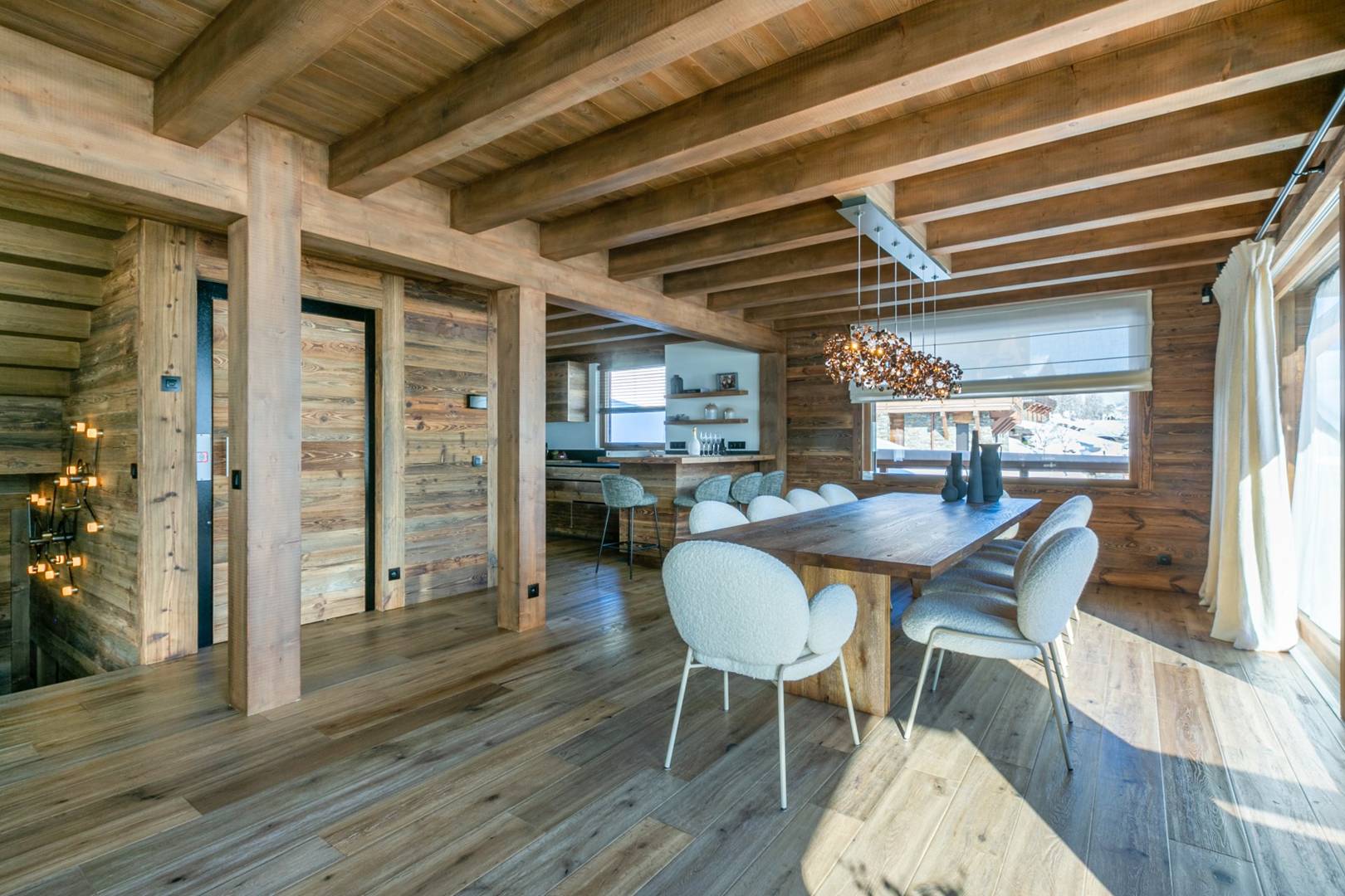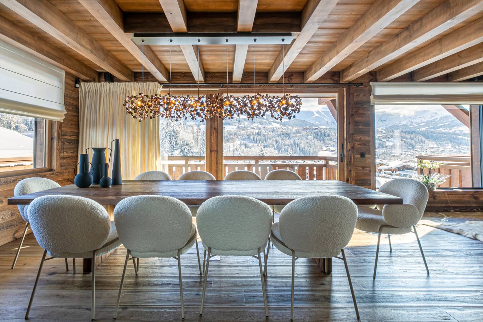 Located in Demi-Quartier, the Big White Bear is close to the slopes of Megève. With 400 m² of elegant interiors, the property offers a high level of comfort. It combines warm, inviting bedrooms with a spacious and bright living area that opens out onto panoramic views of the village of Megève and Côte 2000. It also features a magnificent indoor pool and a pleasant relaxation area.