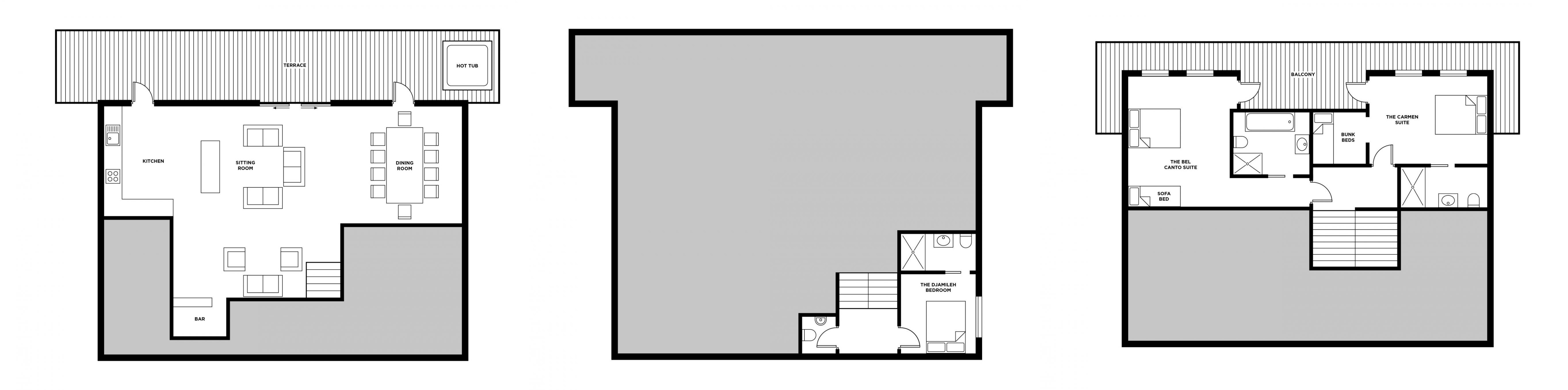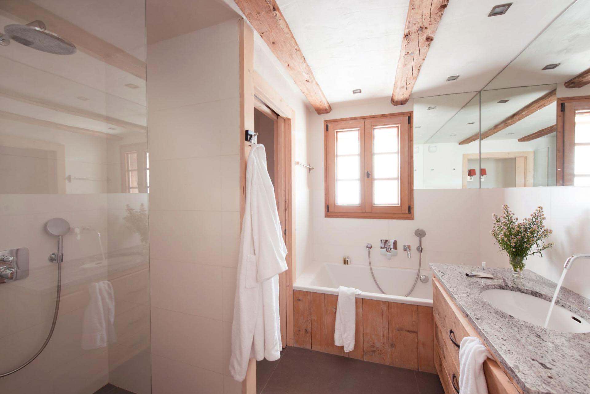 Each of the chalet’s three en-suite bedrooms has been thoughtfully designed to balance comfort and style. From cosy, wood-clad suites with French doors and mountain views to family-friendly spaces with additional bunk beds, every room offers a calm and luxurious retreat.