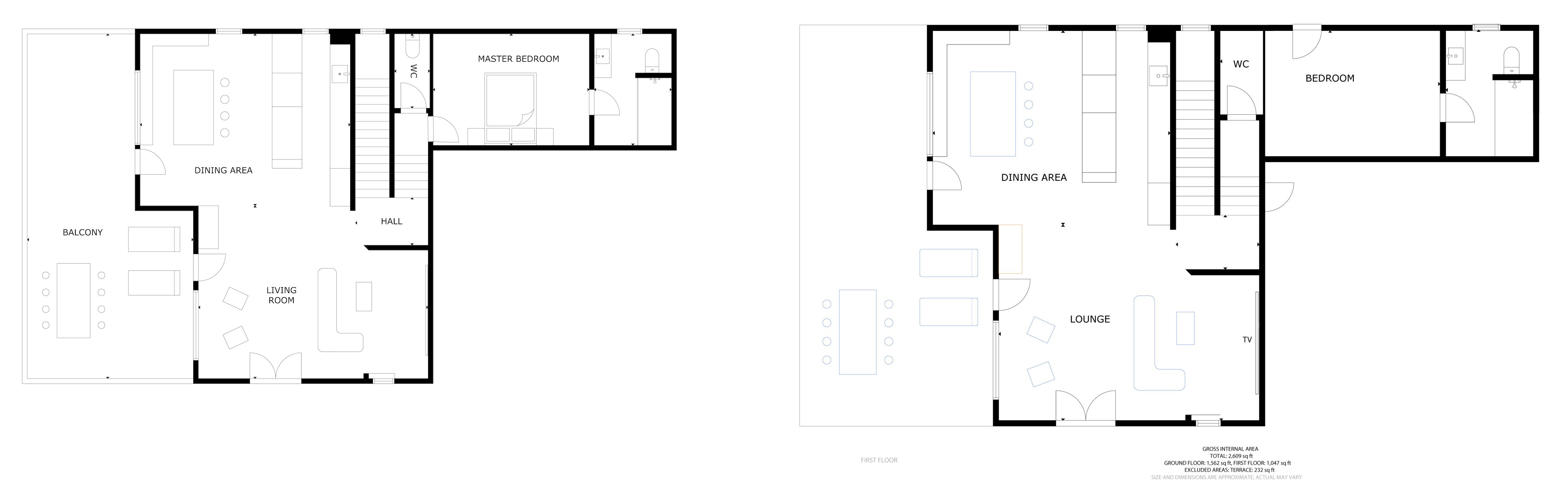 Accommodation is spread across five beautifully appointed double bedrooms, each with its own en-suite. A luxurious master suite sits just off the main living area, offering added privacy, while the remaining four bedrooms are located on the ground floor, styled with warm wooden interiors and soft furnishings.