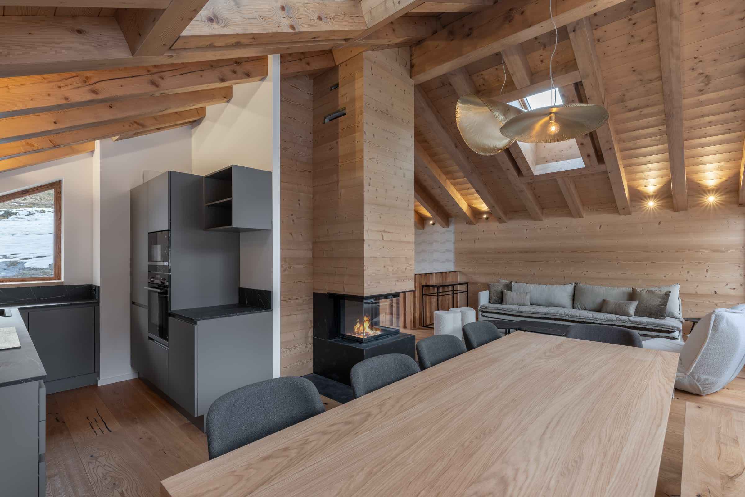 Nestled in the Gittaz district, just minutes from shops and amenities, the residence also benefits from direct access to nature and a peaceful alpine atmosphere. Each chalet includes an electric vehicle to conveniently reach the ski lifts, located only a few hundred metres away.