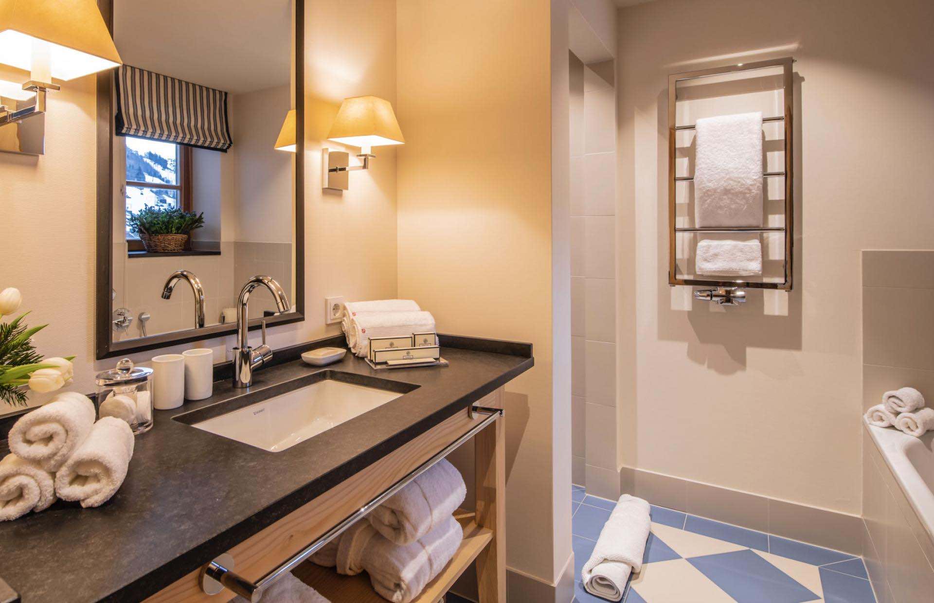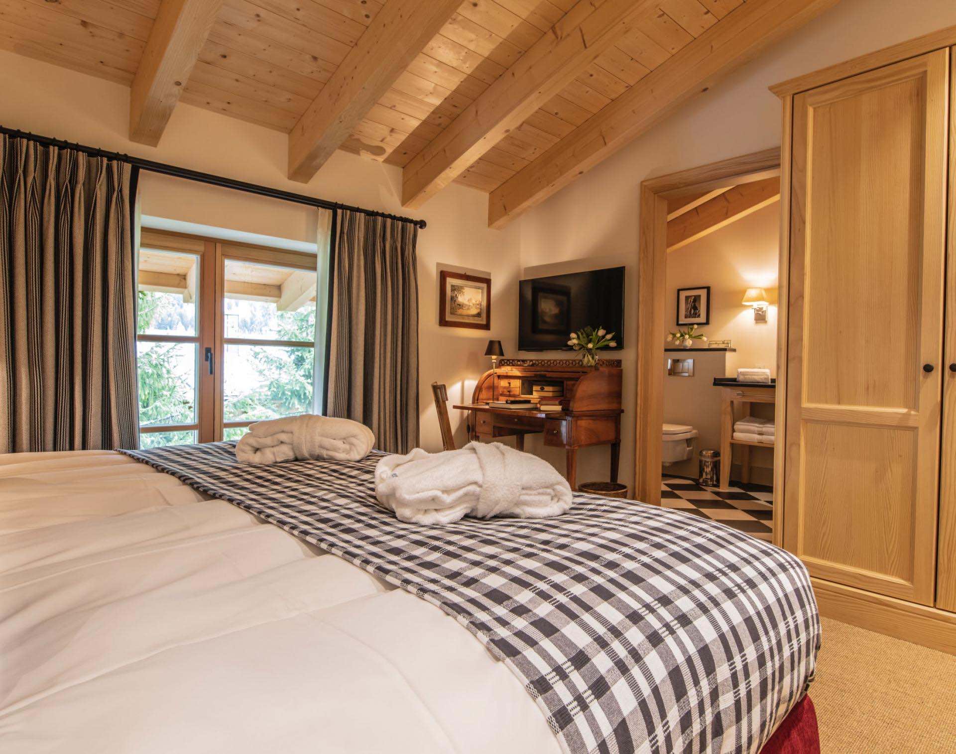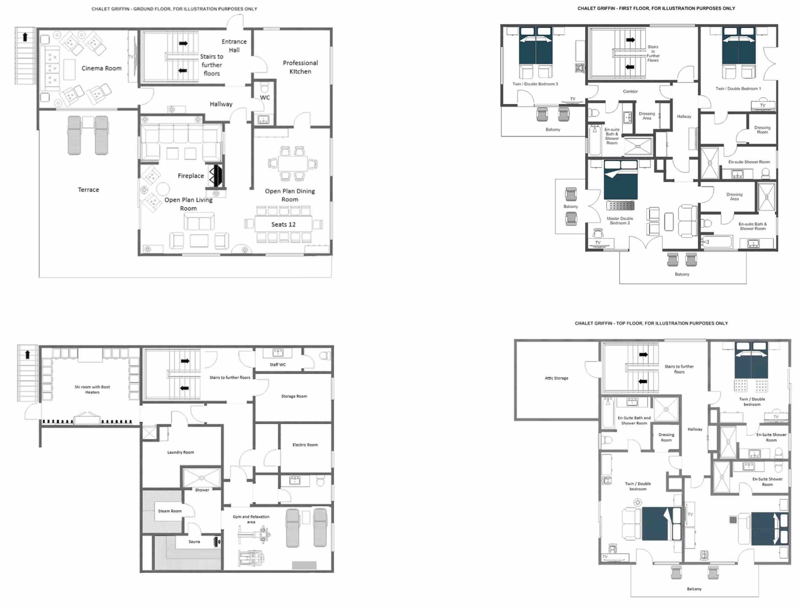 Spanning approximately 465m² across three beautifully designed floors, the chalet accommodates up to 14 guests in seven elegant bedrooms. Each room is thoughtfully styled with warm alpine materials, plush furnishings and modern comforts, creating a cosy yet sophisticated sanctuary after a day on the slopes.