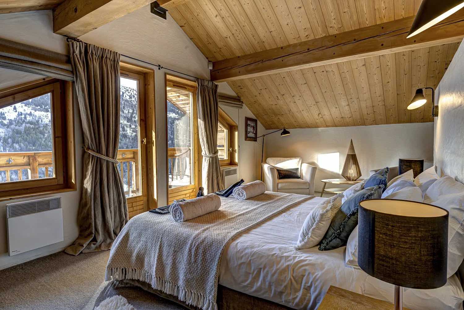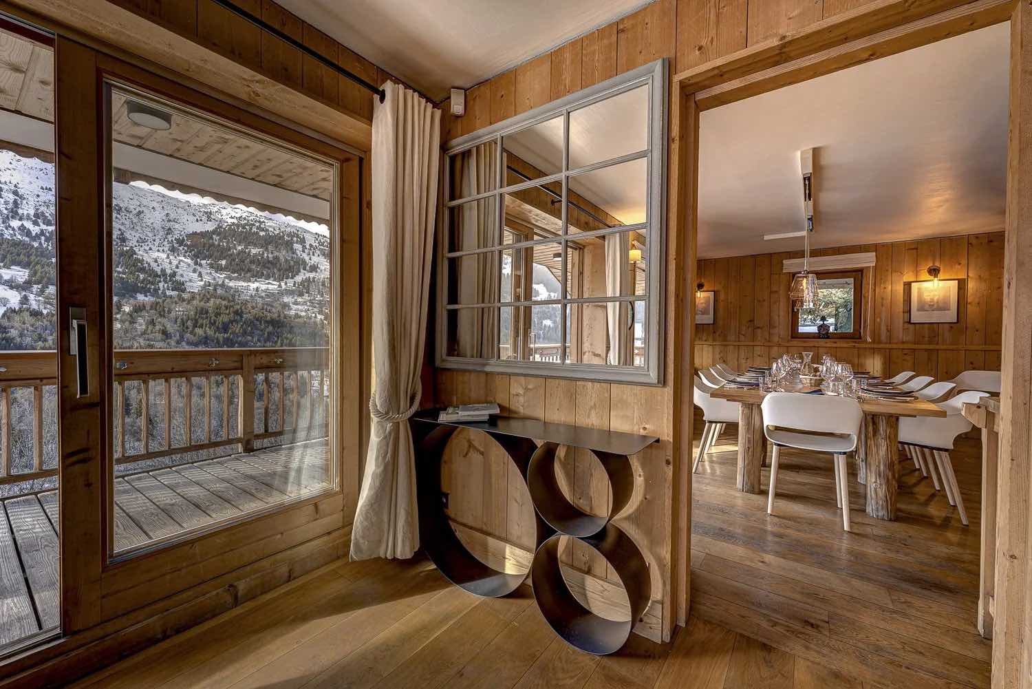 Spread across four levels, Chalet La Chouette is thoughtfully designed to deliver an unforgettable luxury ski experience in Méribel. While its exterior may appear understated, step inside, and you’ll find an elegant sanctuary that exceeds expectations. The centerpiece of the chalet is its expansive open-plan living area, bathed in natural light streaming through floor-to-ceiling windows that frame awe-inspiring views. Sink into plush designer sofas and marvel at the sweeping panorama of the Tarentaise Valley and the Tougnète and Cherferie slopes. The inviting ambiance, enhanced by a crackling wood-burning fireplace, makes it a perfect spot for relaxed evenings with loved ones. Step out onto the wraparound balcony to soak in the stunning alpine vistas.