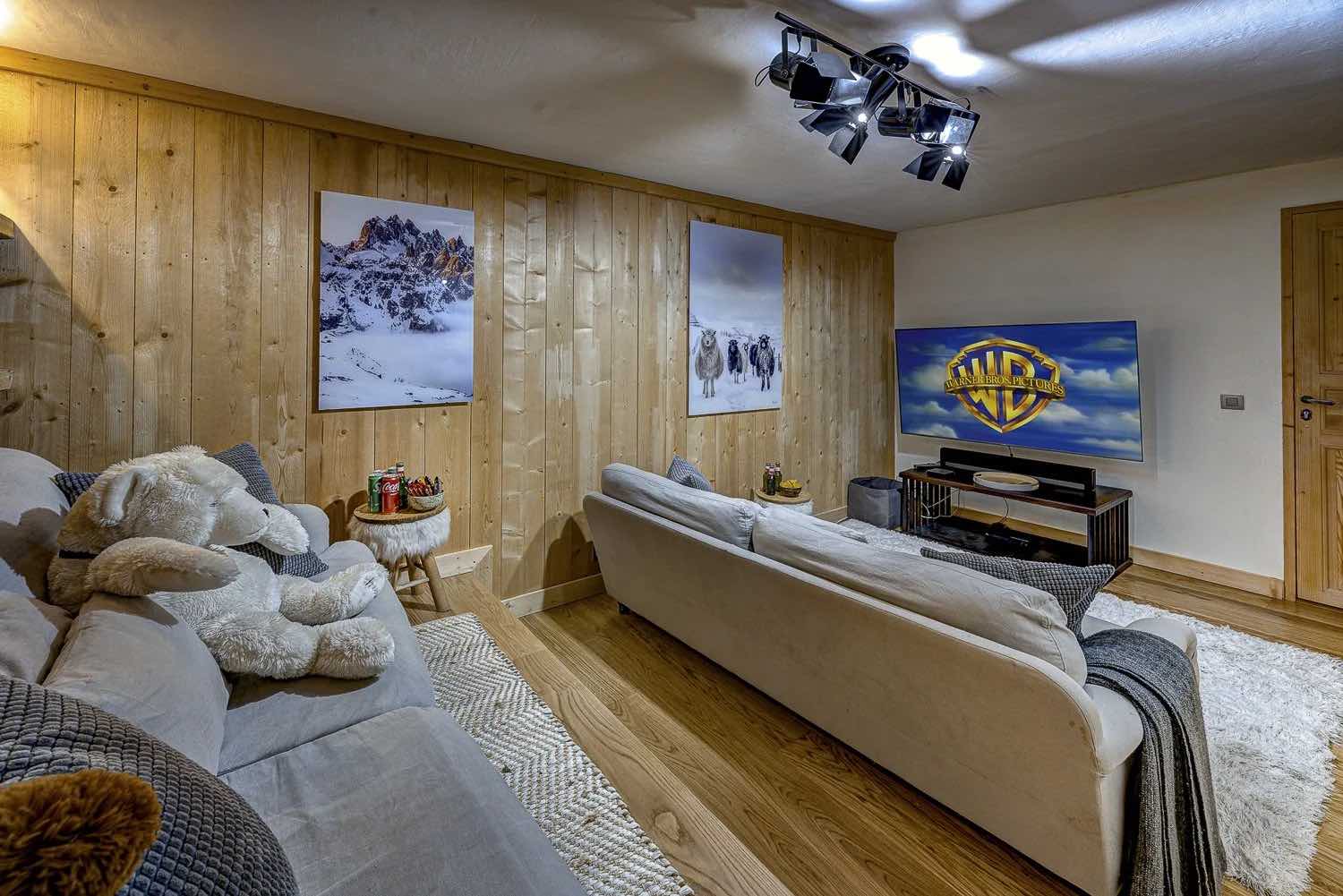 Relaxation is at the heart of Chalet La Chouette, with a host of wellness amenities designed to rejuvenate both body and mind. Enjoy the sun-drenched wraparound terrace, where you can unwind in the bubbling outdoor hot tub while taking in the breathtaking scenery. For deeper relaxation, step into the chalet’s sauna to soothe tired muscles, or let the concierge arrange an in-chalet massage for the ultimate indulgence. Afterward, gather in the private TV room to enjoy a favorite film or discover something new.