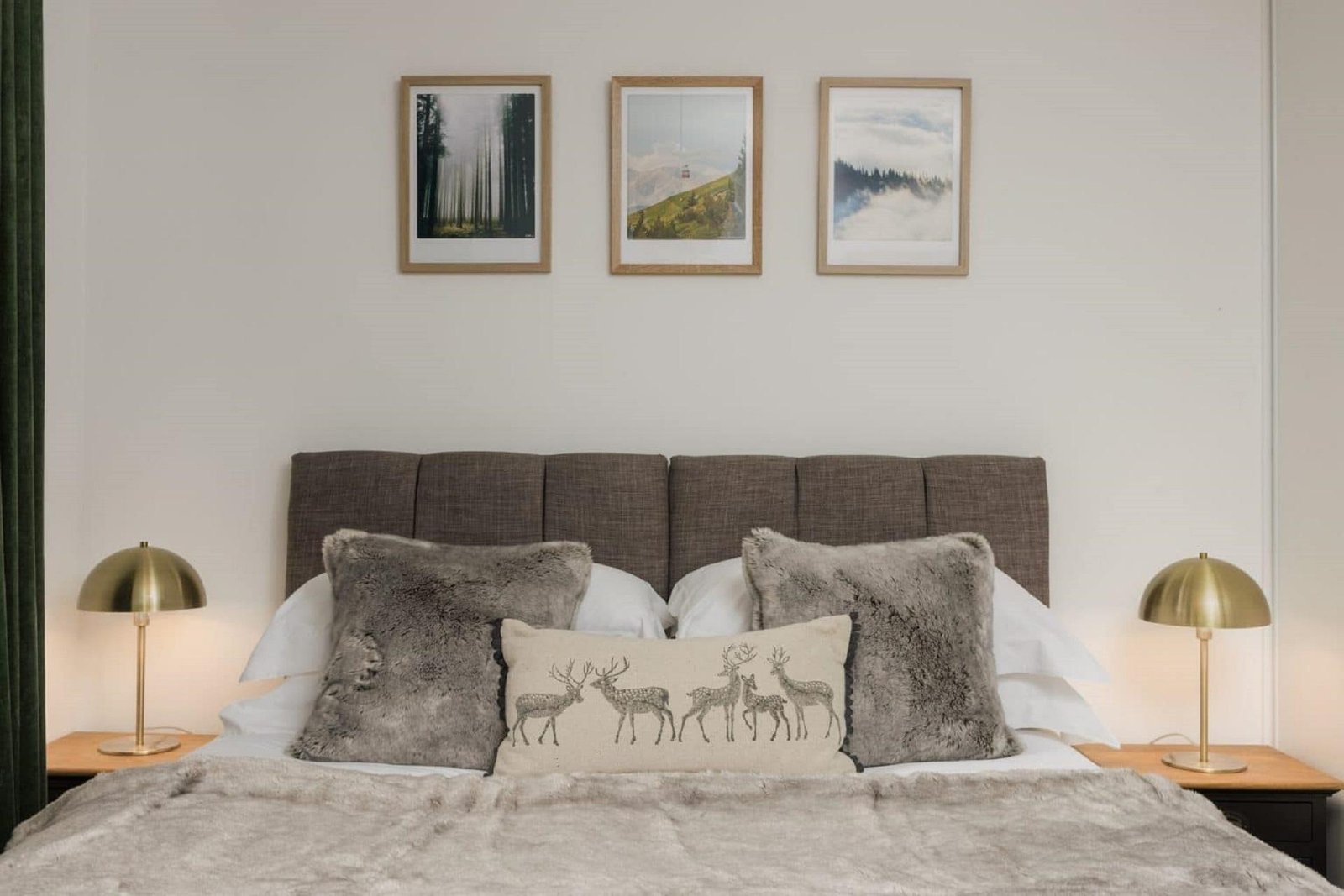 Each bedroom offers its own unique character, combining plush bedding with calming, mountain-inspired décor to ensure restful nights. A cosy TV snug tucked under the eaves provides the perfect hideaway for movie nights or quiet downtime.
