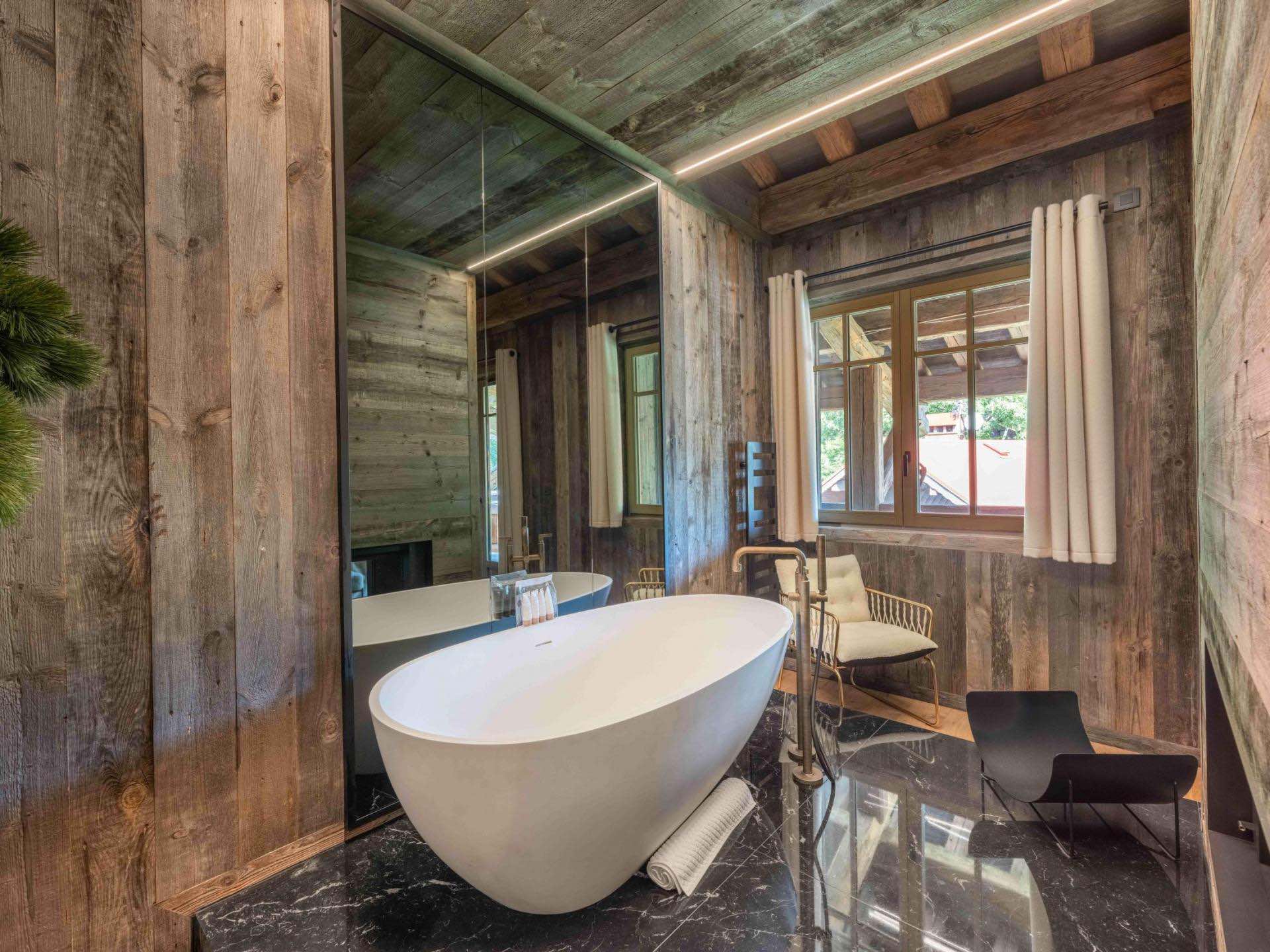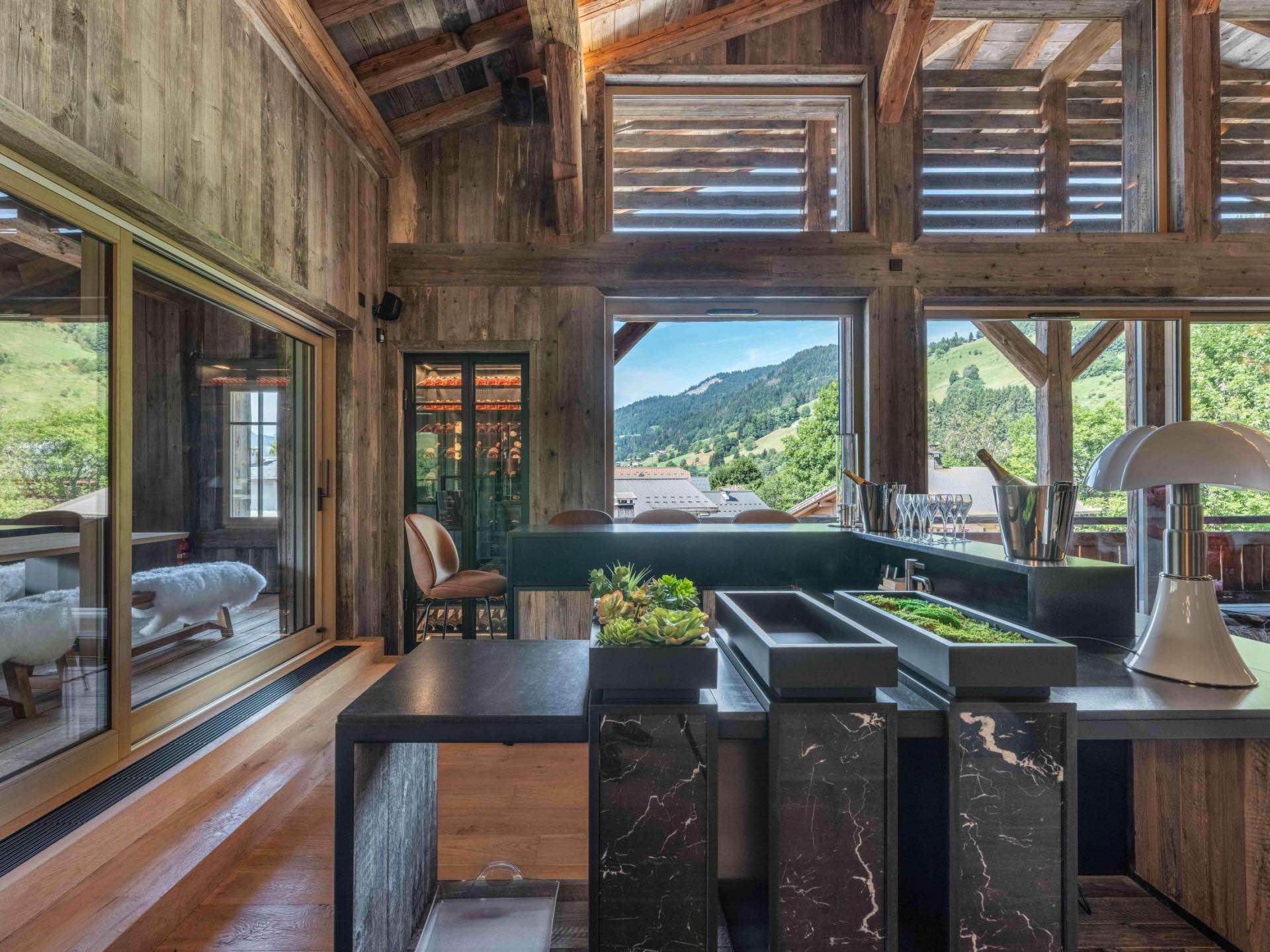 Outdoors, the chalet’s authentic wooden façade blends harmoniously into its surroundings, while terraces offer serene mountain vistas and space for al fresco moments. Inside, every detail has been carefully considered to deliver both comfort and understated luxury.