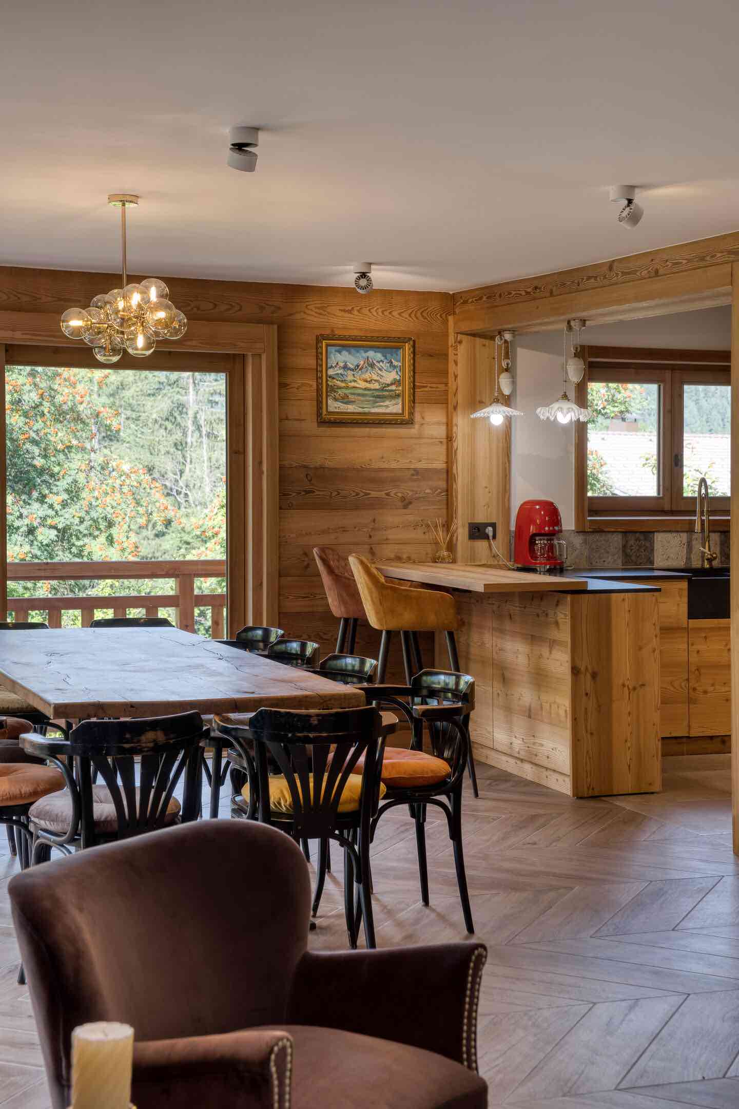 Set on a beautiful 1,500 m² plot, the chalet comfortably accommodates up to eight adults and four children. It features four spacious king-size bedrooms, a cosy dormitory-style room for children, and three bathrooms. After a day on the slopes, unwind in the private sauna or make use of the convenient ski room.