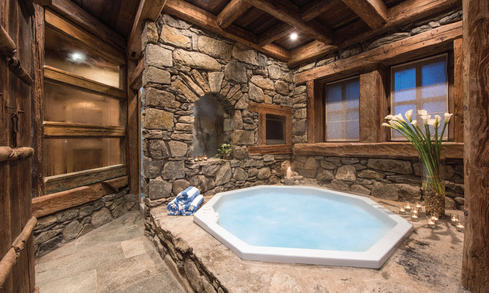 Wellness is a key highlight of Chalet Montana. The private spa area features a sunken indoor Jacuzzi set into stone, a steam room, hammam, monsoon shower and relaxation space, ideal for soothing tired muscles after skiing. In-chalet massages can also be arranged, transforming the chalet into a complete alpine sanctuary.