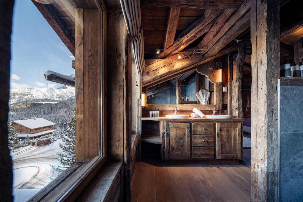 Chalet Montana is a luxury alpine retreat in Courchevel 1850, offering an intimate yet refined setting for 10–12 guests. Built from reclaimed ancient timber and natural stone, its classic Alpine architecture, timbered balconies and wide eaves sit beautifully among snow-covered pine trees. Inside, rustic materials are paired with high-end craftsmanship and thoughtful design touches, including hand-painted mountain frescoes and distinctive lighting, creating a warm, authentic atmosphere with a polished finish.
