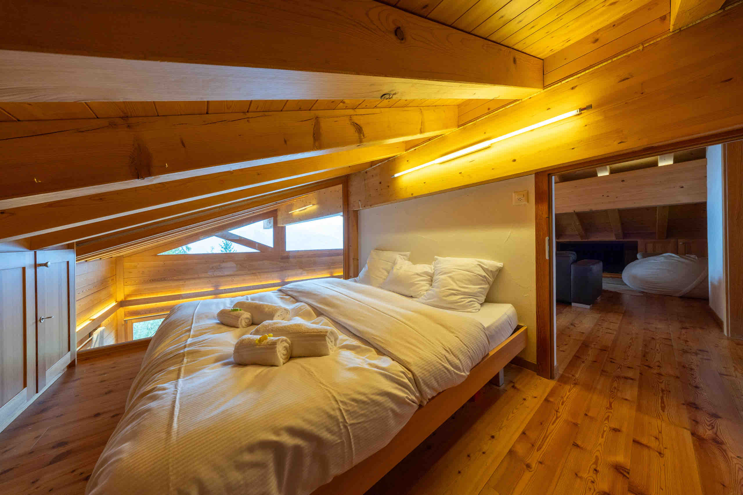 Nestled in the picturesque Péroua district of Nendaz, in the heart of the 4 Vallées ski area, this chalet combines modern style, comfort, and tranquillity. With space for up to twelve guests, it offers five bedrooms: four doubles, including a charming attic-style room under the roof for those who enjoy a cosy retreat, and one bunk room that accommodates four, ideal for children or groups.