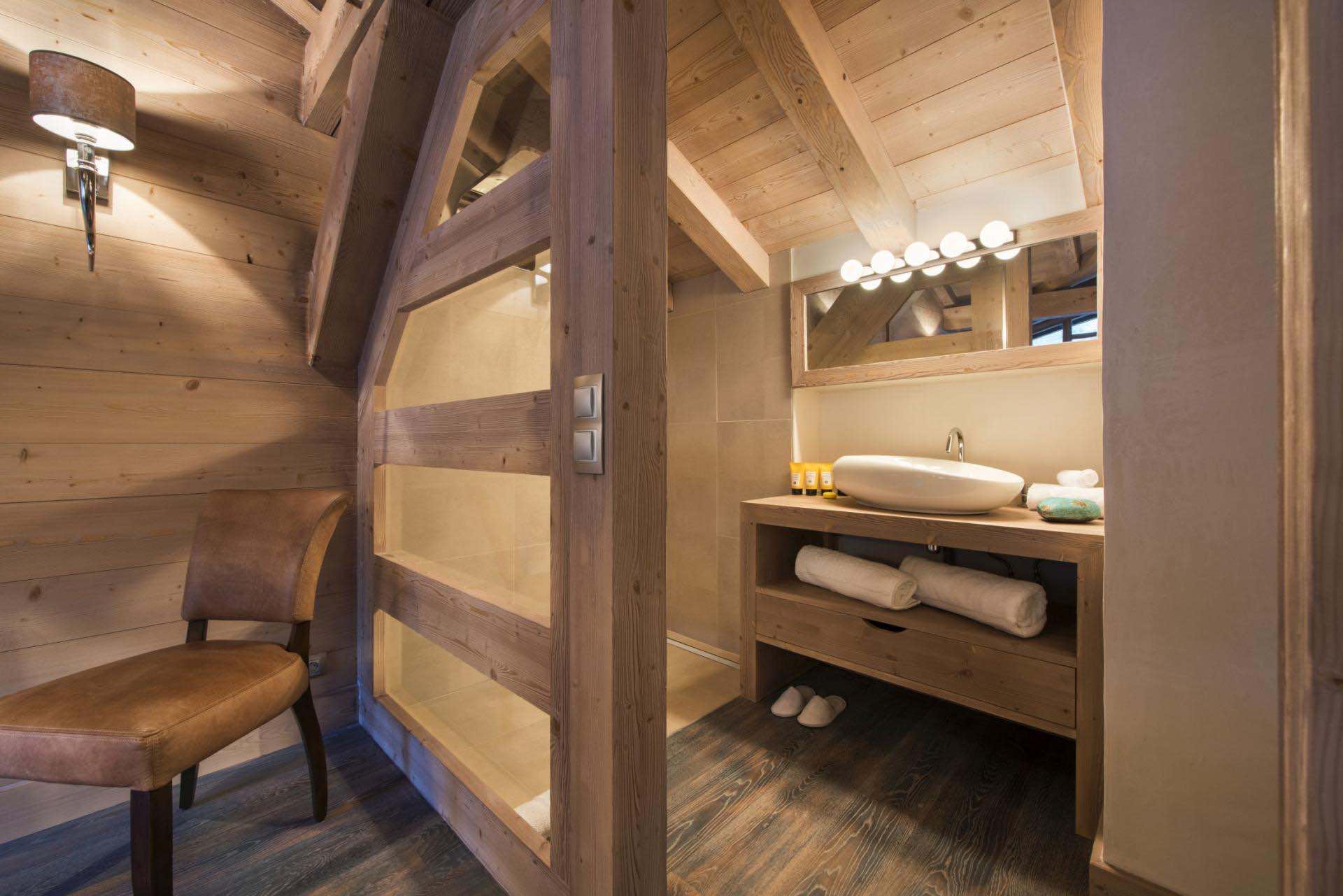 The nine en-suite bedrooms are arranged across both chalets and include a mix of master suites, flexible double or twin rooms, and a family room designed with bunk beds for children. The layout provides privacy as well as generous shared spaces, allowing guests to spend time together while still enjoying their own areas to unwind.
