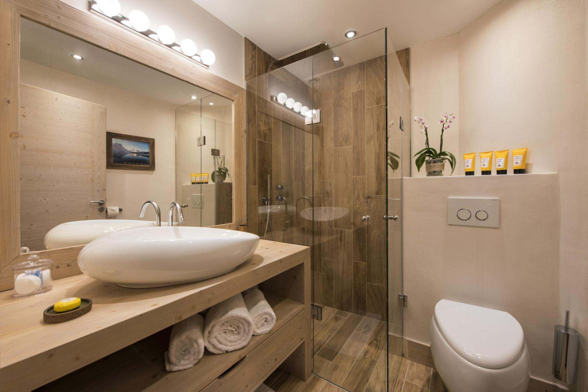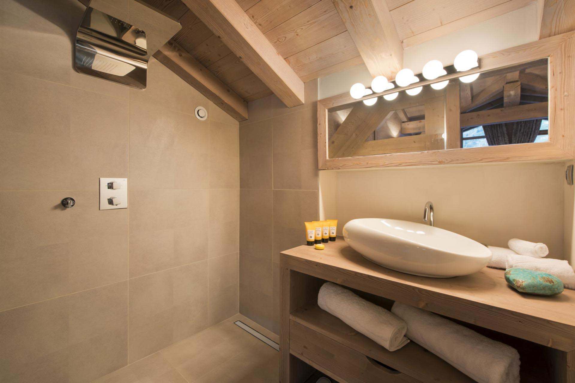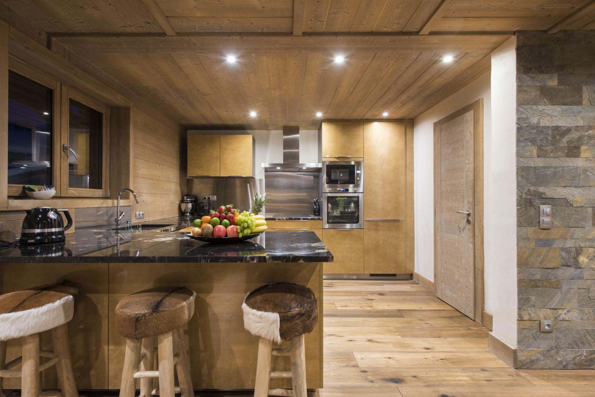 Inside, the chalet features two open-plan living and dining areas that can function independently or be used together for the whole group, making it ideal for multi-family holidays, corporate trips, or celebrations. Large windows and balconies maximise natural light and frame views of the surrounding mountains, while warm textures and modern furnishings create an elegant yet relaxed setting.