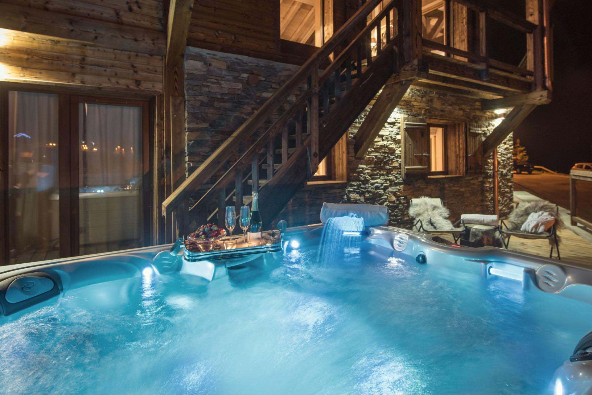 After a day on the slopes, guests can return to a range of premium wellness and leisure facilities designed for comfort and recovery. The chalet offers two outdoor hot tubs, spacious lounge areas centred around a wood-burning fireplace, south-facing balconies, and a fully equipped ski room with heated boot warmers. Entertainment features and thoughtfully designed social spaces enhance the overall experience, making the property as enjoyable off the slopes as it is on them.