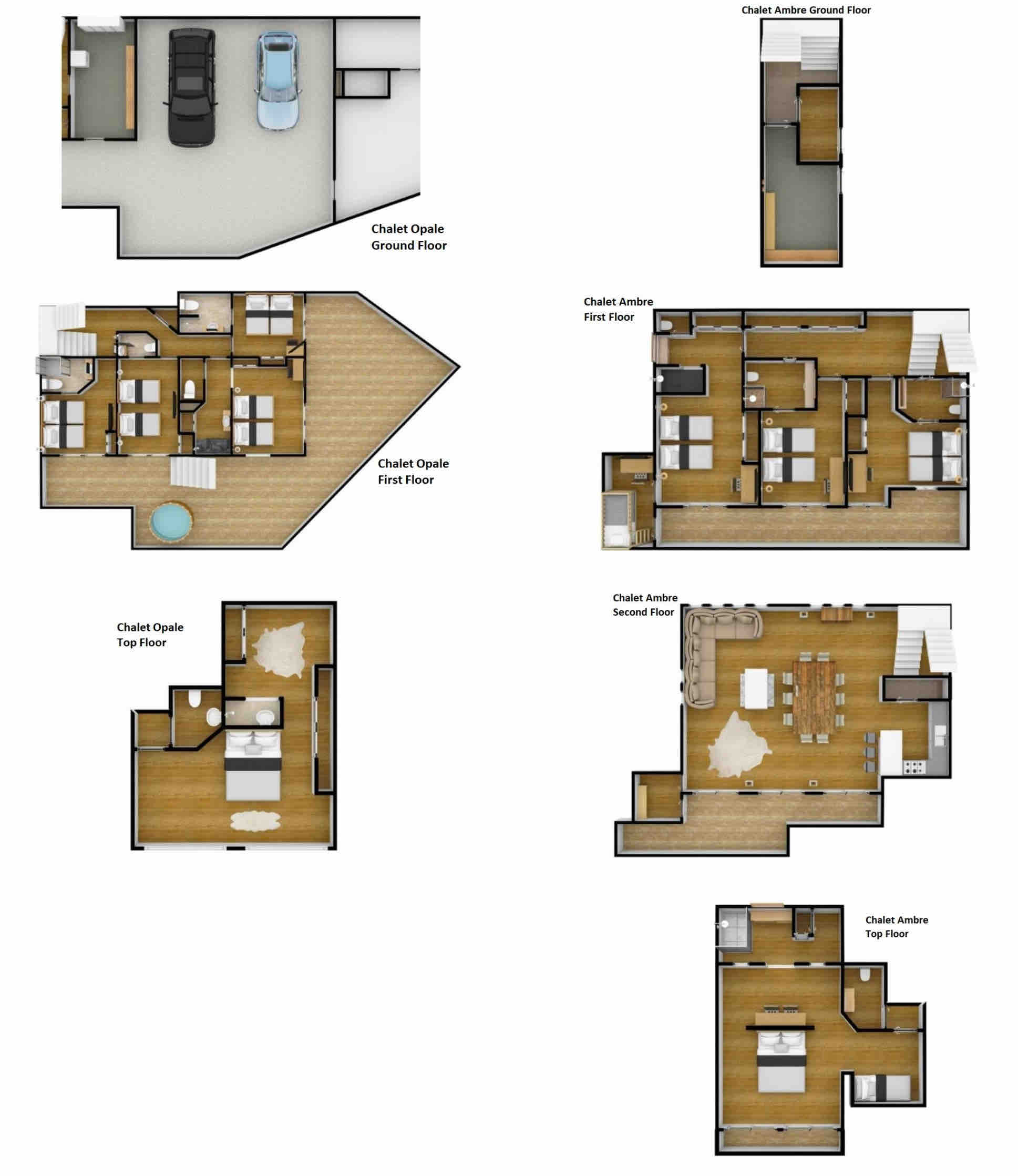 Chalet Opale Ambre is a spacious luxury ski chalet in Tignes Le Lac, created by linking two adjoining properties, Chalet Opale and Chalet Ambre, into one expansive alpine residence designed for larger groups. Together, they provide more than 450 m² of living space and nine bedrooms, comfortably accommodating up to 18 adults with additional capacity for children. The property blends contemporary alpine design with traditional materials, creating an atmosphere that feels both refined and welcoming.