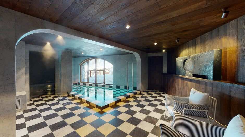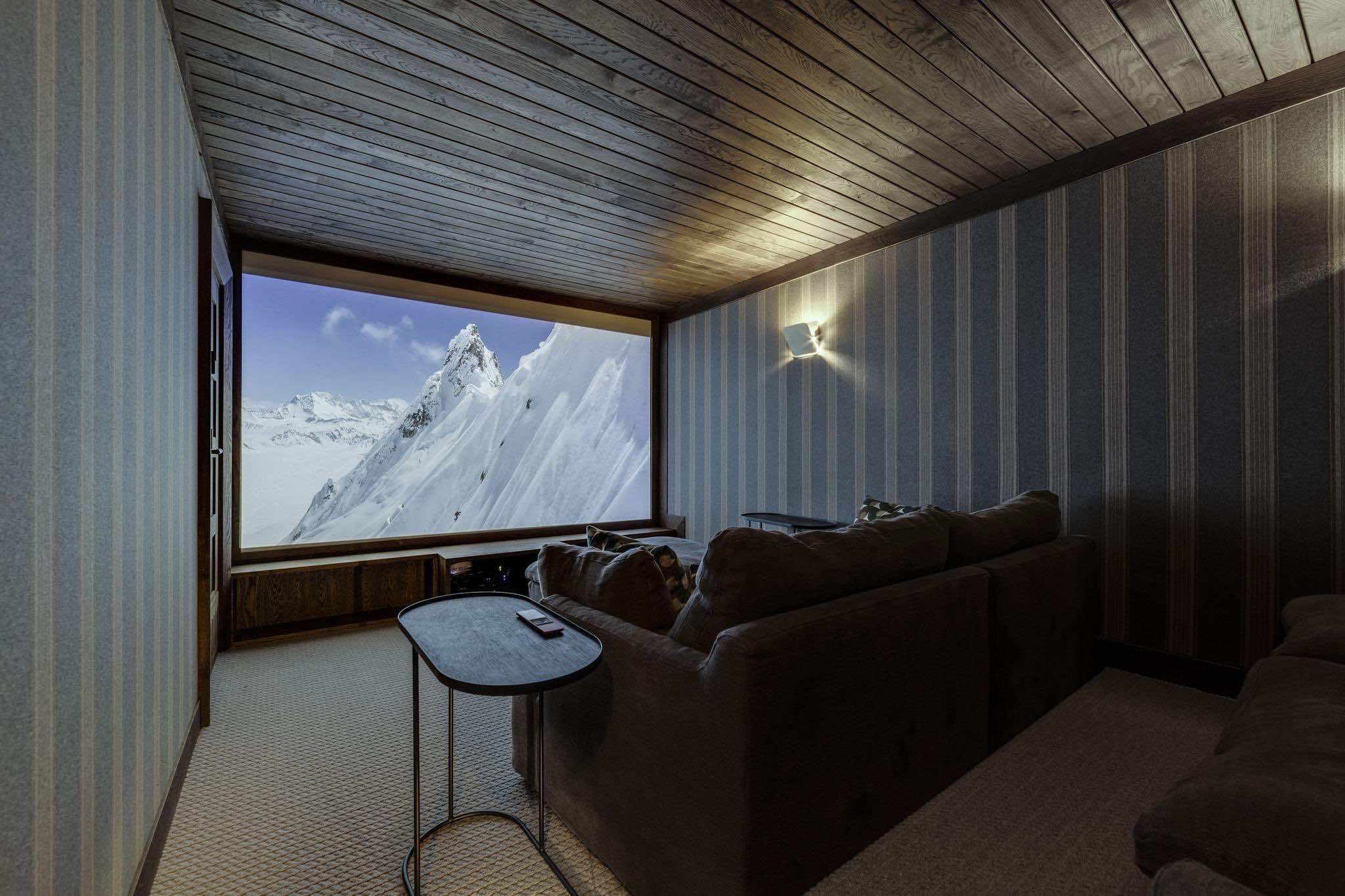 For post-ski relaxation, Chalet Ottawa delivers on every front. Unwind in the spacious steam room, book a treatment in the dedicated massage room, or watch the kids enjoy the indoor swimming pool. Later, settle into the plush cinema room on the second floor for a cozy movie night. There’s even a private office space for those needing to balance work with play.