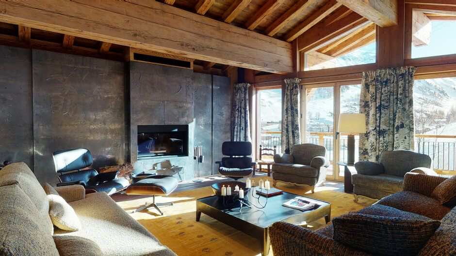 Thanks to the chalet’s elevated position, expansive windows and sliding glass doors flood the interior with natural light and unveil sweeping views of the Val d’Isère valley and the Olympic slopes of Bellevarde. Step out onto the terrace to soak in the scenery and crisp mountain air.