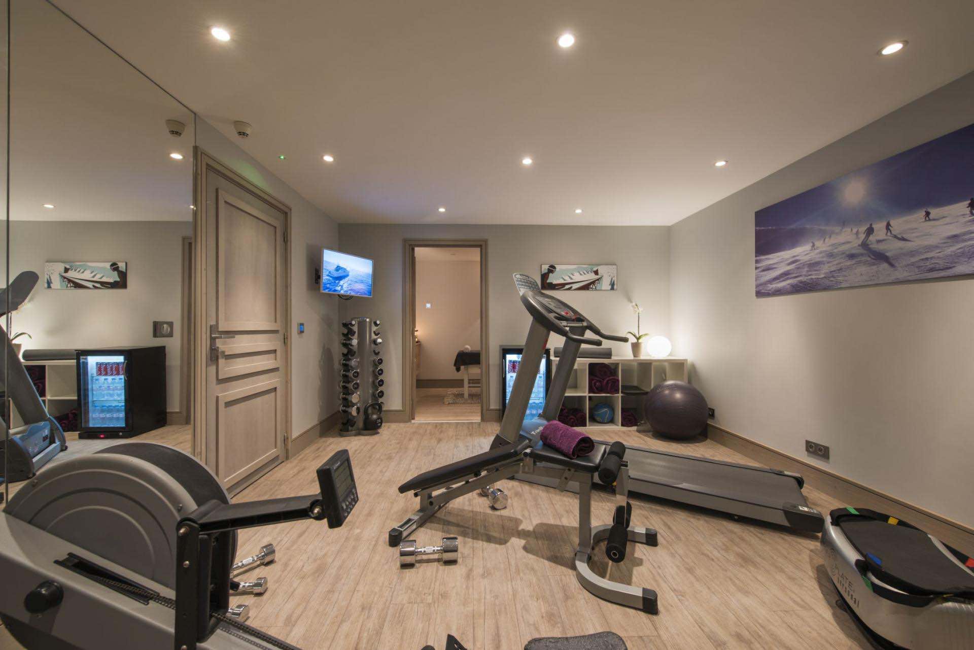 Outdoors, a sun-drenched terrace invites you to take in sweeping mountain views, with a private hot tub offering the ultimate spot to unwind after a day on the slopes. Inside, the dedicated wellness facilities elevate the experience further, including a hammam, treatment room, and a fully equipped fitness area, perfect for relaxation and rejuvenation.