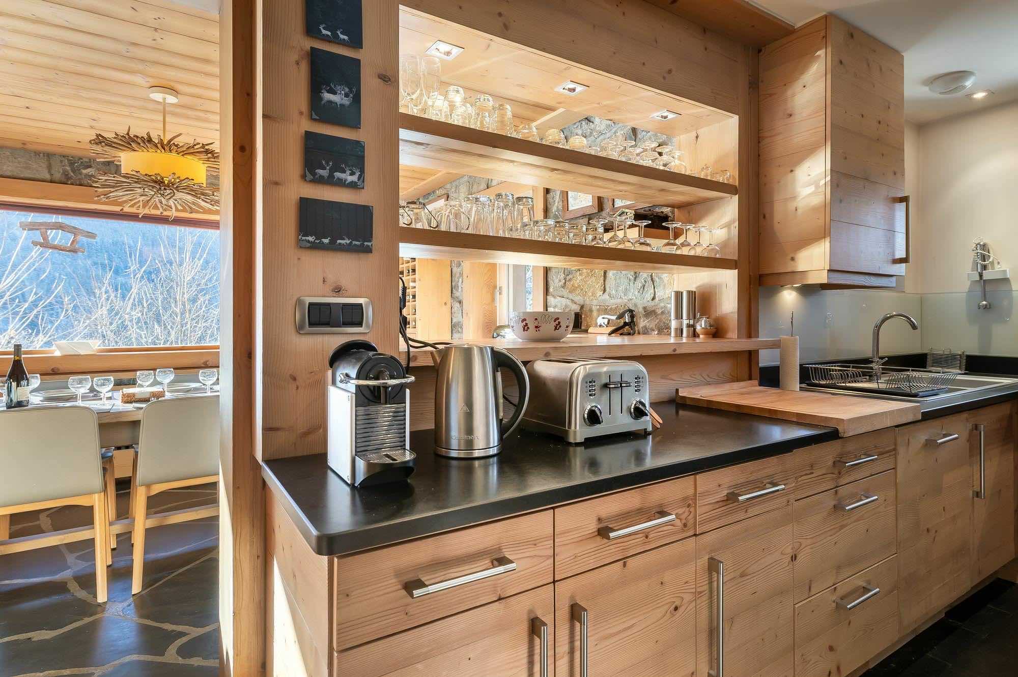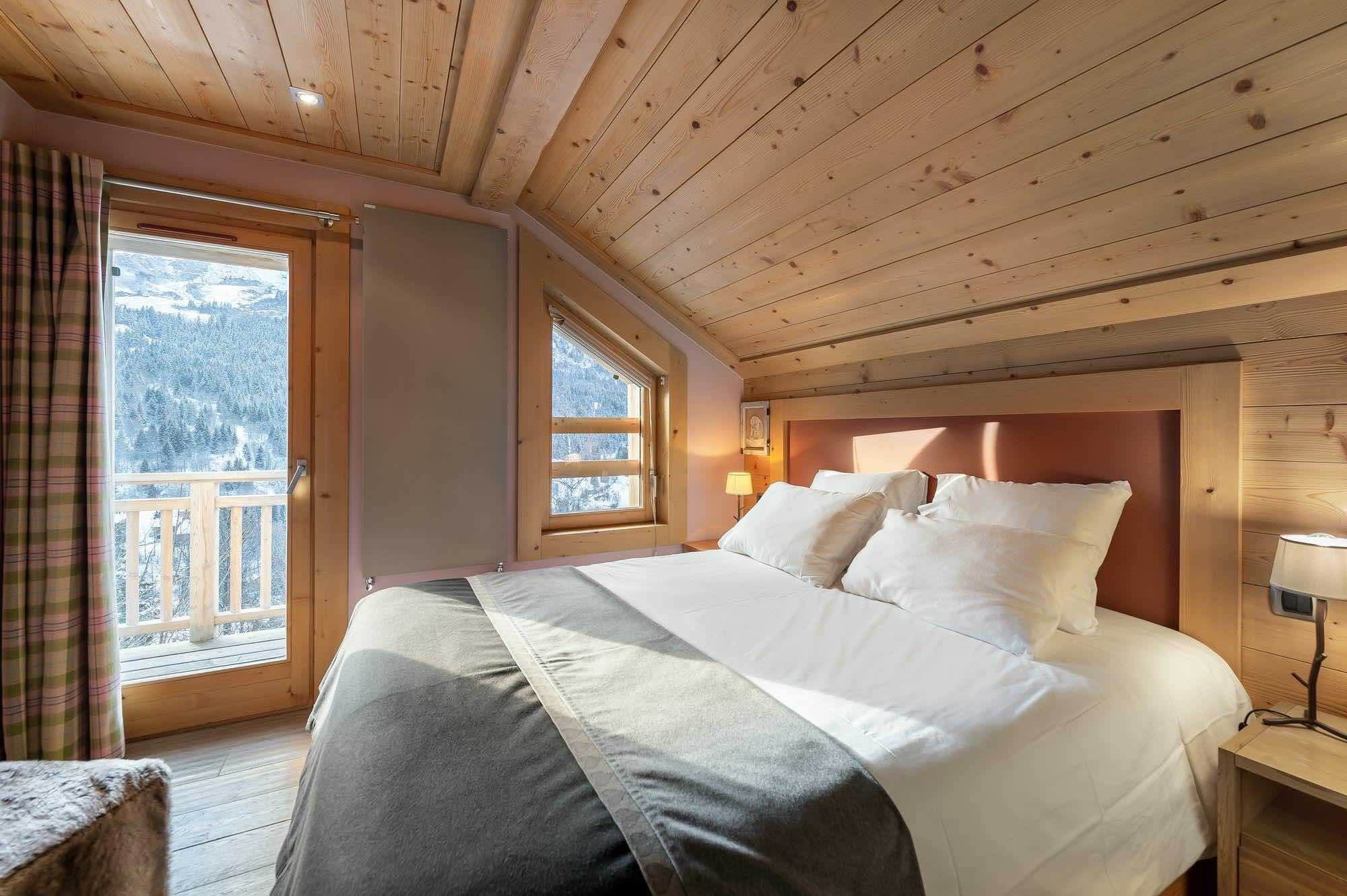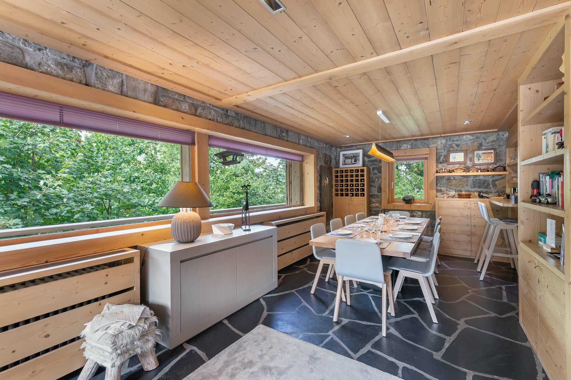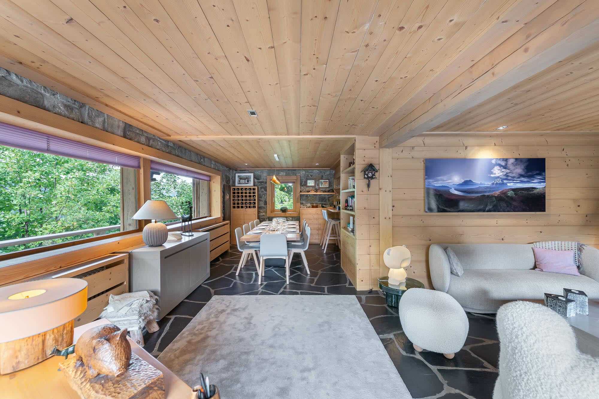 Beautifully crafted and tastefully renovated over the years by a renowned interior designer, the chalet offers exceptional comfort and a soothing sense of well-being. Its interiors are warm and inviting, showcasing a harmonious mix of natural materials—wood, leather, linen, and wrought iron. At the heart of the living room, a stunning stone and wood fireplace serves as the centerpiece, inviting guests to gather, share stories, and unwind after a day in the mountains.