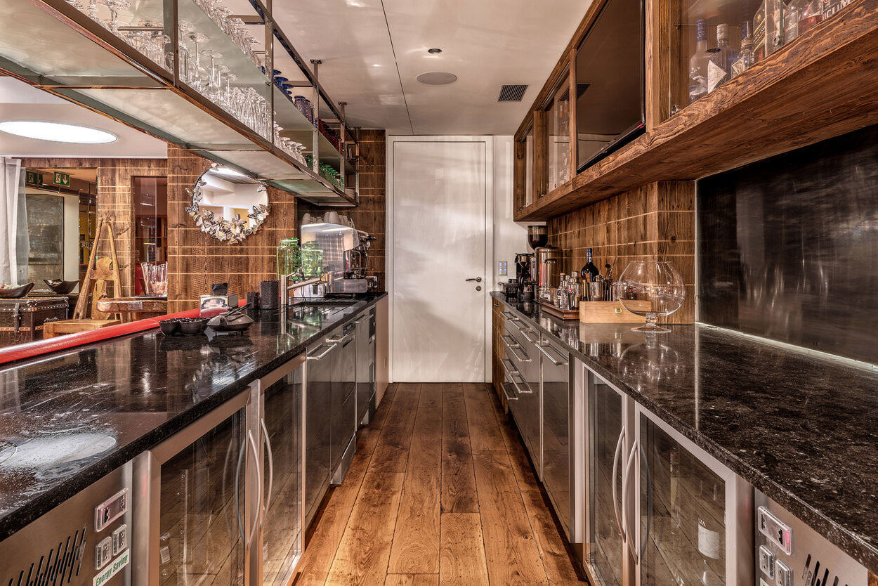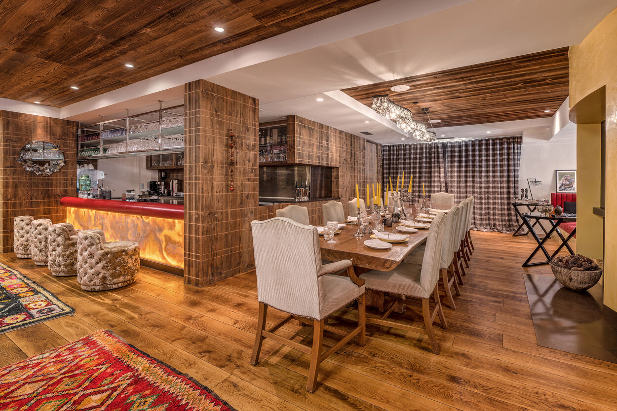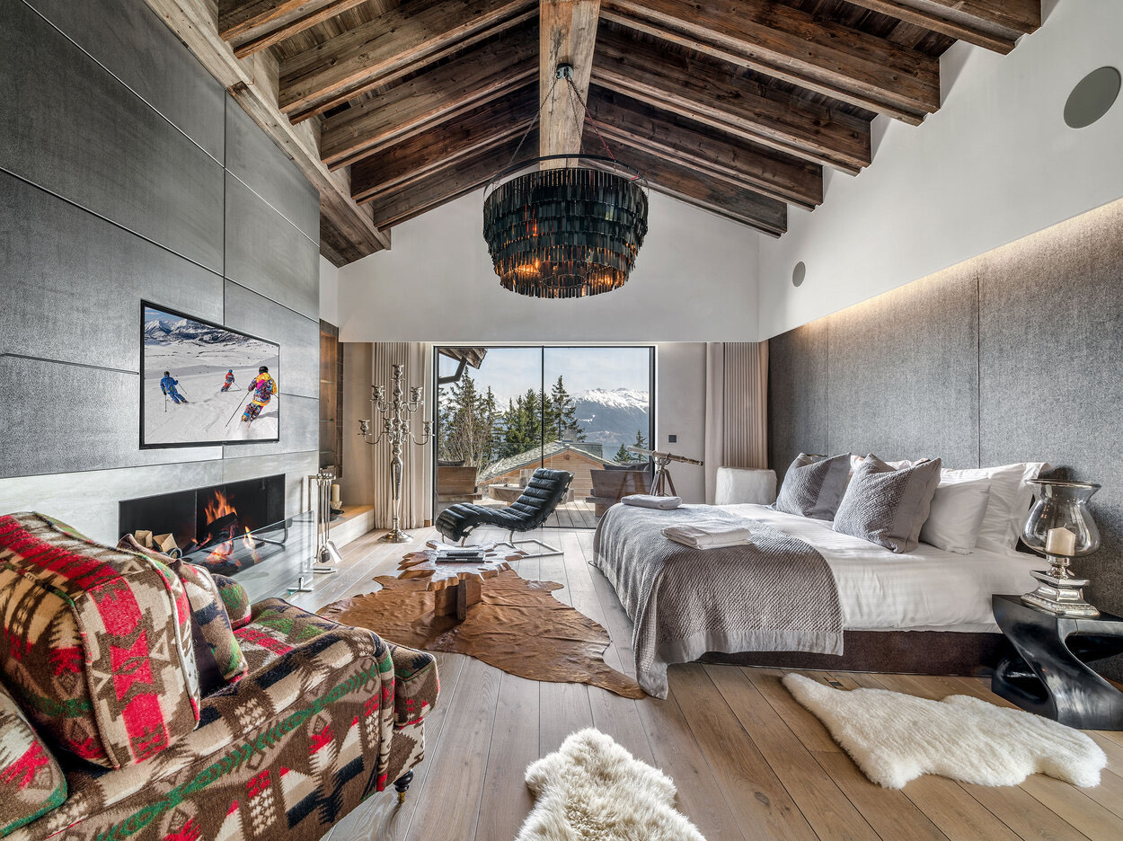 Designed to host up to 24 guests, the chalet features four three-bedroom en suite apartments and a six-bed children’s bunk room. In total, there are 12 spacious en suite apartments, complemented by 1,500 m² of communal areas and a 600 m² terrace. Guests can enjoy a luxury garage, media lounge, dining areas, a sunken relaxation lounge, and a fully equipped spa complete with pool and hammam.