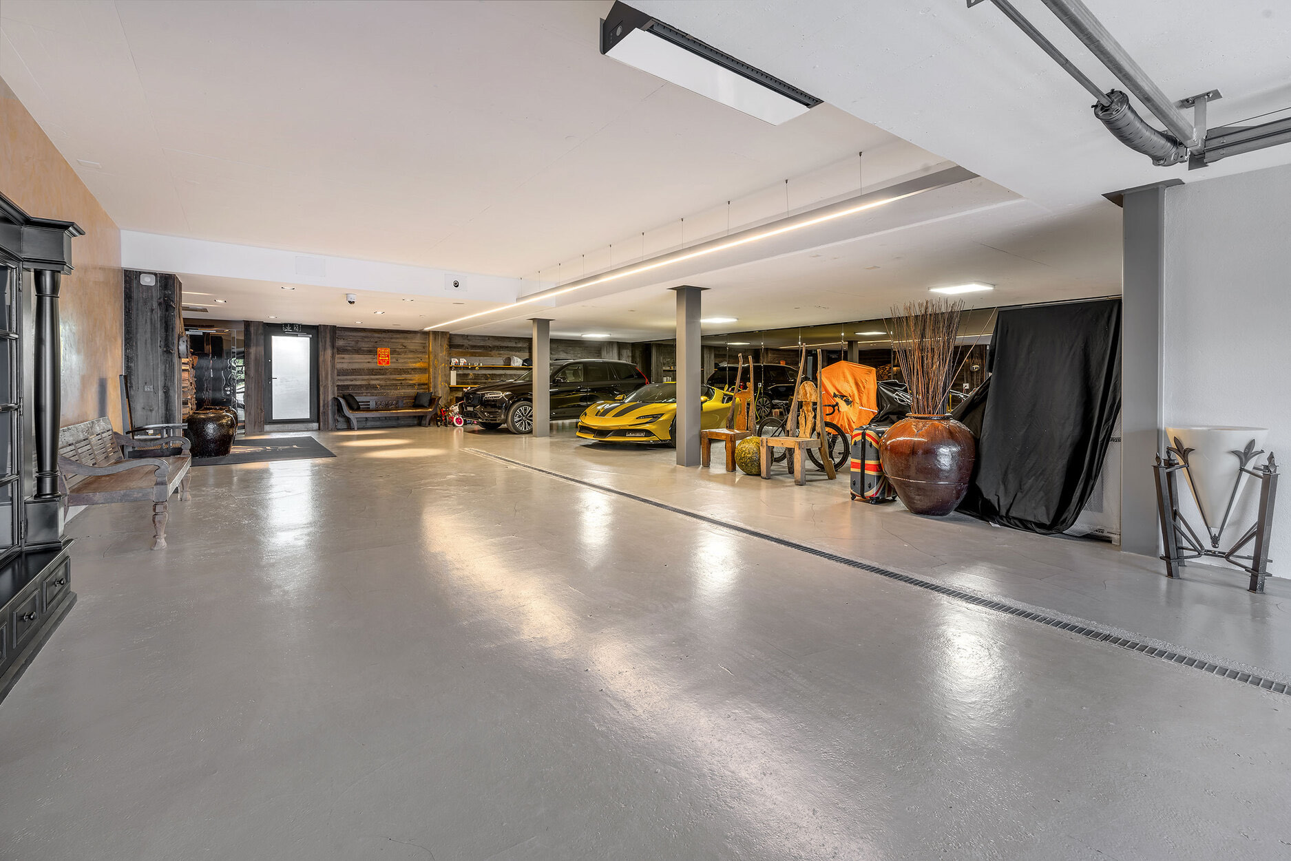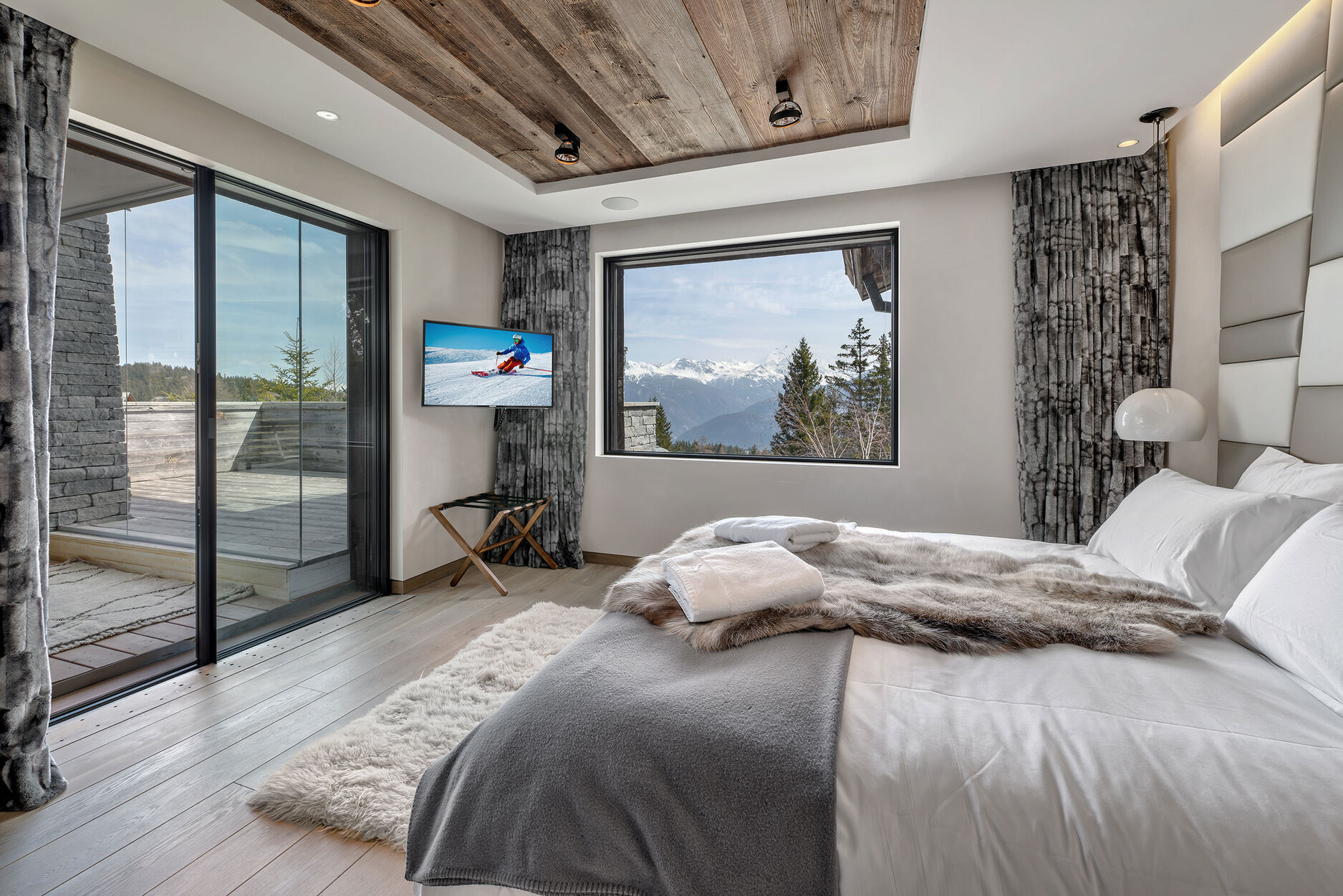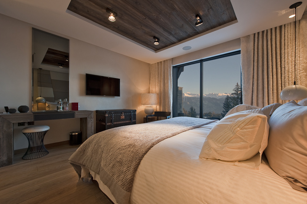 Designed to host up to 24 guests, the chalet features four three-bedroom en suite apartments and a six-bed children’s bunk room. In total, there are 12 spacious en suite apartments, complemented by 1,500 m² of communal areas and a 600 m² terrace. Guests can enjoy a luxury garage, media lounge, dining areas, a sunken relaxation lounge, and a fully equipped spa complete with pool and hammam.