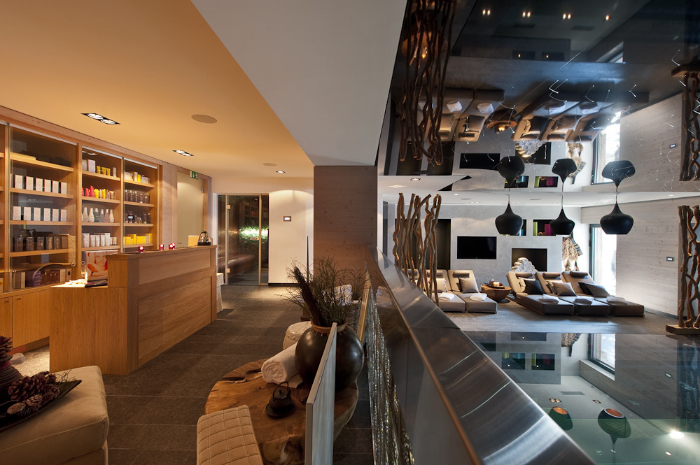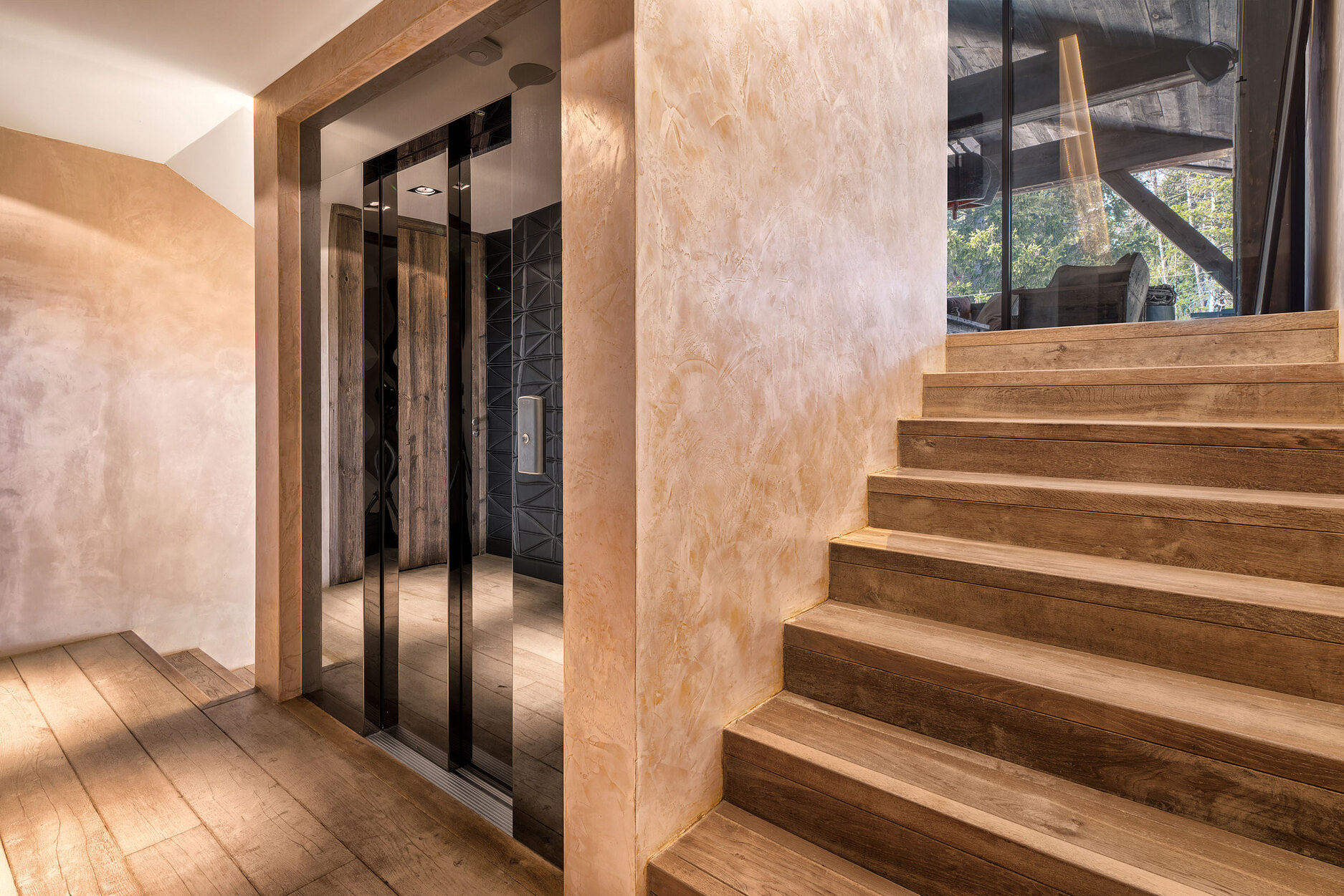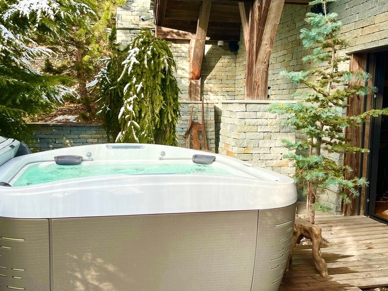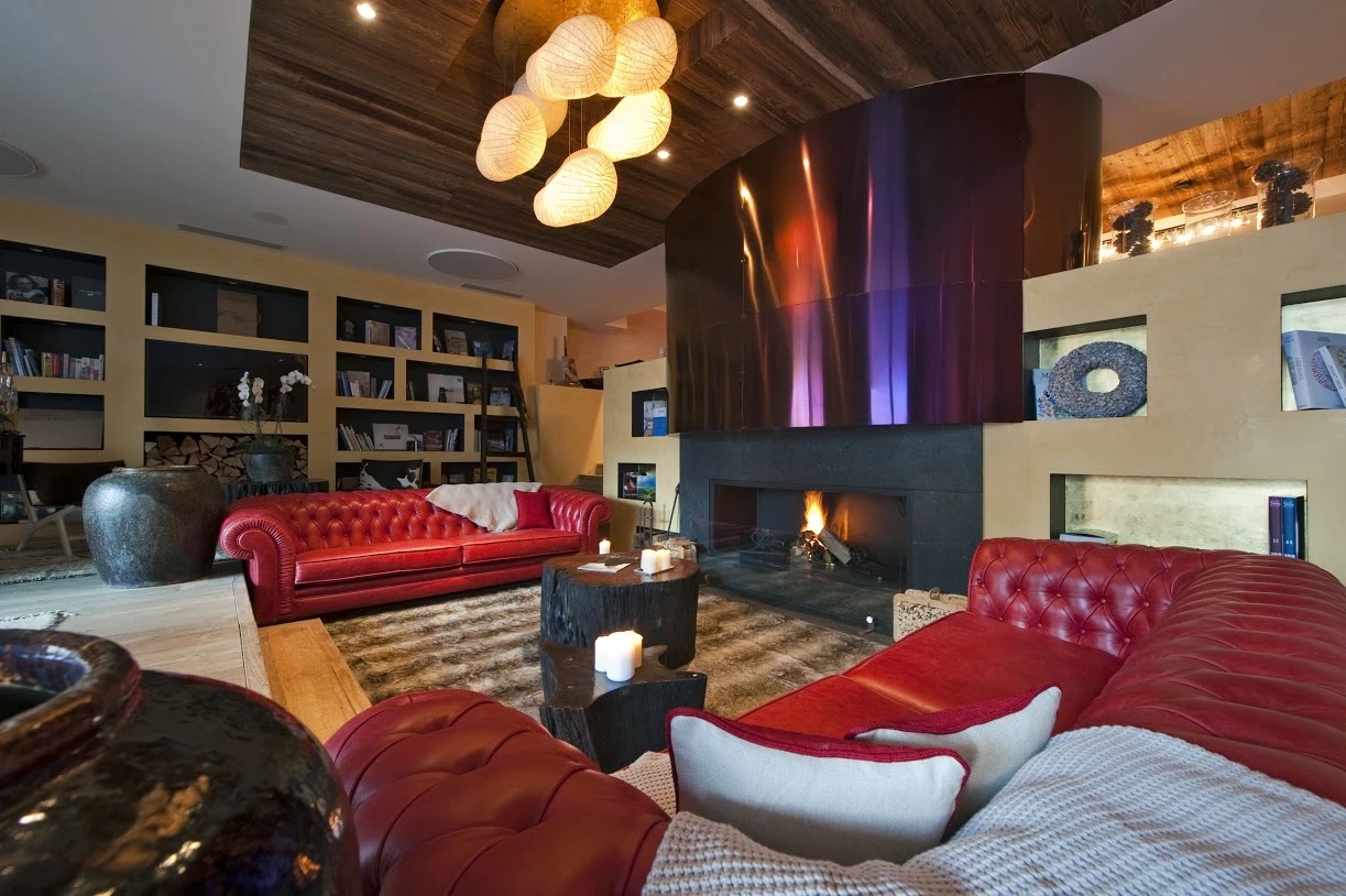 Every apartment includes three generously sized bedrooms—VIP, Executive, and Deluxe—and direct access to a private 100 m² terrace featuring a Jacuzzi and outdoor fire pit. Two distinctive interior styles are available: Gold, with rich tones, a striking bronze fireplace, oak-waxed floors, and linen-covered walls; and Monochrome, with an elegant palette of silver, white, and pewter that reflects the snowy Alpine landscape.