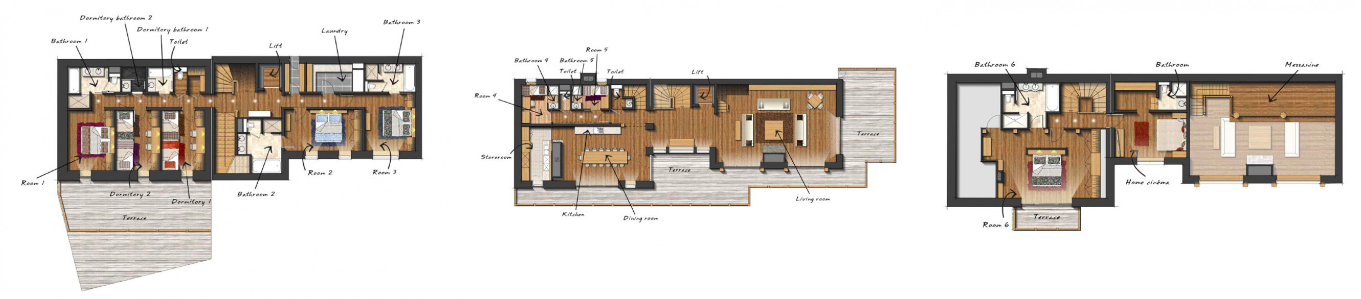 Make the most of the facilities and large rooms of this luxury chalet. This Ultimate Luxury Chalet sleeps 7 adults and 8 children in its 3 en suite double bedrooms, its master bedroom where you can admire the view from the bed, and its two dormitories where kids can entertain themselves with endless pillow fights. Leave everything in the capable hands of the chalet personnel: tidying, ski passes and equipment hire, organising activities… Everything is taken care of so that you can enjoy your holiday to the full.