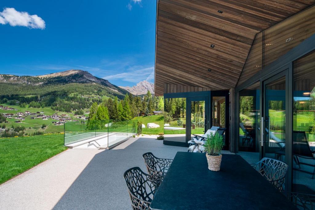 One of the chalet’s standout features is its premium location: ski-in/ski-out access directly onto the legendary Saslong World Cup slope in the Dolomiti Superski area, meaning your ski holiday begins right at the front door. In the warmer months, the surrounding hiking and biking trails offer a gateway to adventure and breathtaking scenery.