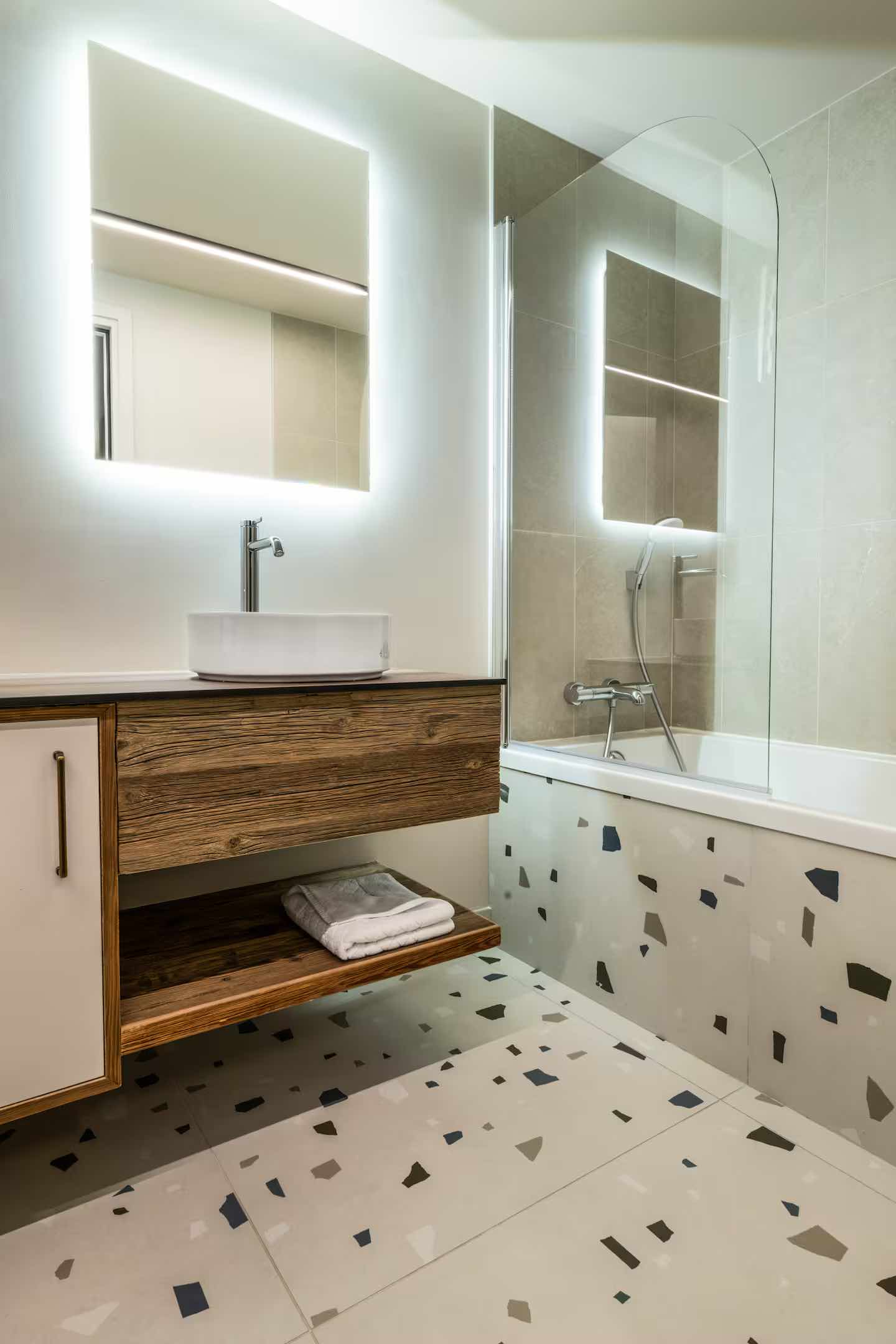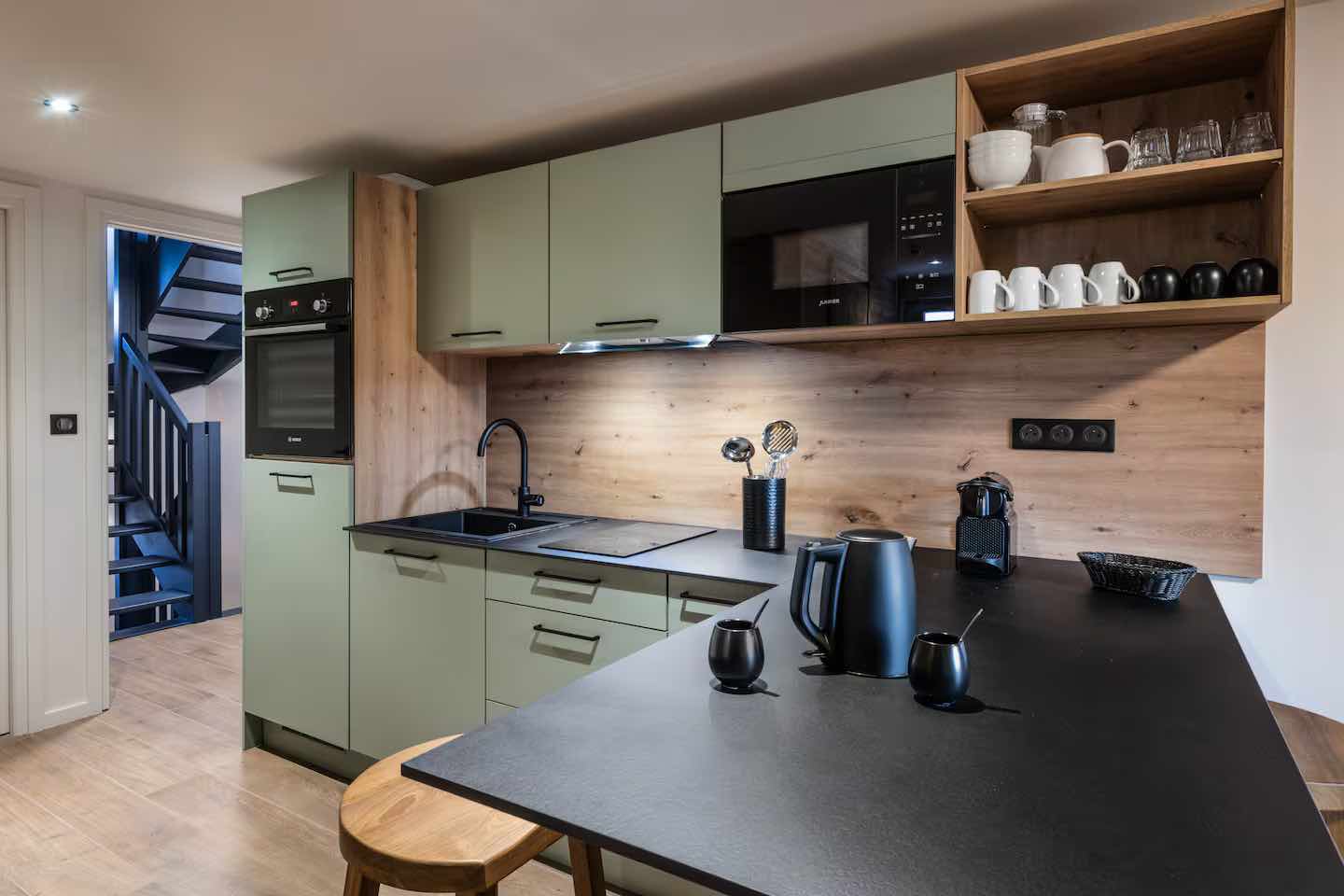 Theindependent apartment has its own entrance and can be fully connected to the rest of the Chalet via a connecting door. It comprises a bedroom, living room with sofa bed, shower room and separate toilet.