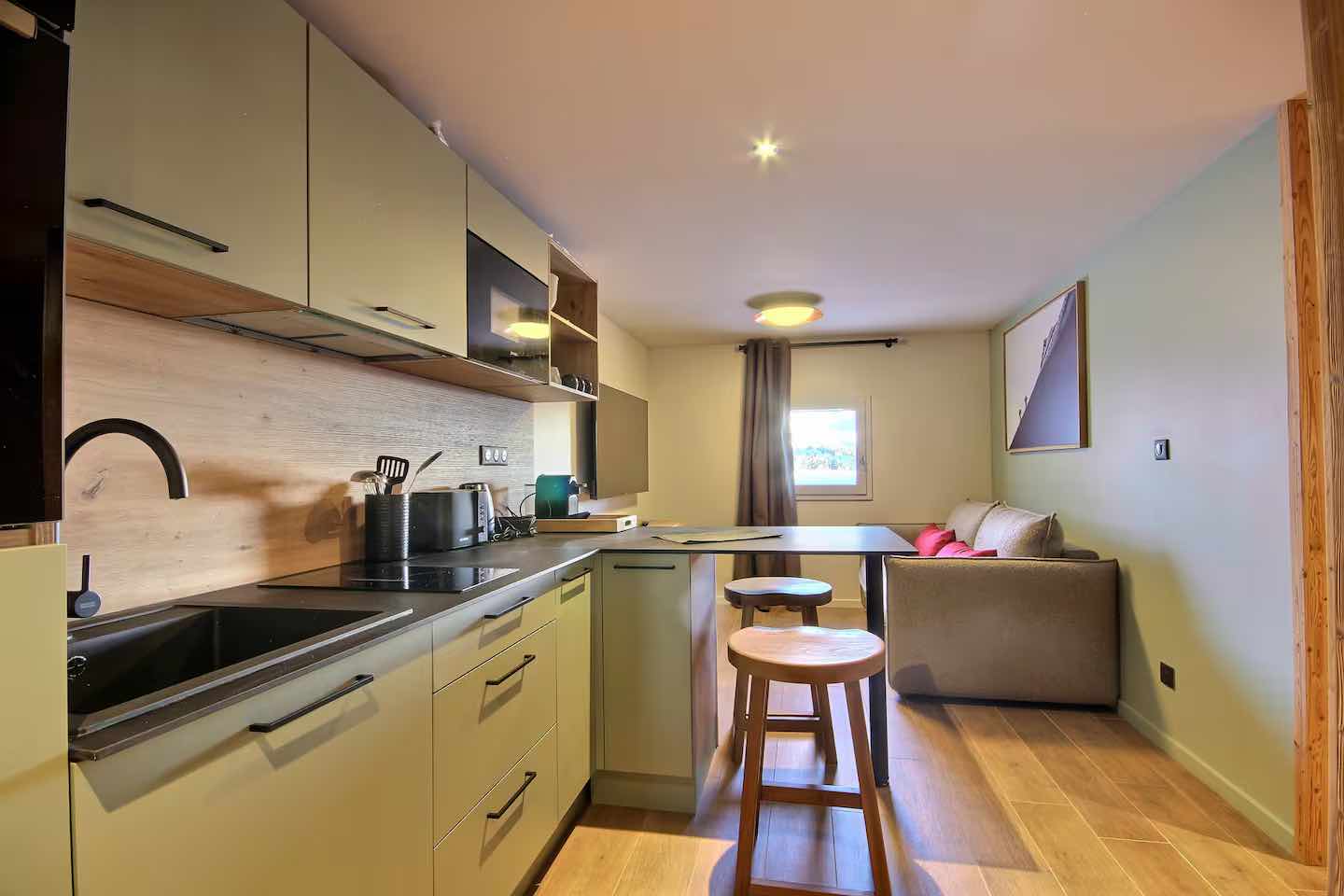 Thanks to its direct proximity to the pedestrian center of Plagne Soleil, its shops, restaurants and ESF antenna, you’ll have everything you need for a stay on the slopes and close to all amenities.