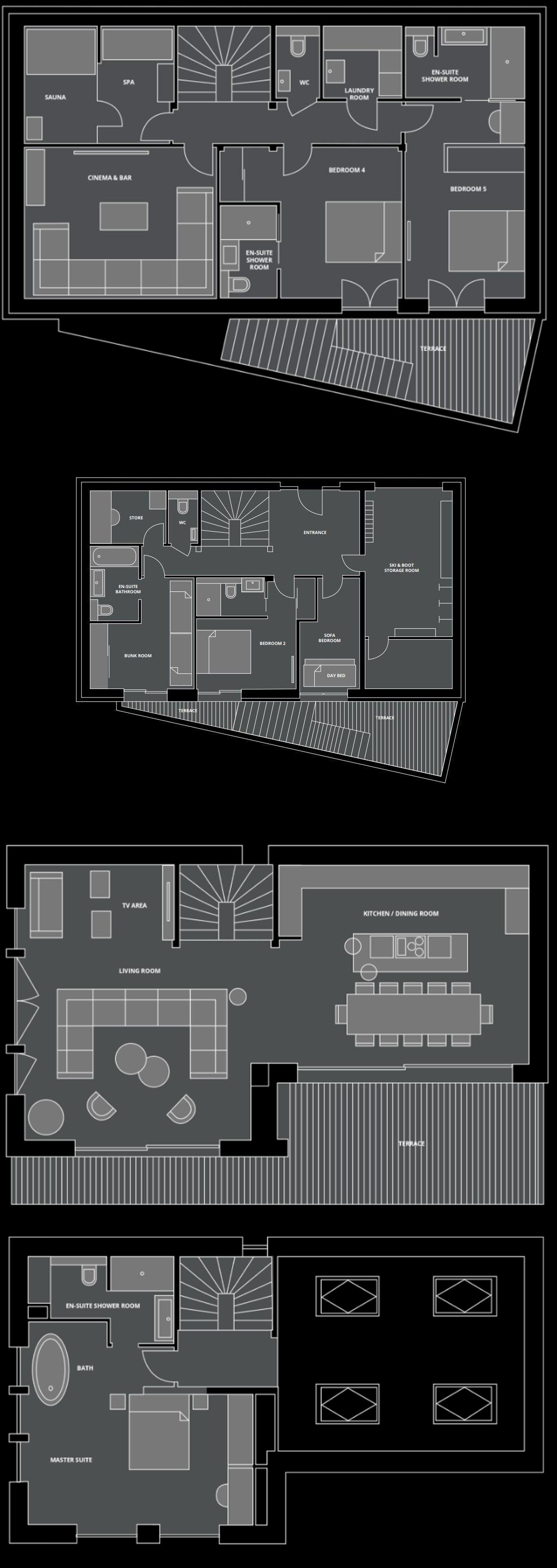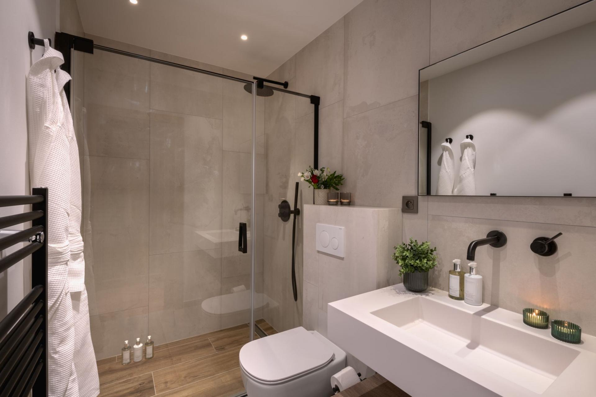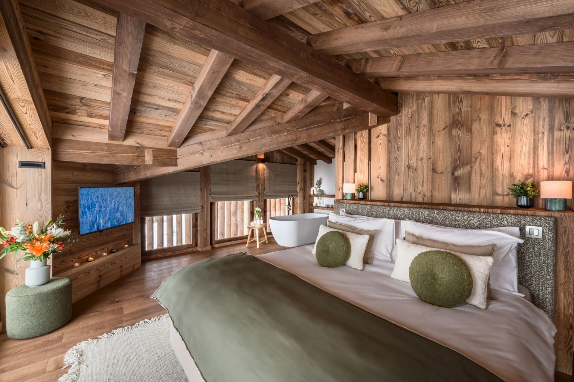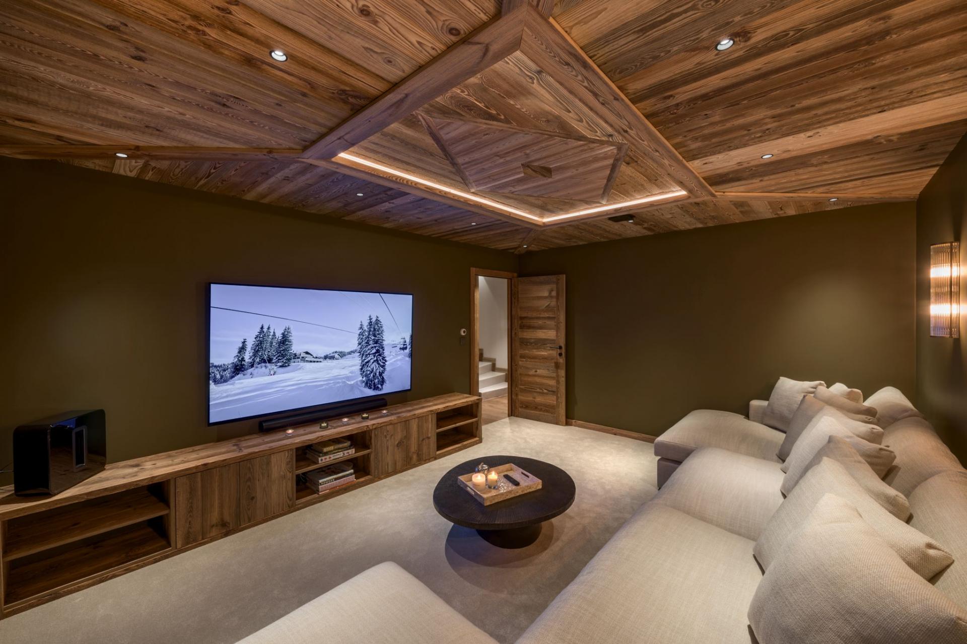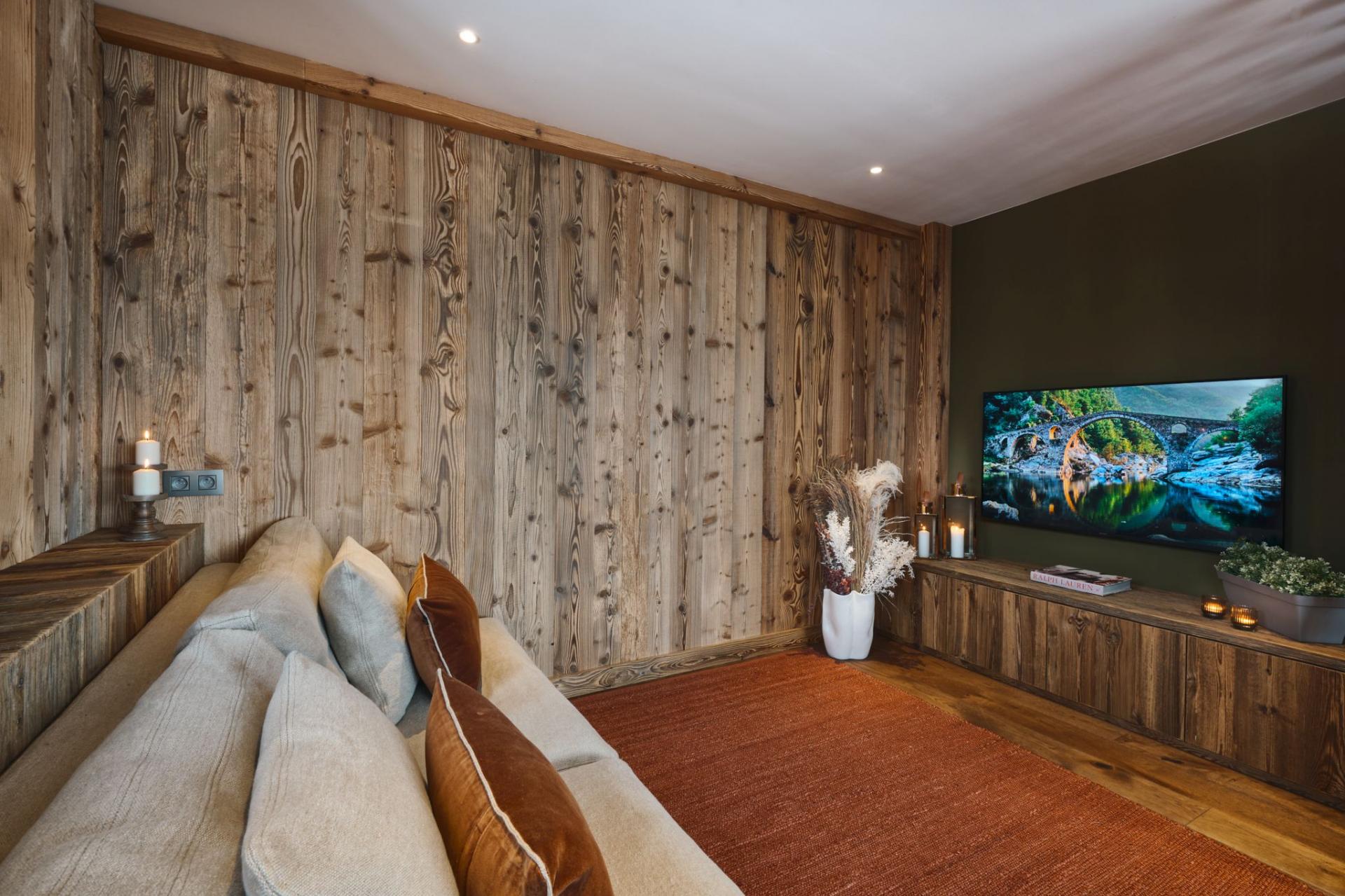 Step outside to enjoy the large private garden, complete with a relaxing outdoor hot tub, pétanque court, firepit, barbecue and sundowner seating, ideal for both summer evenings and winter après-ski. There’s even plenty of room to unwind with a cinema room and a wellness area with shower and sauna for in-chalet relaxation.