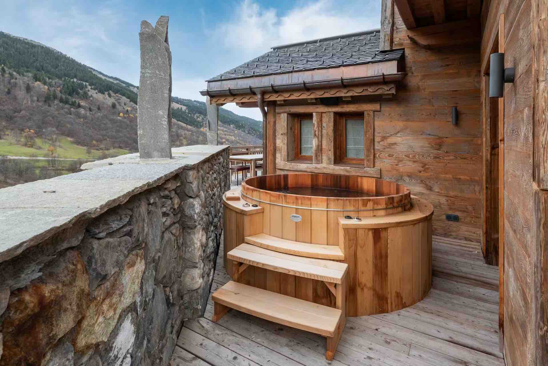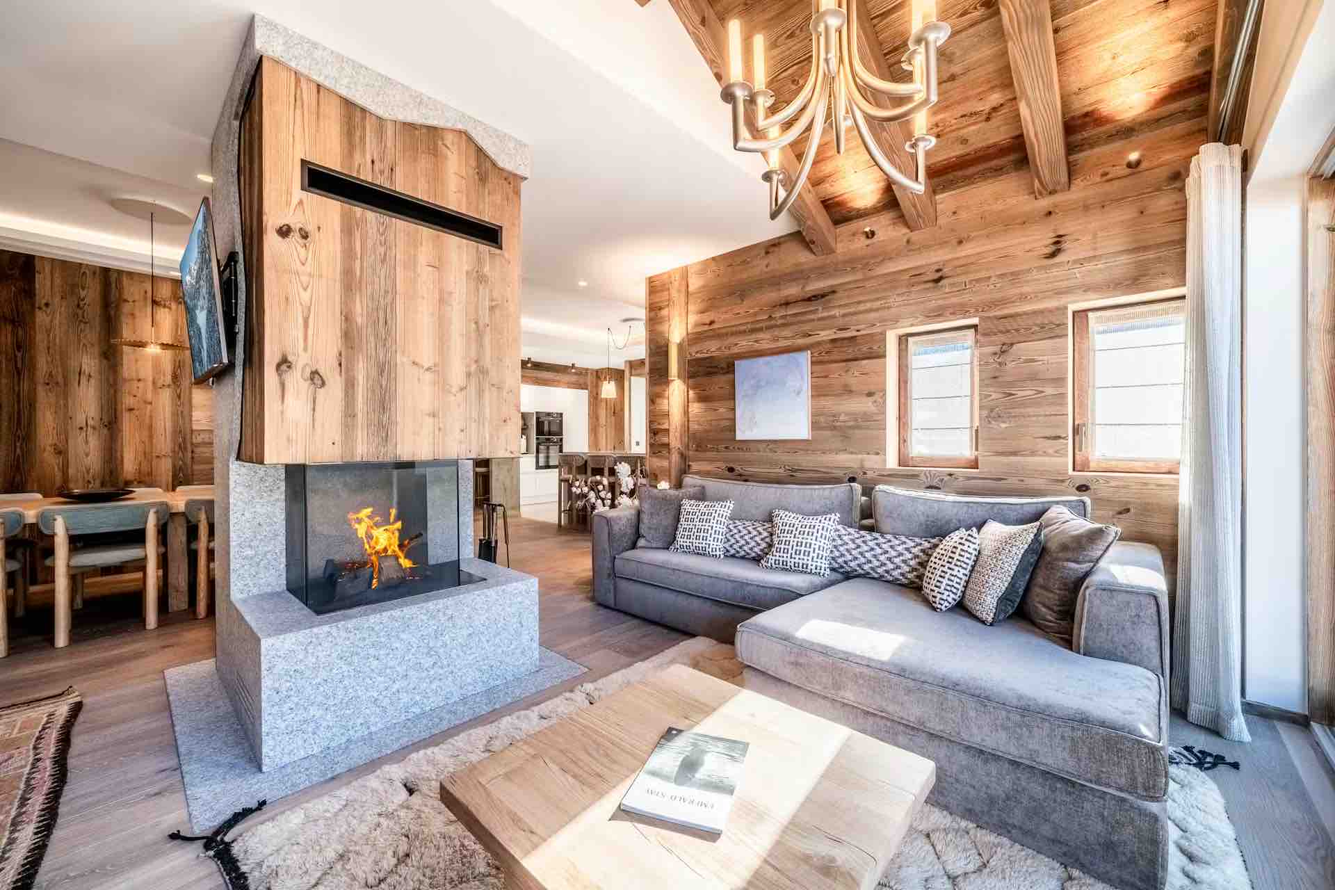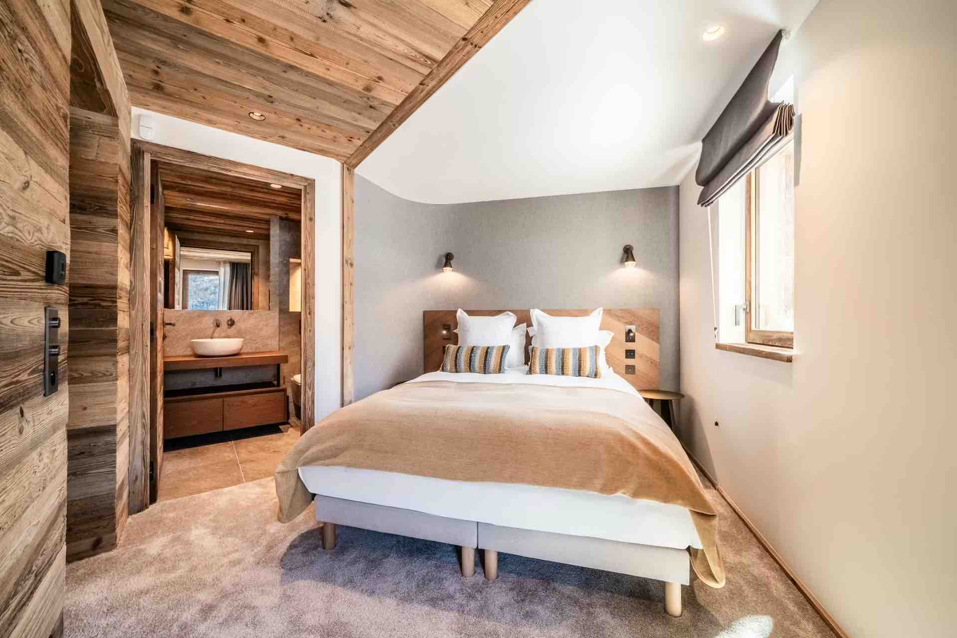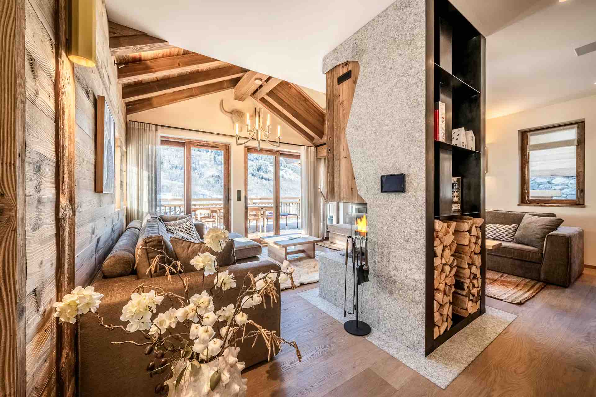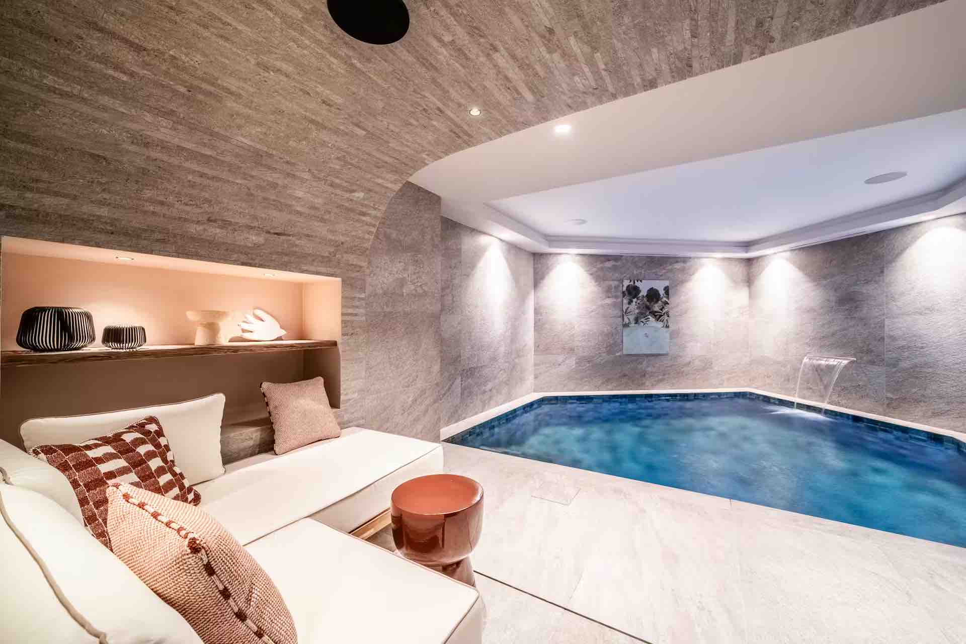 After an exhilarating day on the slopes or mountain trails, retreat to your private wellness area, featuring an indoor swimming pool and a soothing sauna. In the evenings, gather around the log fire in the sophisticated living room, enhanced by state-of-the-art home automation that lets you tailor the lighting, temperature, and ambience. The fully equipped kitchen invites you to create unforgettable meals, while the wine cellar ensures every moment is accompanied by the perfect vintage. With sweeping mountain views in every direction, Chalet Vallon is both serene and spectacular.