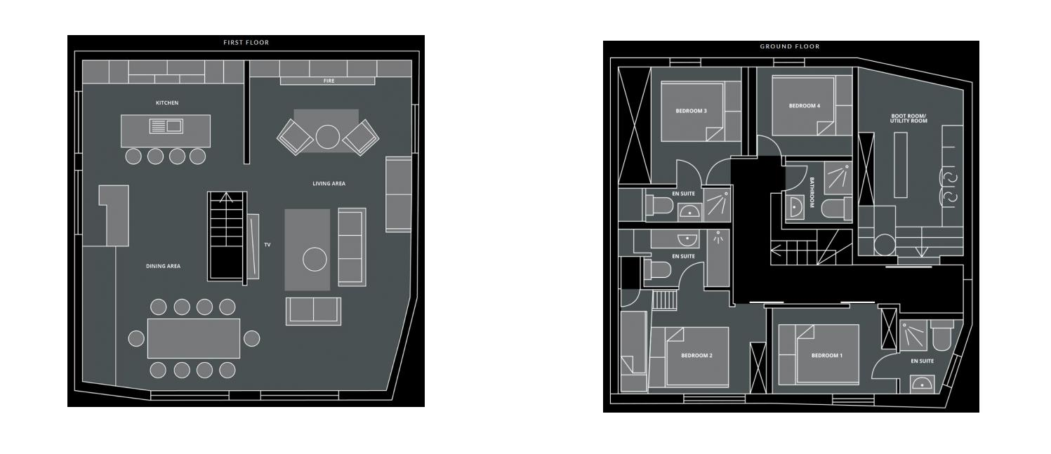 The four bedrooms, located on the ground floor, combine traditional alpine style with luxurious comfort. Three bedrooms can be arranged as doubles or twins, while the fourth double room includes the option of an additional full-size single cabin bed, making the chalet ideal for families or groups of friends.