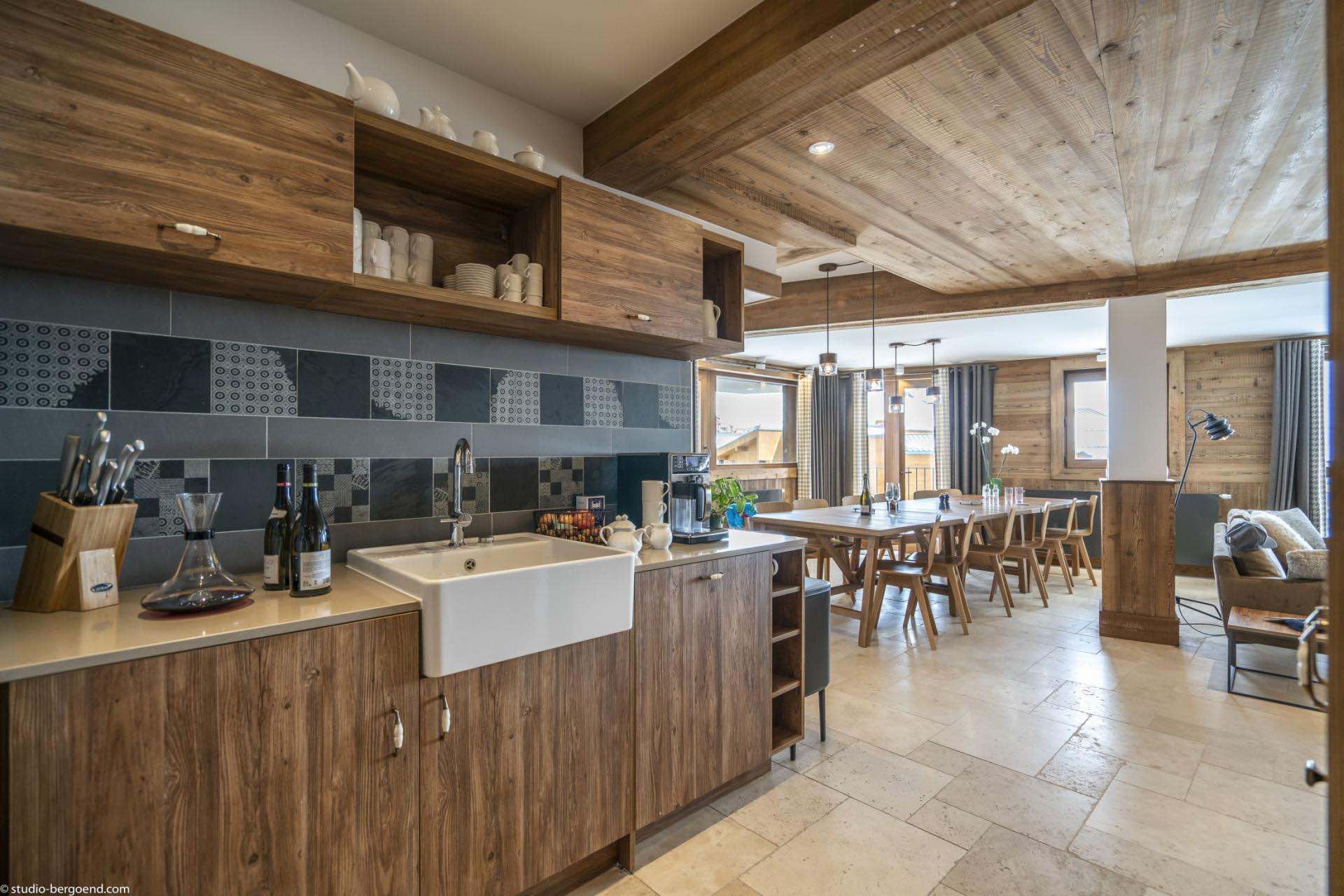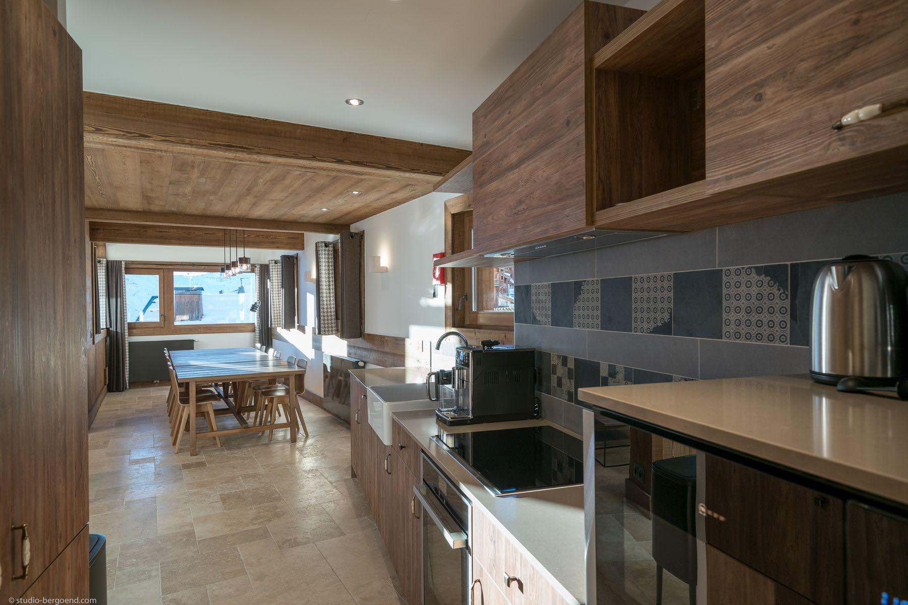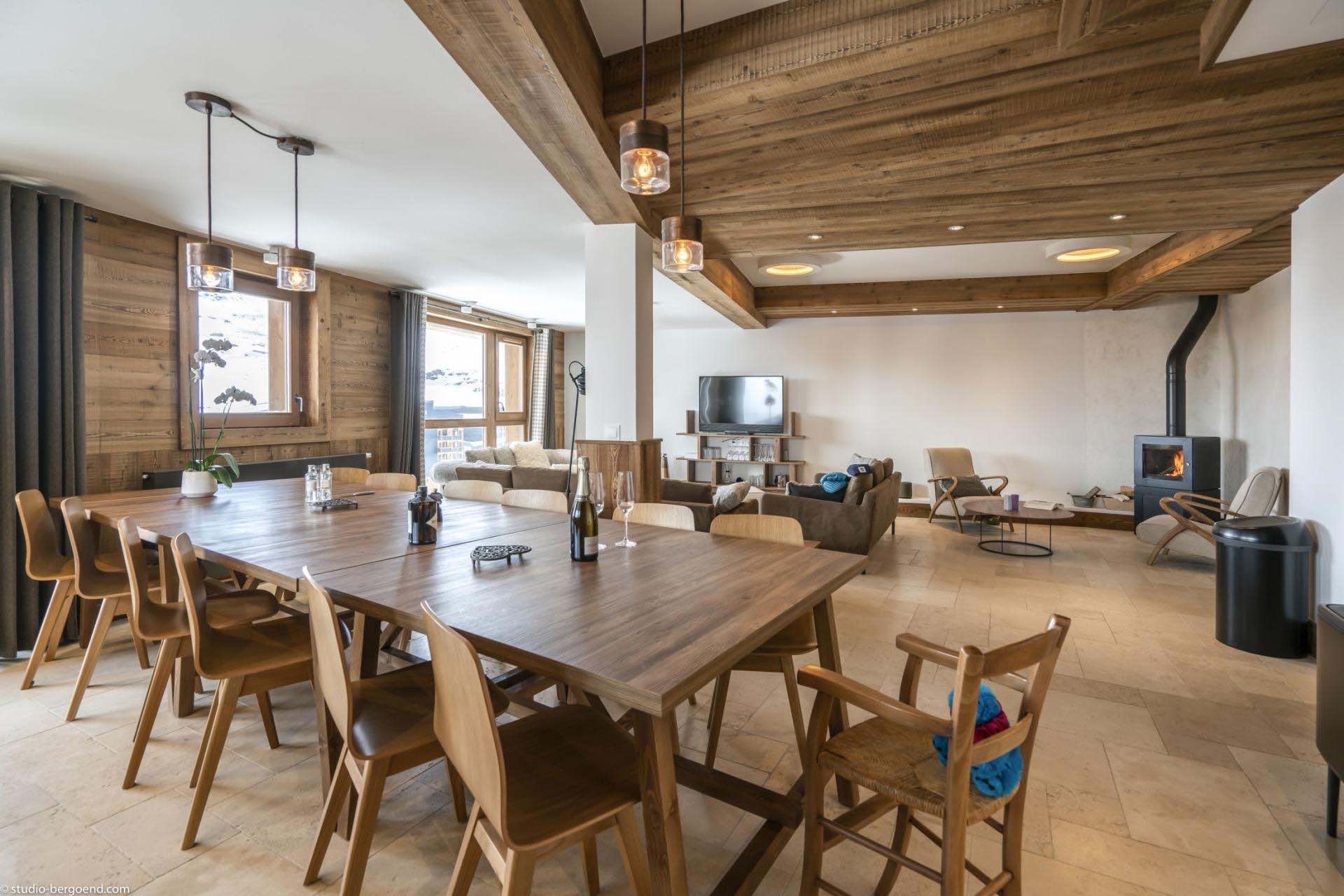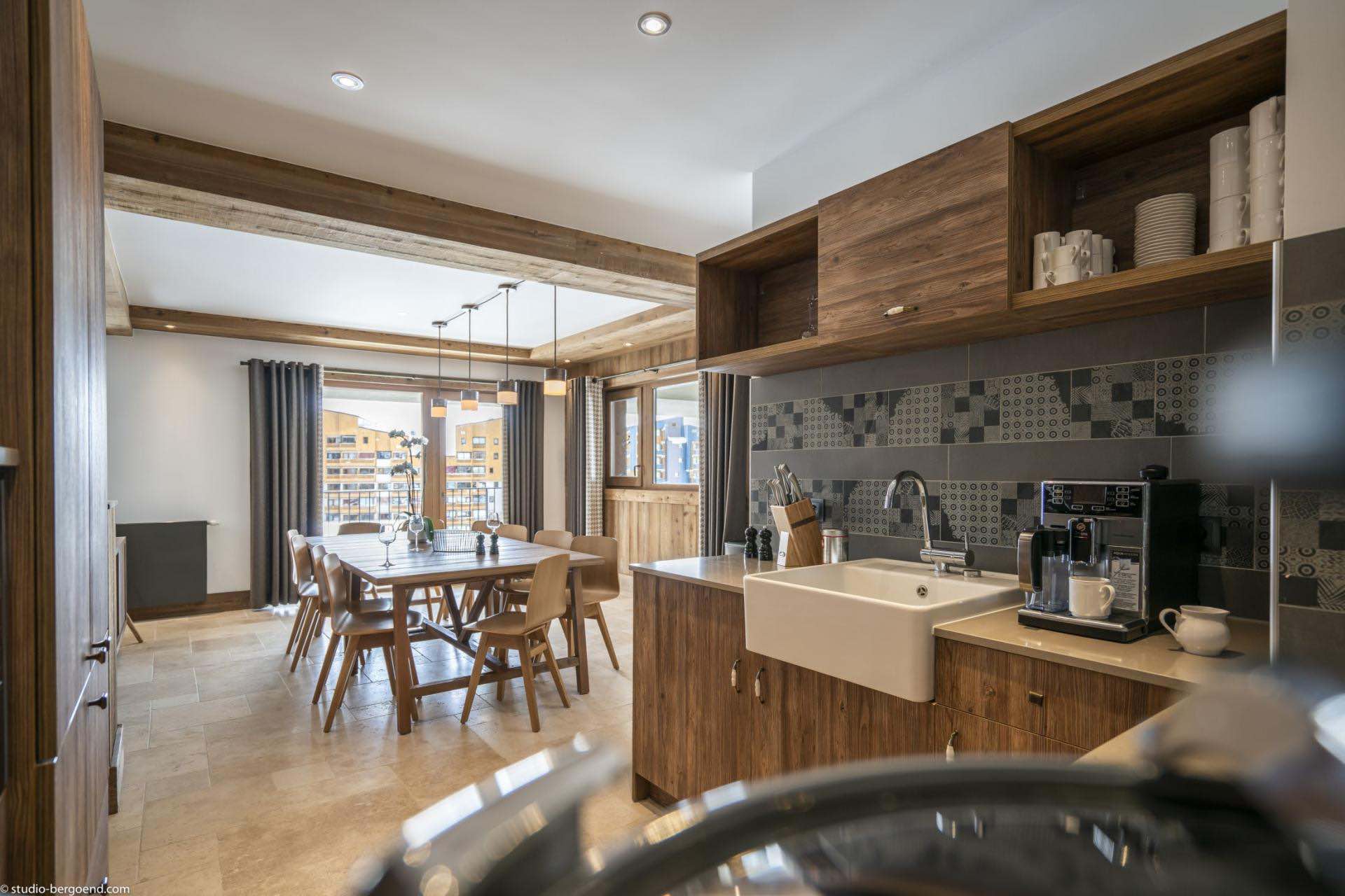 Finished to an exceptional standard, the apartments blend traditional alpine charm with contemporary design and boast breathtaking views over Val Thorens and the surrounding mountain peaks. The spacious open-plan living and dining areas create a welcoming environment for socialising, while the fully equipped kitchens include everything required for a premium self-catered stay, such as a coffee machine and dishwasher.