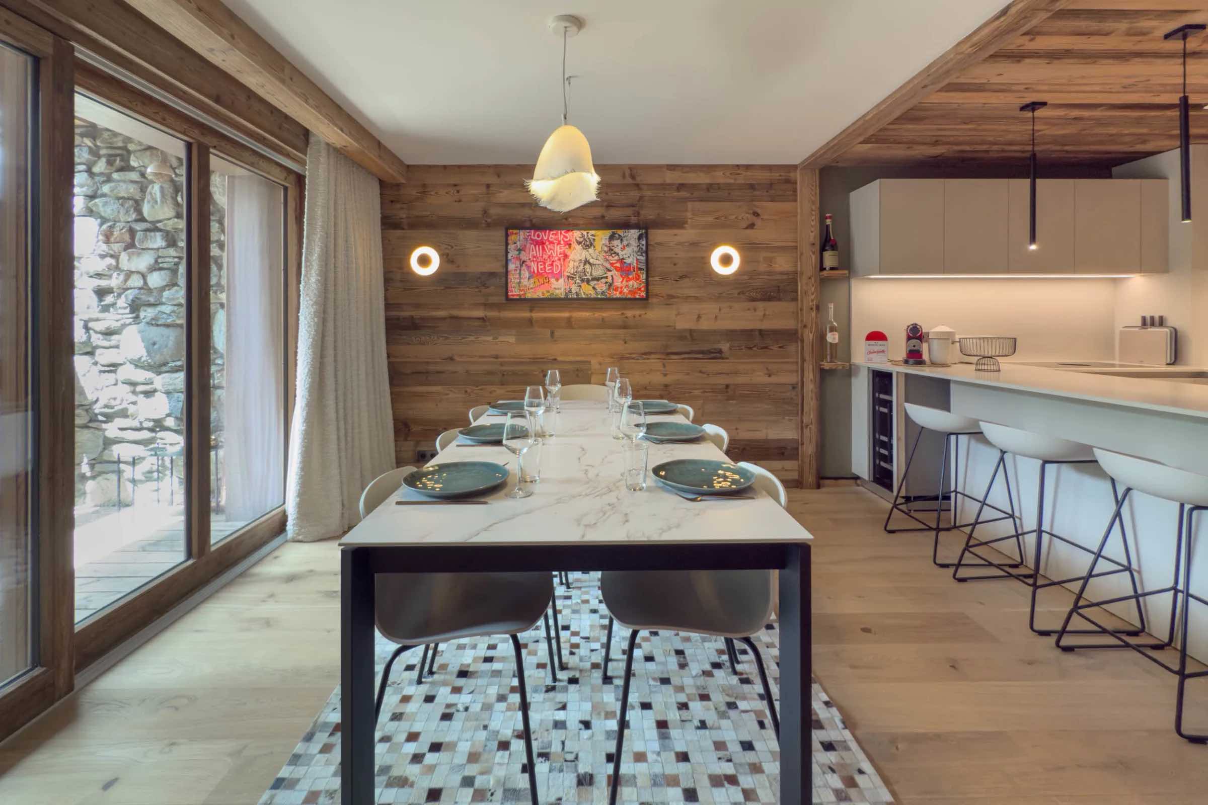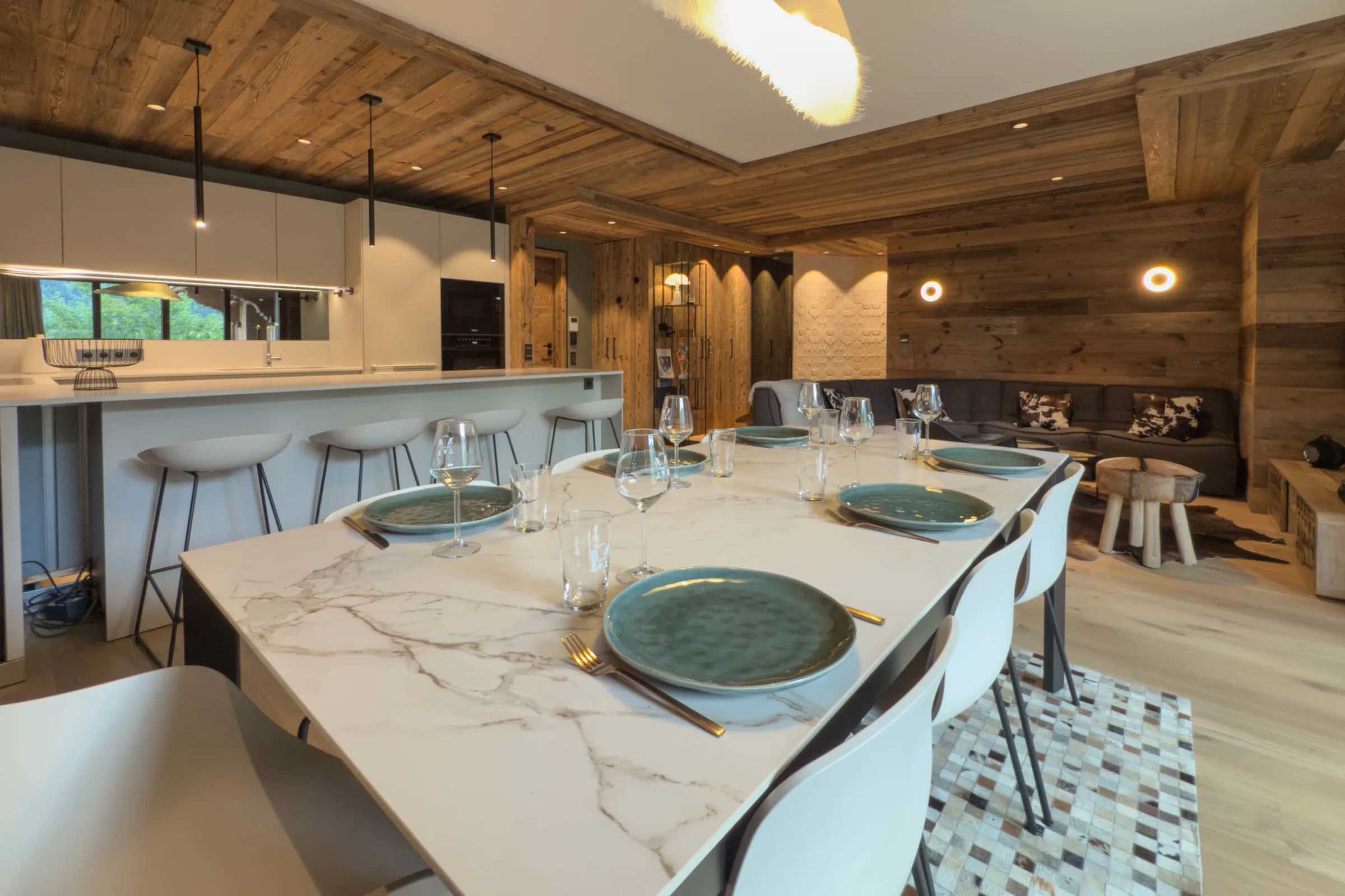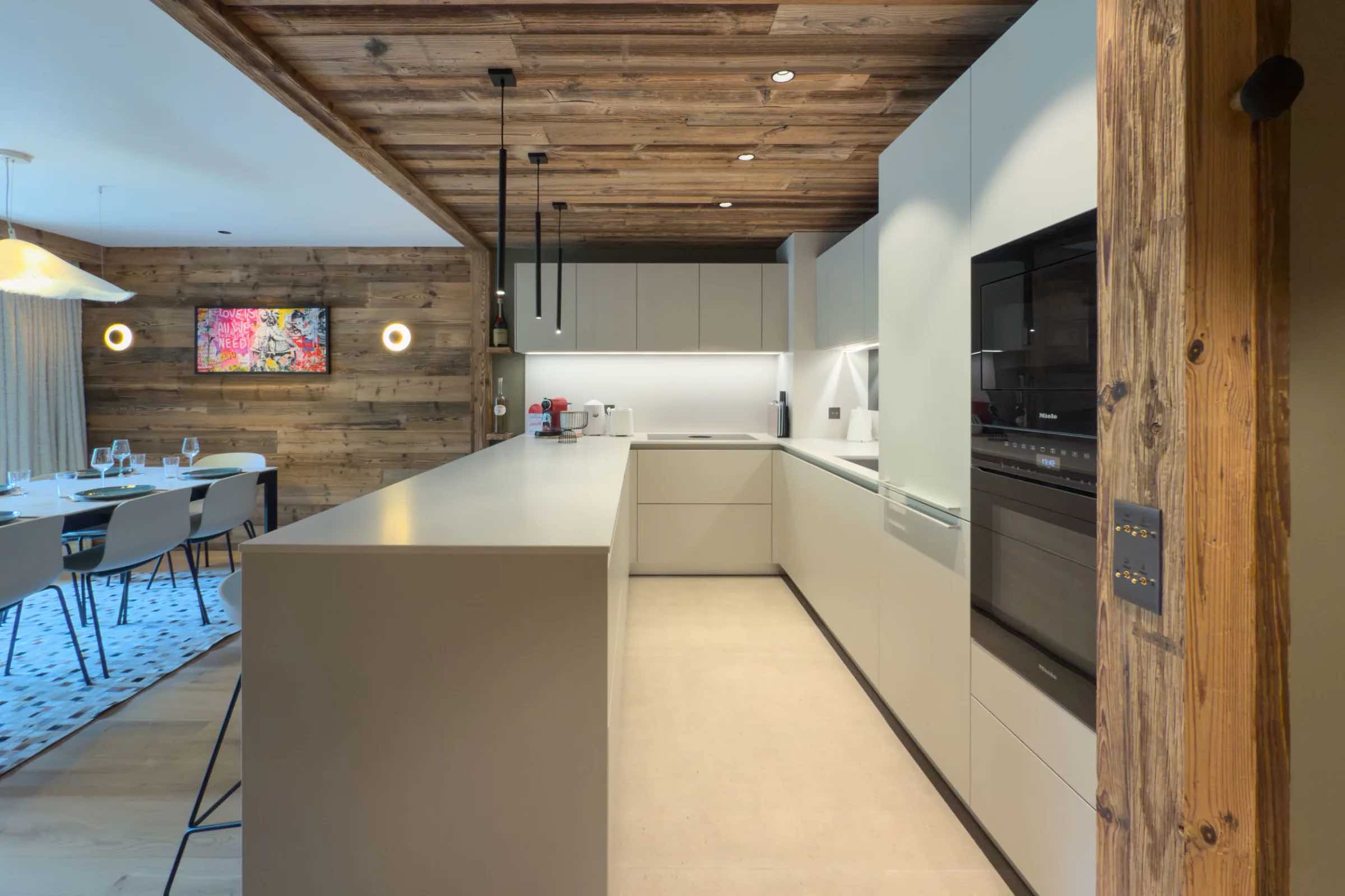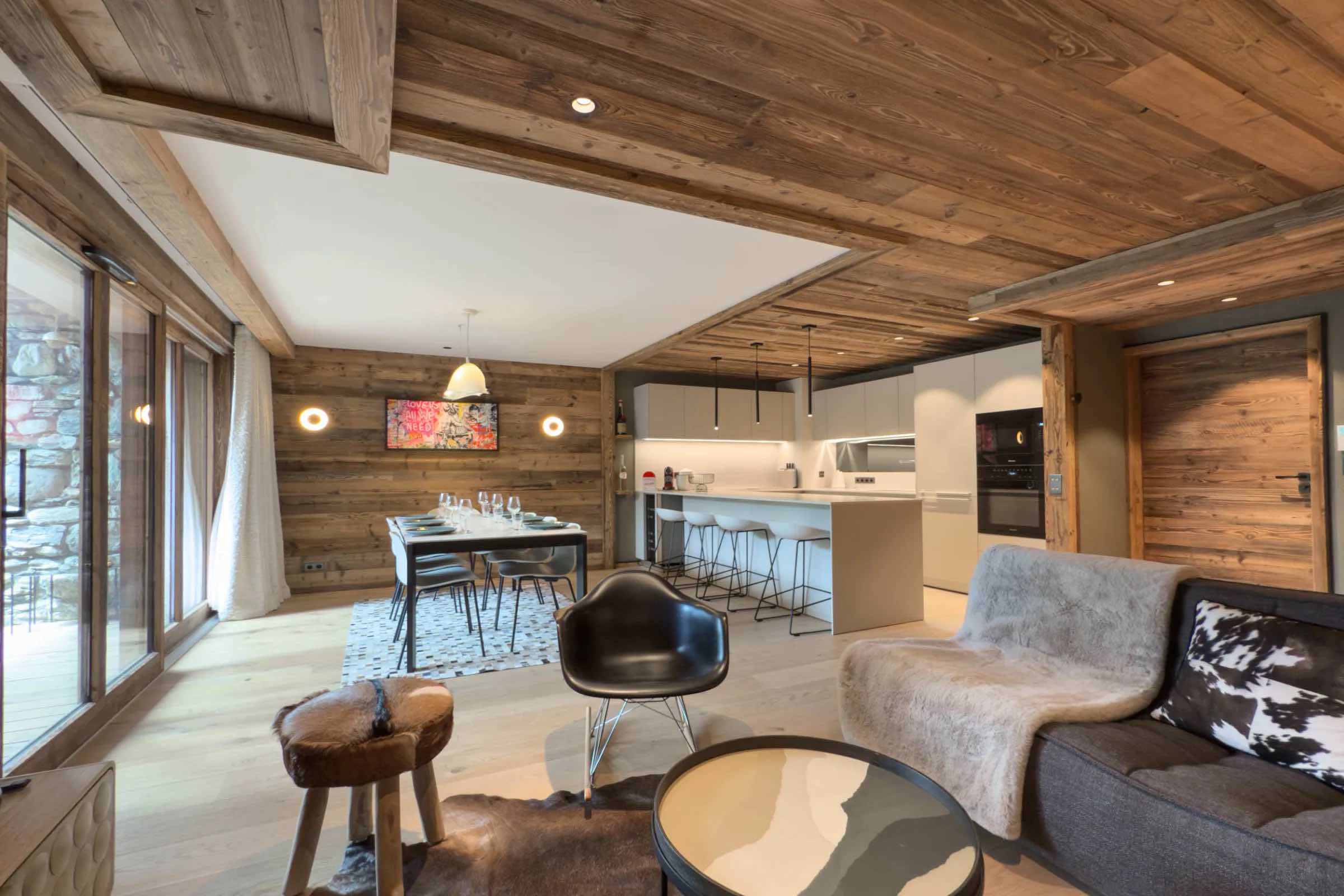 Discover this stunning new apartment located in the prestigious Fleur des Alpes residence in Méribel’s sought-after Morel district. The bright and stylish living area offers a spacious sofa, perfect for relaxing after an exhilarating day on the slopes of Les 3 Vallées. The modern, fully equipped kitchen includes a Nespresso coffee machine, kettle, toaster, citrus press, large refrigerator and freezer, oven, and microwave—providing everything you need for effortless dining and entertaining.